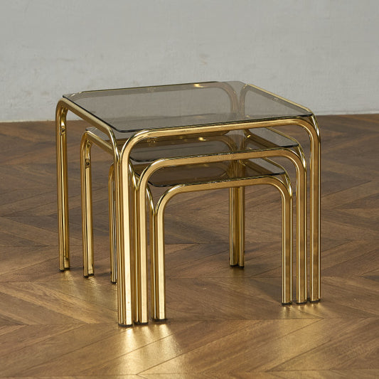 イギリス ヴィンテージ スモークガラストップ ネストテーブル #97789