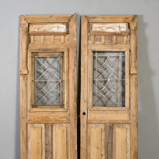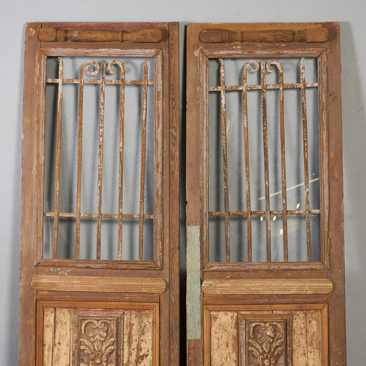 英国 アンティーク 両開き 鉄格子 ウッド ドア 2点セット #94267