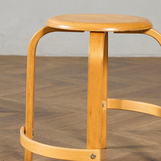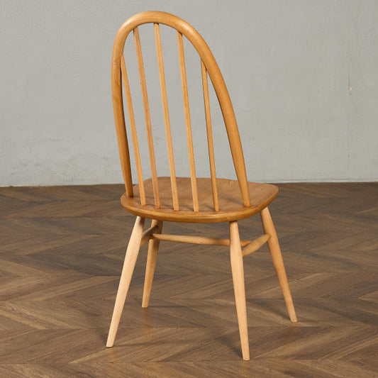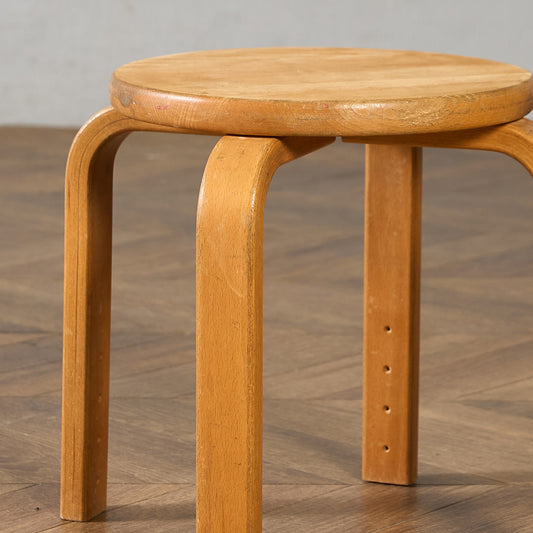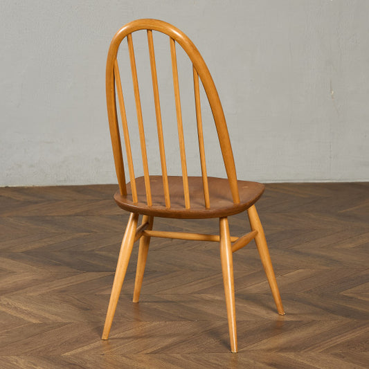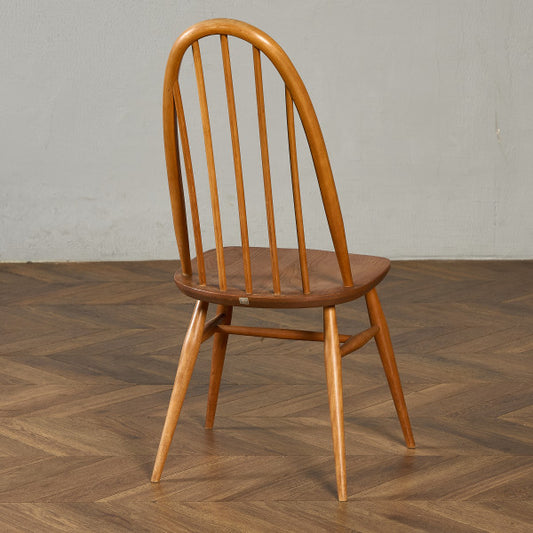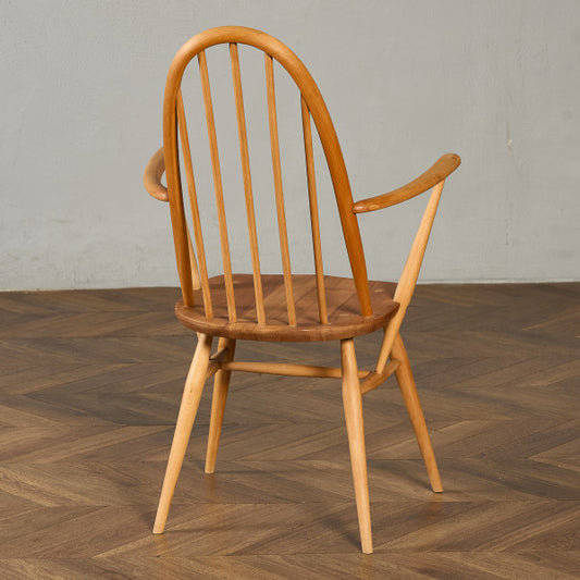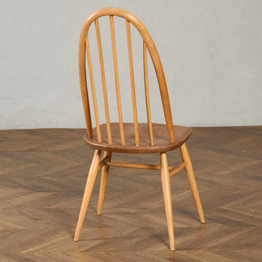 アーコール社は現存するイギリスの老舗家具メーカー。新品家具としてもアンティーク品としても同一のモデルで同様に高い支持を受け続けている稀有なブランドです。20世紀初頭にイギリスに移住してきたイタリア生まれの家具デザイナー "ルシアン・アーコラーニ"によって、1920年にハイ・ワイコムにアーコールファニチャーは設立されました。ERCOL社の成功のポイントとして当時乾燥が難しく歪みが生じるため家具材としては不適格として安価であったエルム材の乾燥方法を編み出したことがあります。ウィンザーチェアーに代表される伝統的な製法と、モダンデザインを融合させたコレクションは、さりげないデザインで軽やかでシンプル。1957年デザインのスタッキングチャイルドチェアーは、小学校などの施設で多く使用され一躍ベストセラーブランドとなりました。近年マーガレット・ハウエル(英国の服飾デザイナー)は、アーコール社スタッキングチャイルドチェアーのヴィンテージ品をロンドンショップで展示し、アーコールチェアーは大好評を得ることになりました。それをきっかけにアーコール社は2002年から同商品の復刻版の製造を開始するまでになります。 その後マーガレット・ハウエルのショップでもこの復刻版は販売されることとなり、たちまち人気が高まりました。イエロー×ゴールドの通称ゴールドラベルがついた1960年代〜70年代頃アーコール全盛期の品物は以前よりプレミアム的に価値で取引されておりましたが、近年ではそれ以前のヴィンテージ品ブルーラベルのお品物も含めてイギリス現地で一昔前の倍近くの取引相場にまで高騰しています。