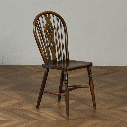 背の中央のスプラットと呼ばれる板にホイール(車輪)の透し彫を飾ったウィンザーチェアです。