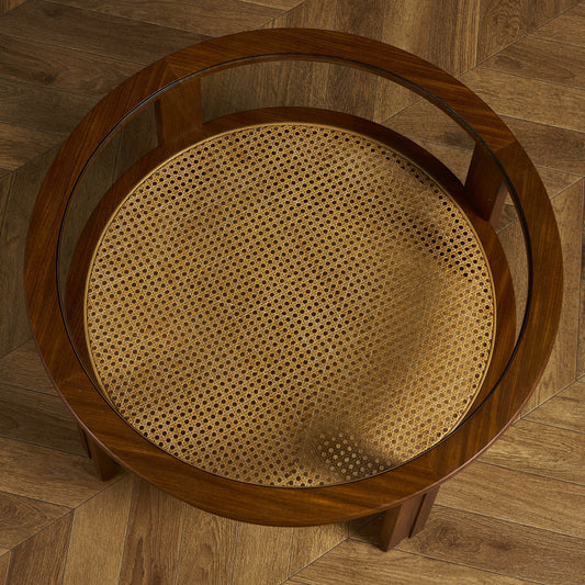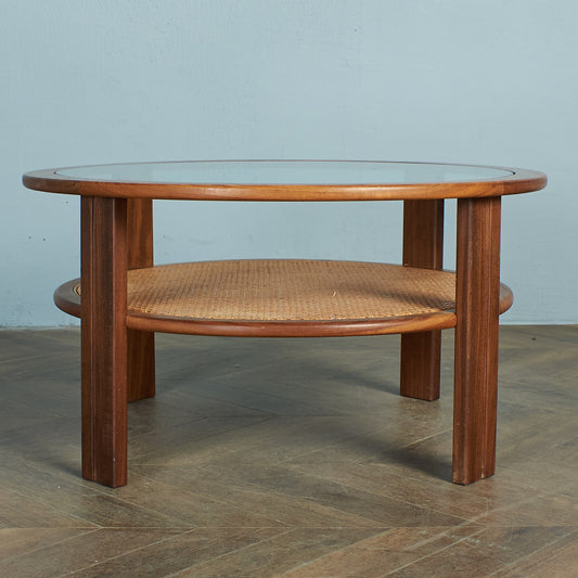 英国 クラシック ガラストップ ラタン コーヒーテーブル #96573