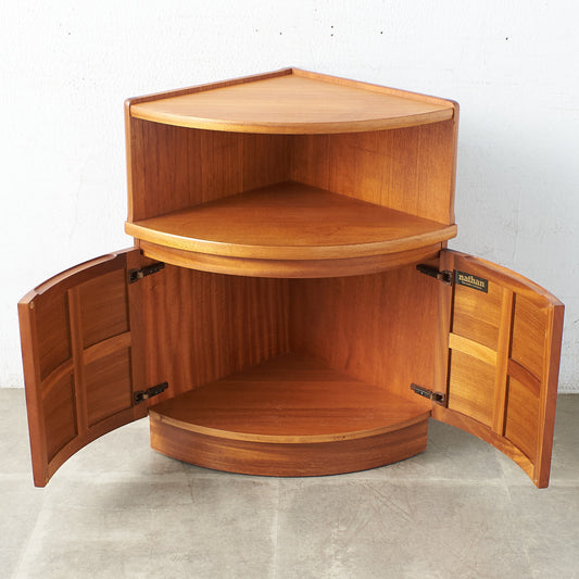 ネイサン社の創業は1916年、イギリス・ロンドンでロシア出身のバーネット・ネイサンが手作りの家具を製造したことに遡ります。1954年ニュー ヨークで開かれた家具展覧会においてイギリスを代表するデザインとして選ばれて一躍有名になり、チーク材の家具を本格的に生産。G-planシリーズで有名なエベネゼル・グーム社と並び、イギリスミッドセンチュリーを代表する家具メーカーへと発展しました。とくに「クラシックレンジ」シリーズは、時代を超越したデザインで優れた快適性と職人技が見事に融合。クラシックと北欧スタイルの折衷的な独自のデザインスタイルを生み出し、ジャコビアンドアスタイリングと美しいチーク材の組み合わせの自然な輝きがロンドンの都市生活者を虜にしました。
