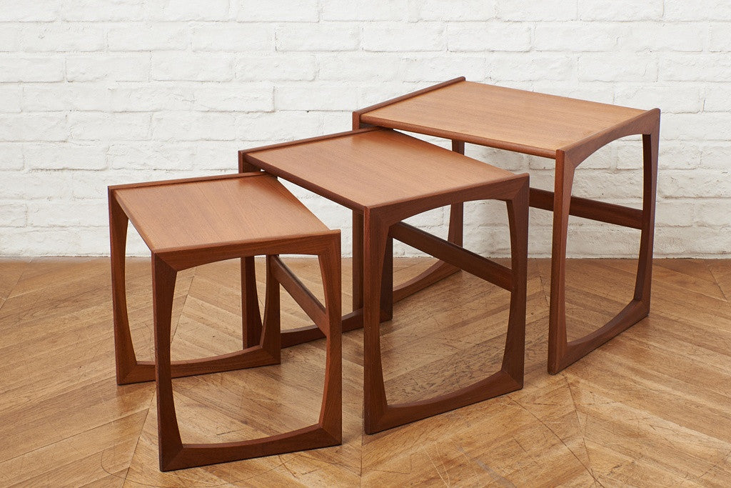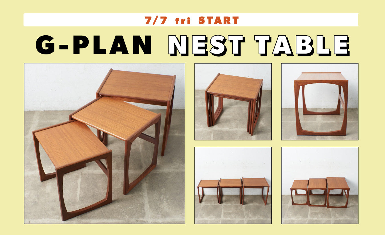G-PLAN Quadrille ネストテーブル7月7日(金)販売開始 G-PLAN Quadrilleシリーズのネストテーブルが7月7日(金)より9台同時に販売開始します。Quadrilleシリーズの特徴的な脚の型状が3連になることで一層強調される、シンプルながらも印象深いデザイン。9台同時にご覧いただけることはなかなかありません。お気に入りの1台をお選びください!
