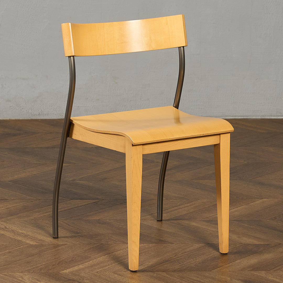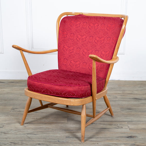 アーコール社は現存するイギリスの老舗家具メーカー。新品家具としてもアンティーク品としても同一のモデルで同様に高い支持を受け続けている稀有なブランドです。20世紀初頭にイギリスに移住してきたイタリア生まれの家具デザイナー "ルシアン・アーコラーニ"によって、1920年にハイ・ワイコムにアーコールファニチャーは設立されました。ERCOL社の成功のポイントとして当時乾燥が難しく歪みが生じるため家具材としては不適格として安価であったエルム材の乾燥方法を編み出したことがあります。ウィンザーチェアーに代表される伝統的な製法と、モダンデザインを融合させたコレクションは、さりげないデザインで軽やかでシンプル。1957年デザインのスタッキングチャイルドチェアーは、小学校などの施設で多く使用され一躍ベストセラーブランドとなりました。近年マーガレット・ハウエル(英国の服飾デザイナー)は、アーコール社スタッキングチャイルドチェアーのヴィンテージ品をロンドンショップで展示し、アーコールチェアーは大好評を得ることになりました。それをきっかけにアーコール社は2002年から同商品の復刻版の製造を開始するまでになります。 その後マーガレット・ハウエルのショップでもこの復刻版は販売されることとなり、たちまち人気が高まりました。イエロー×ゴールドの通称ゴールドラベルがついた1960年代〜70年代頃アーコール全盛期の品物は以前よりプレミアム的に価値で取引されておりましたが、近年ではそれ以前のヴィンテージ品ブルーラベルのお品物も含めてイギリス現地で一昔前の倍近くの取引相場にまで高騰しています。