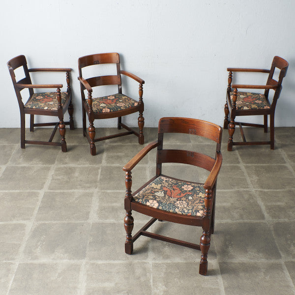 1872年設立のイギリスの家具メーカー。製品の中にはラベルに王室御用達の表示がされるものもあり、その高い品質を裏付けています。良質なオーク材を用いた製品は、希少価値の高いアンティーク家具として現代に受け継がれています。