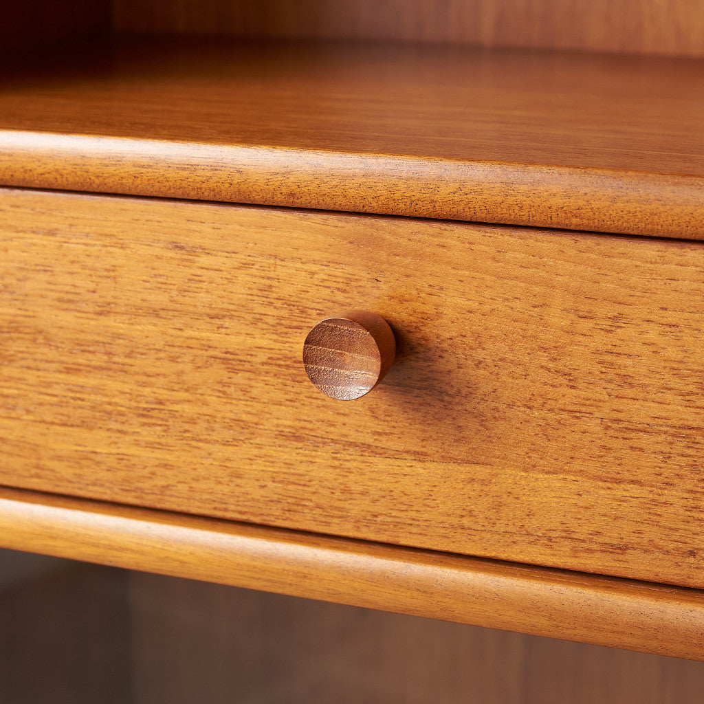 The warm texture of the vintage teak wood is accented by the carved handles, creating a sophisticated British look. The fact that it is less widely available than G-PLAN or McIntosh also appeals to collectors.