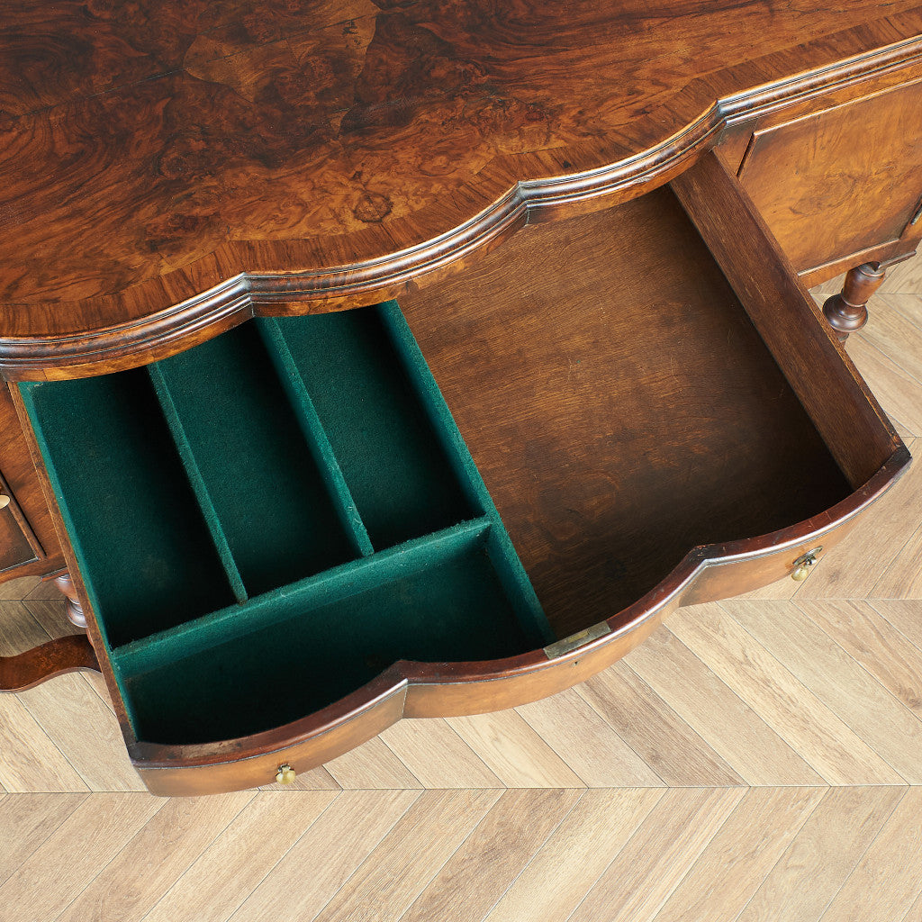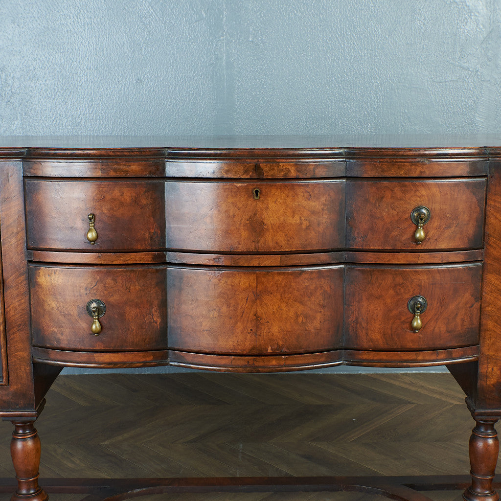 This high-quality sideboard is made of walnut wood with beautiful shades of wood, faithfully recreating the traditional British style. It is a harmonious blend of fine craftsmanship and intricate design.