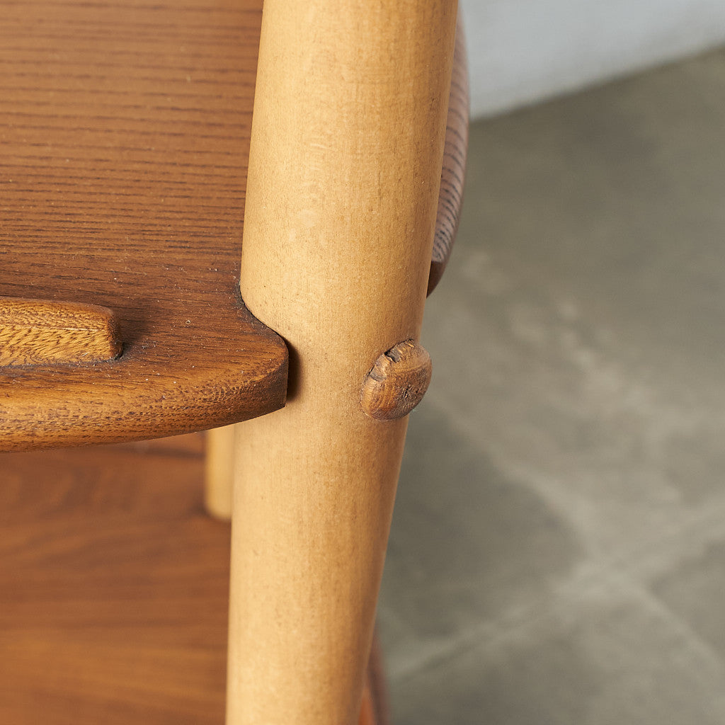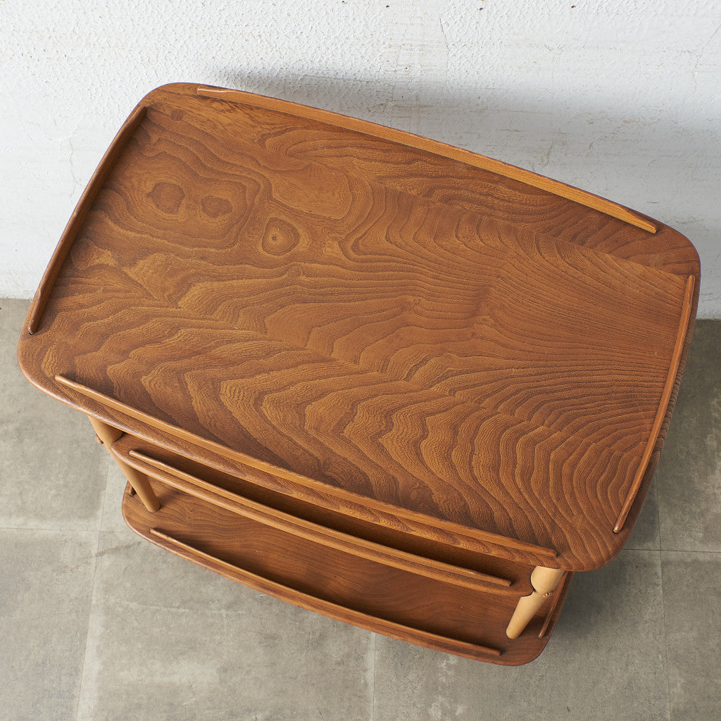 This is a traditional British tea trolley style, but it is a high-level fusion of the formality of British style and Ercol Modern. The joints between the top and the support posts are firmly joined to ensure strength. The vivid grain pattern of the natural wood and the unique casters are accents. This is a wagon that you will want to show off at tea parties and when you have guests, but it is also convenient for storing things around the kitchen and transporting food.