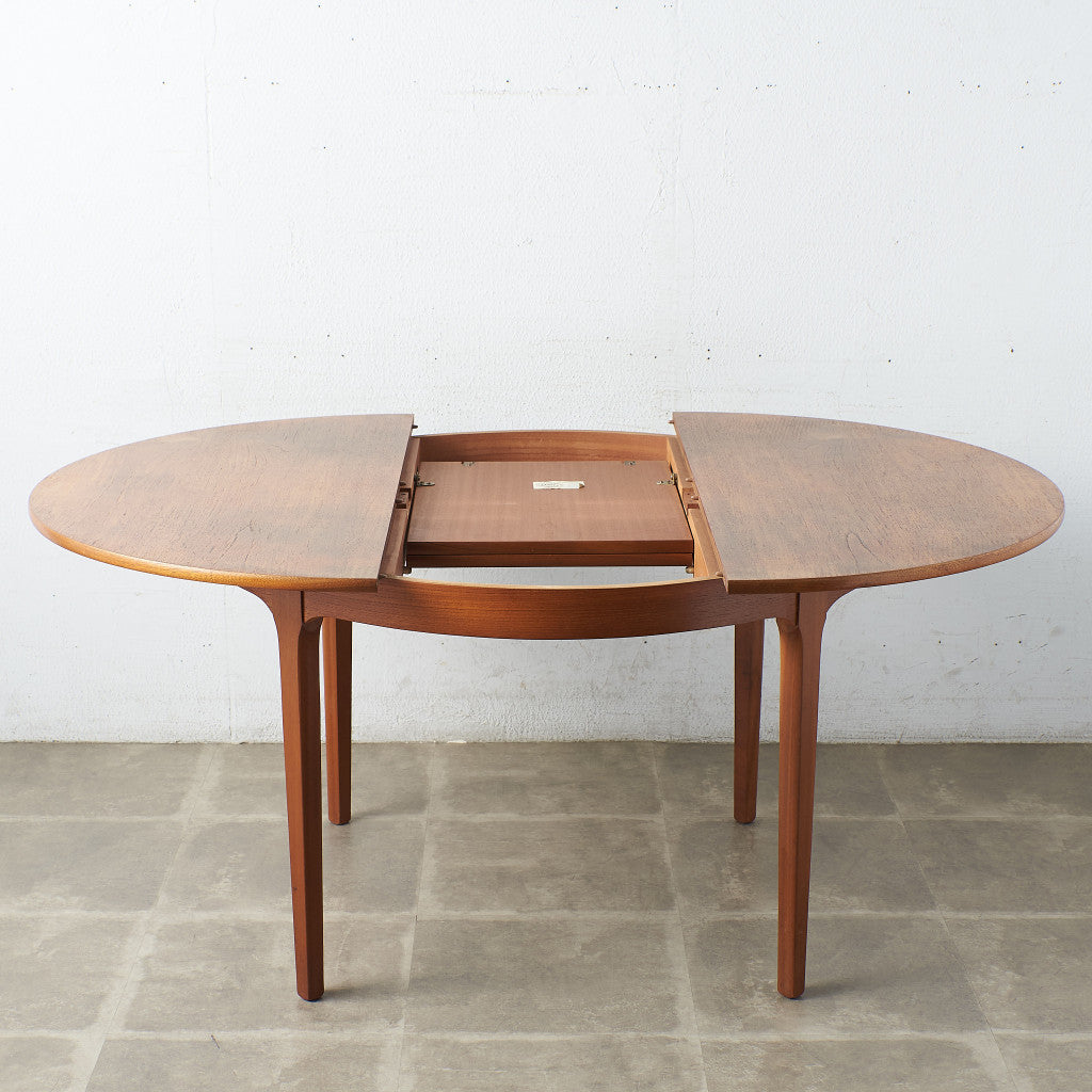 This extension table can be easily expanded without changing the size of the table top by unfolding the extension top stored under the top to the center. It can be used for 2 to 4 people on a regular basis, and when you have guests, you can quickly expand the top to use it for 6 people. Although it has a simple appearance, the attention to detail is unique to Nathan. It is a piece with a different appeal from G-PLAN and McINTOSH furniture.