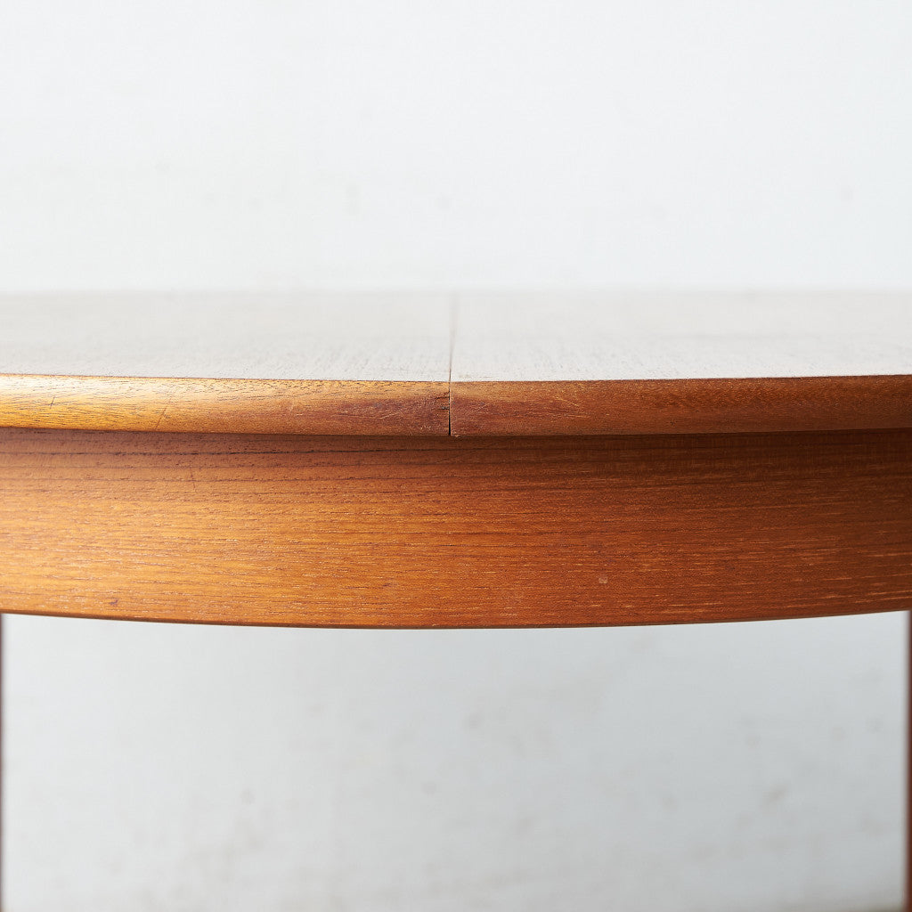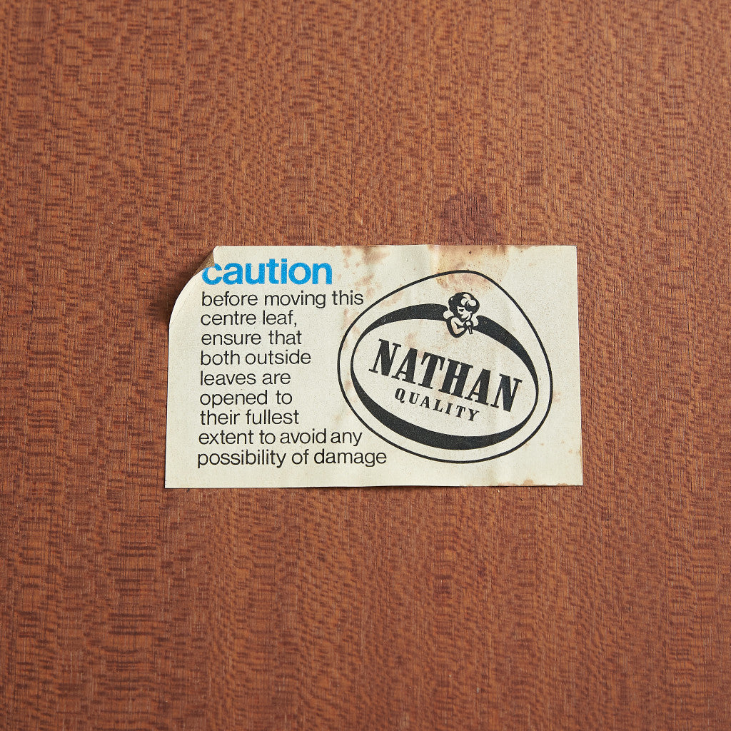 This is a vintage extending round dining table by Nathan, one of the most representative brands of British mid-century design.