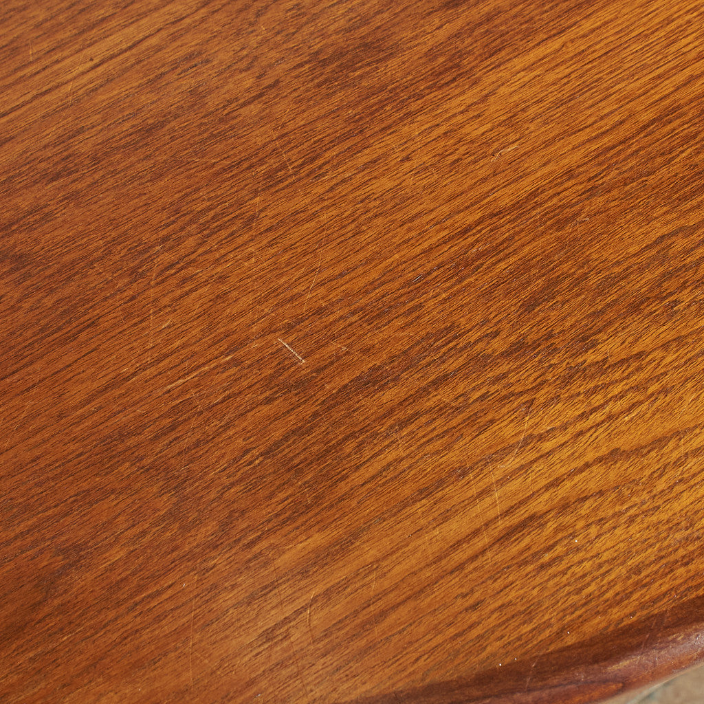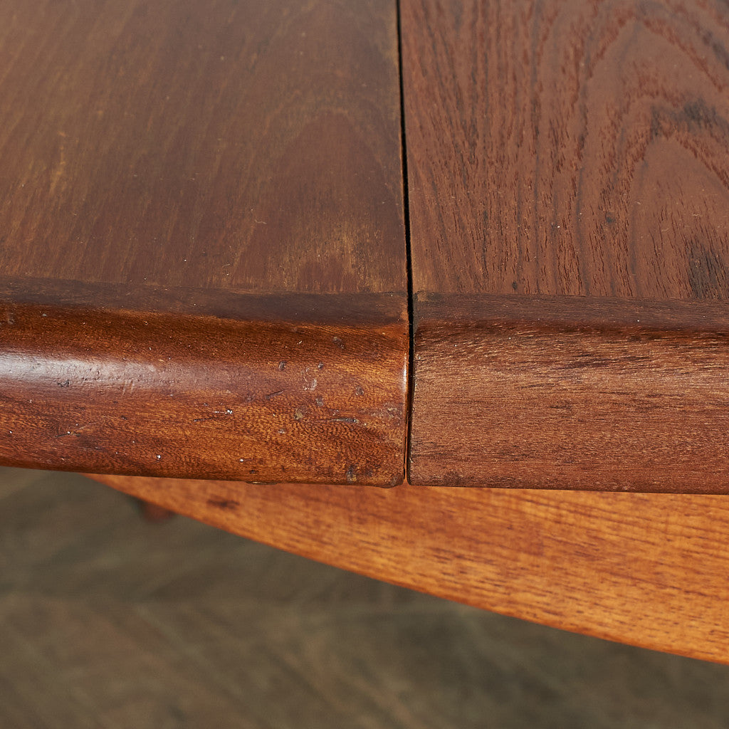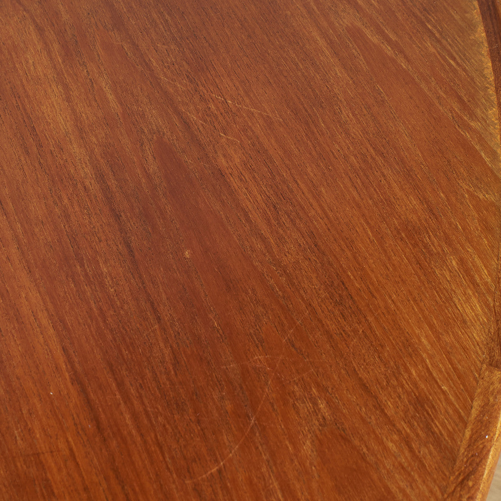 This round extension table is a standard model that can be said to be the centerpiece of the mid-century G-PLAN collection. It is a basic and highly versatile table that can be combined with other series made of teak wood such as Fresco, Sierra, and Danish in the G-PLAN catalog. It has a two-tone design with a teak top and dark wood legs and edges. This extension table can be easily expanded without changing the size of the table top by expanding the extension top stored under the top to the center. It can be used for 2 to 4 people on a regular basis, and can be used for 6 people by quickly expanding the top when you have guests.