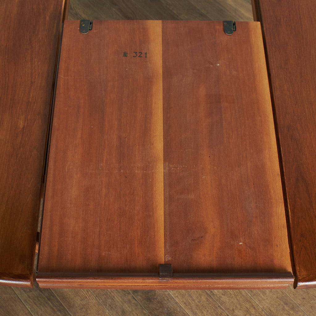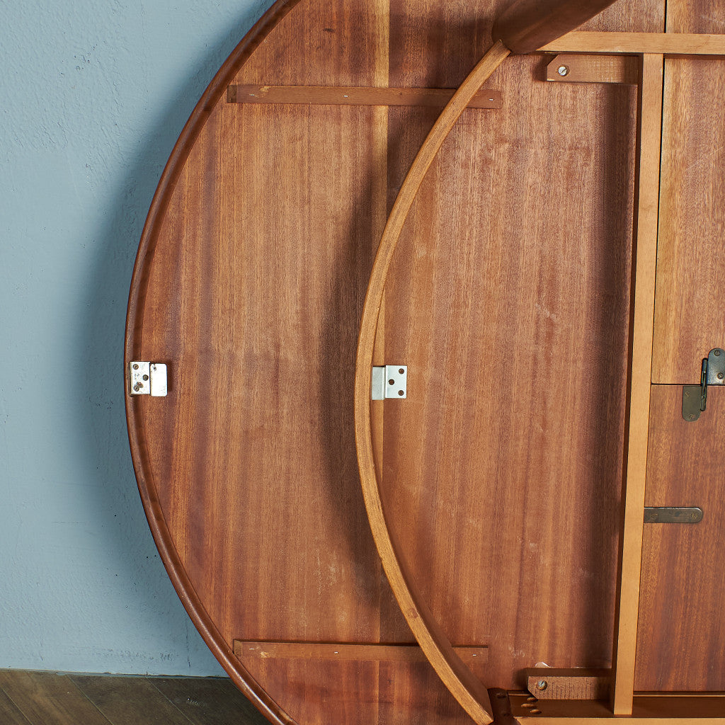 This is the Fresco extending round dining table designed by Victor Bramwell Wilkins for G-PLAN, a representative British mid-century brand.