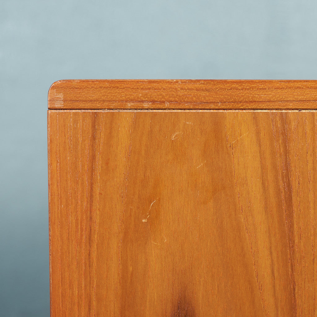 This is a custom iron-leg three-drawer chest from the Fresco series designed by Victor Bramwell Wilkins for G-PLAN, a leading British mid-century brand.