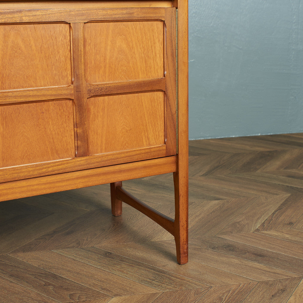 This is a vintage sideboard by Nathan, one of the most representative furniture brands of the British mid-century.