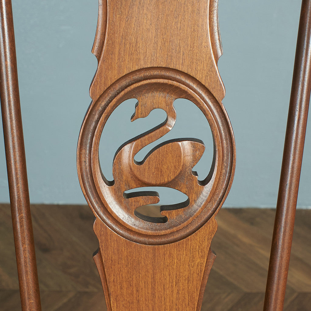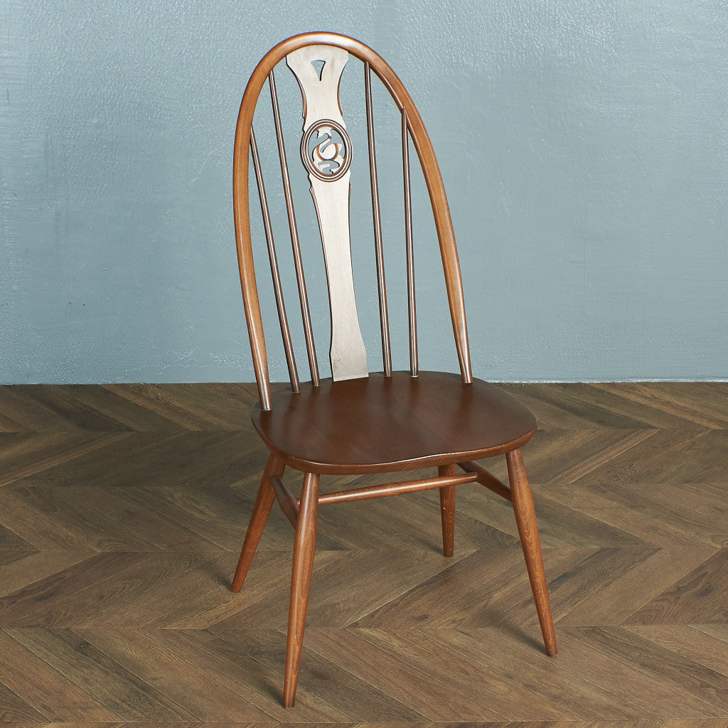Based on the Ercol Quaker Chair, the Swan Back Chair features the wheel back of a Windsor chair with a swan carved into it. It is a popular item that adds elegance to the simple Ercol chairs.