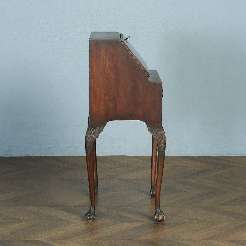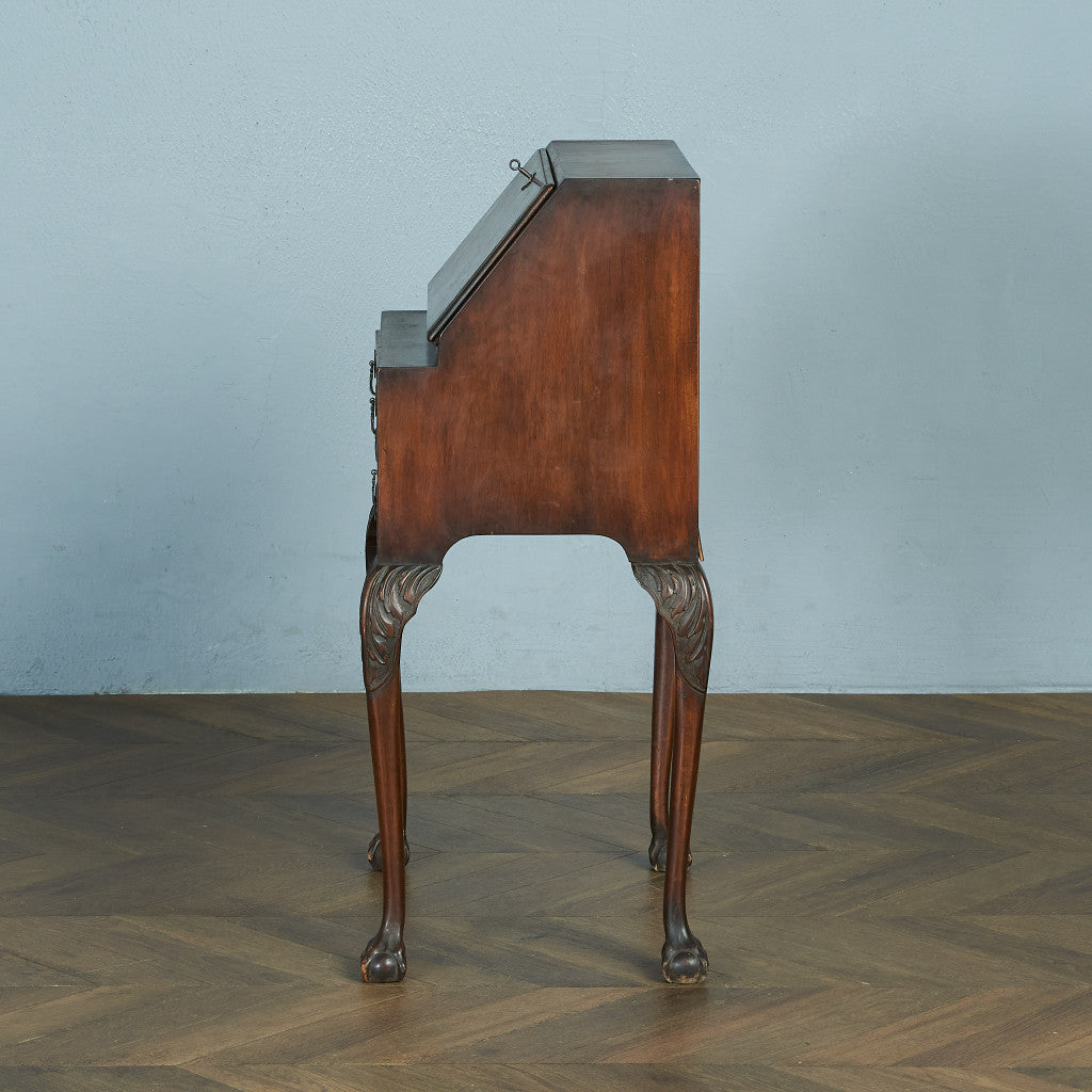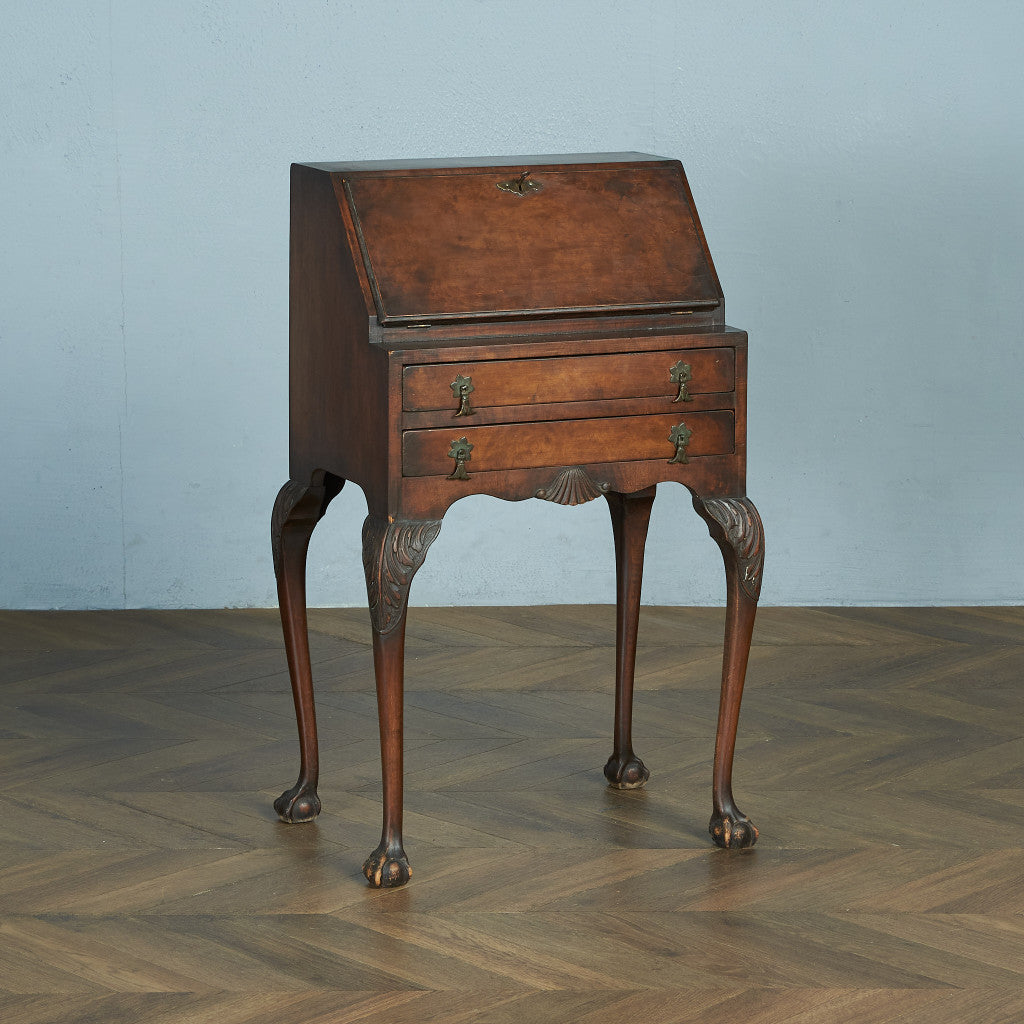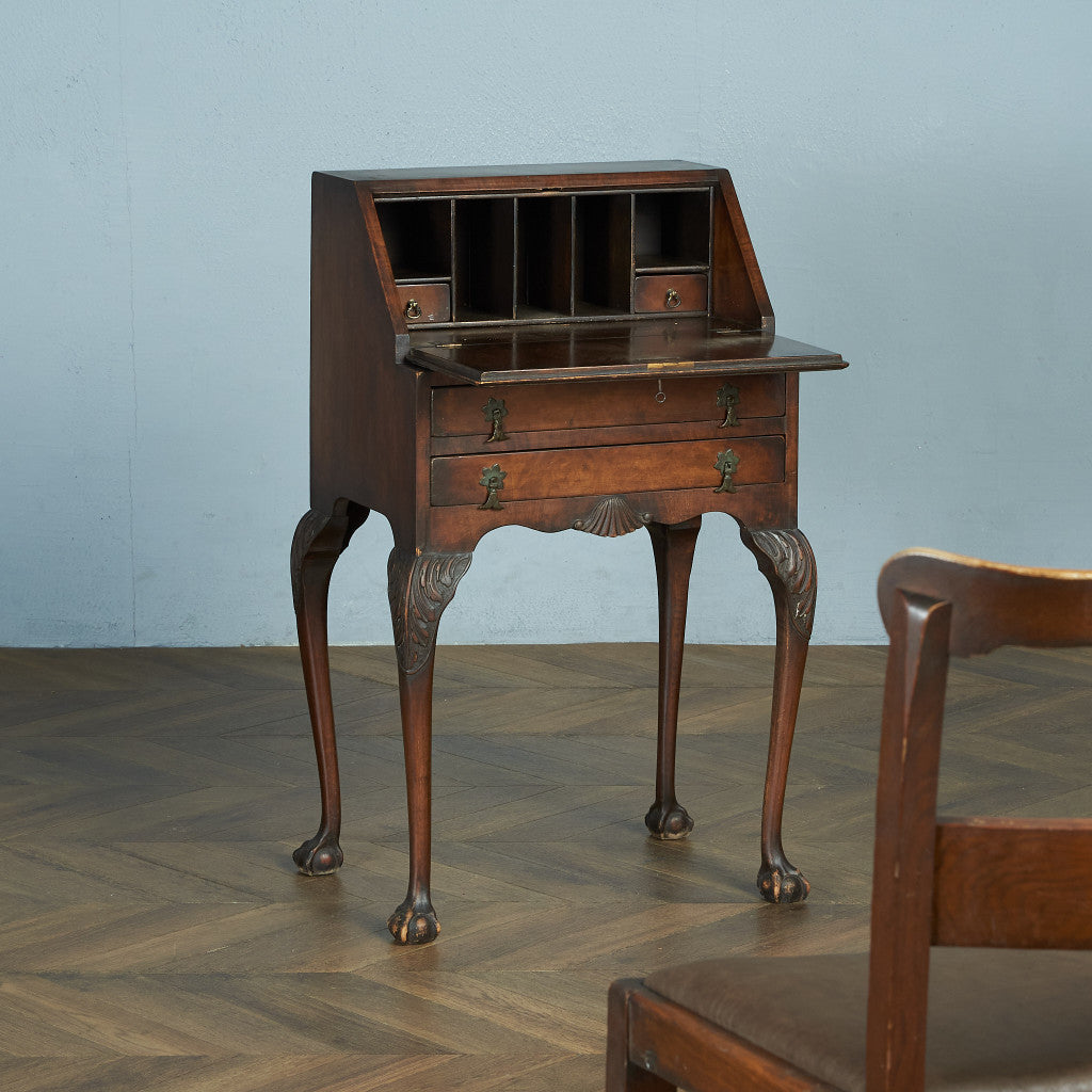良質なオーク材を使用し、随所に美しいディテールを備えたライティングビューロー。繊細なアカンサスの木彫り装飾や力強い印象のボール&クロウレッグなど、ディテールの良さが際立つエレガントな佇まいが魅力です。古き良き西欧の伝統を感じさせるクラシカルなデザイン、程よく古びた風合いが素朴で優しい雰囲気を演出します。ヨーロピアンアンティークの空間づくりやショップのディスプレイにもおすすめです。