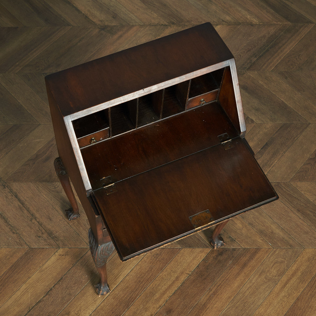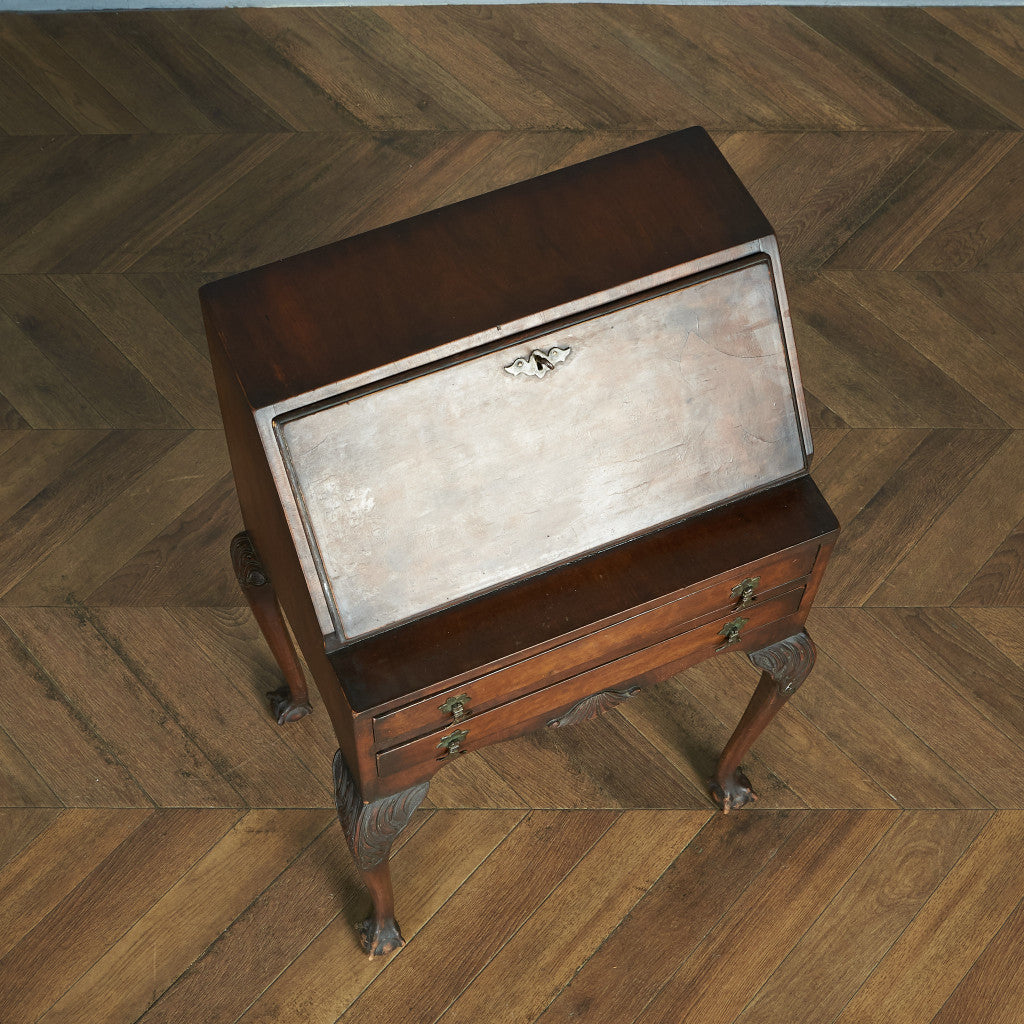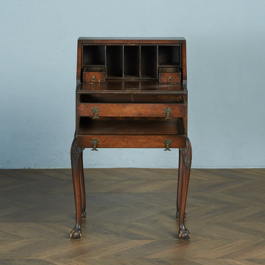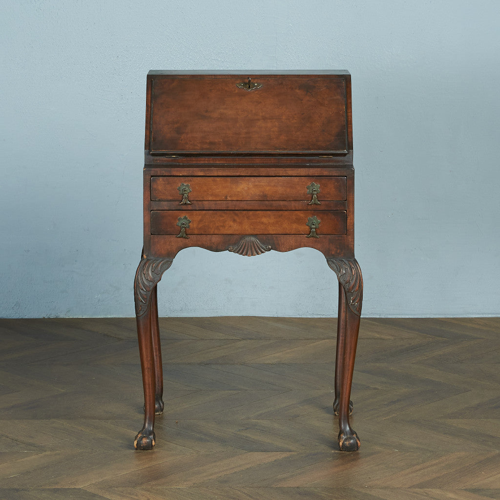 良質なオーク材を使用し、随所に美しいディテールを備えたライティングビューロー。繊細なアカンサスの木彫り装飾や力強い印象のボール&クロウレッグなど、ディテールの良さが際立つエレガントな佇まいが魅力です。古き良き西欧の伝統を感じさせるクラシカルなデザイン、程よく古びた風合いが素朴で優しい雰囲気を演出します。ヨーロピアンアンティークの空間づくりやショップのディスプレイにもおすすめです。