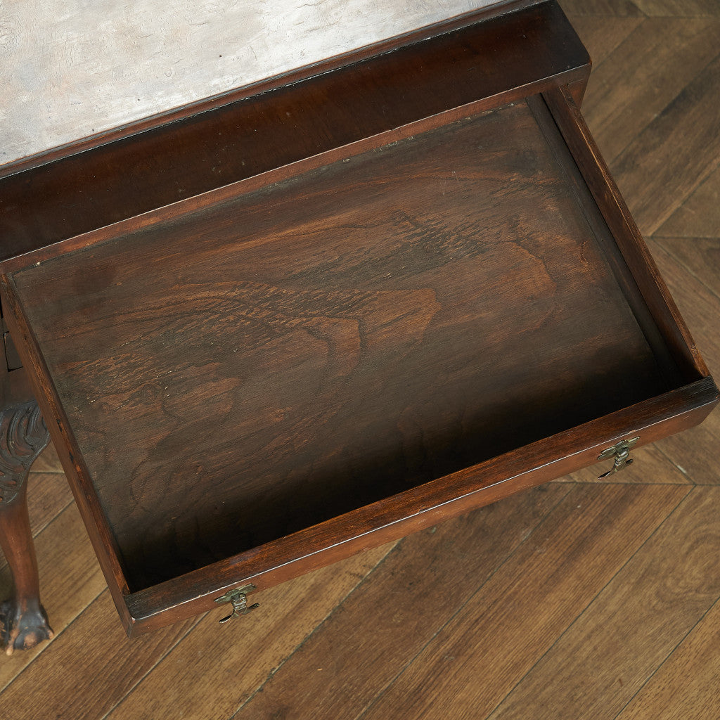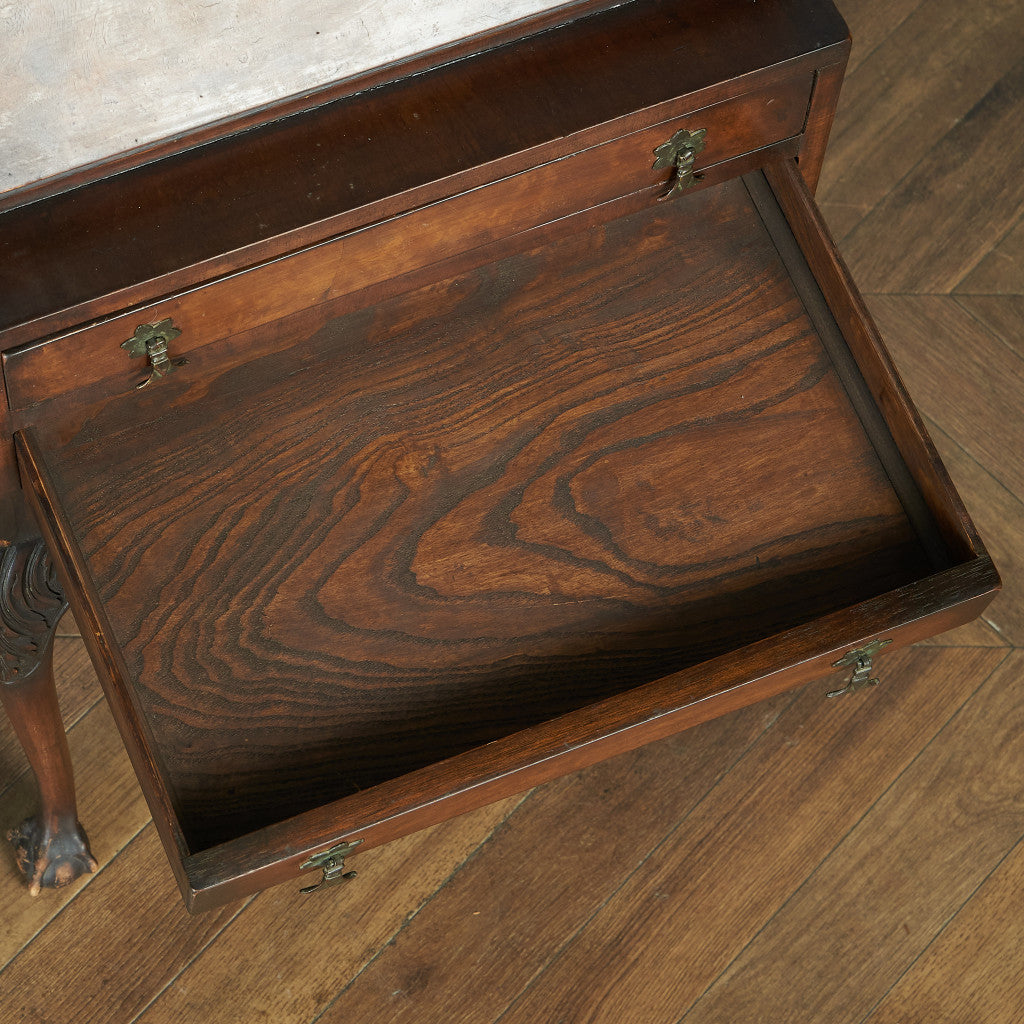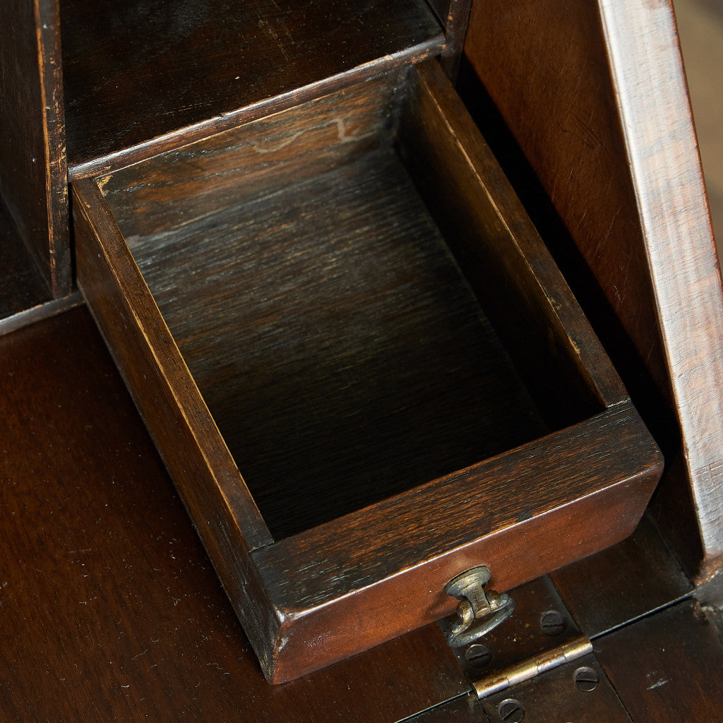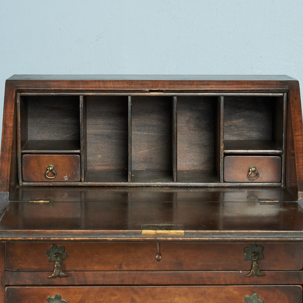 良質なオーク材を使用し、随所に美しいディテールを備えたライティングビューロー。繊細なアカンサスの木彫り装飾や力強い印象のボール&クロウレッグなど、ディテールの良さが際立つエレガントな佇まいが魅力です。古き良き西欧の伝統を感じさせるクラシカルなデザイン、程よく古びた風合いが素朴で優しい雰囲気を演出します。ヨーロピアンアンティークの空間づくりやショップのディスプレイにもおすすめです。