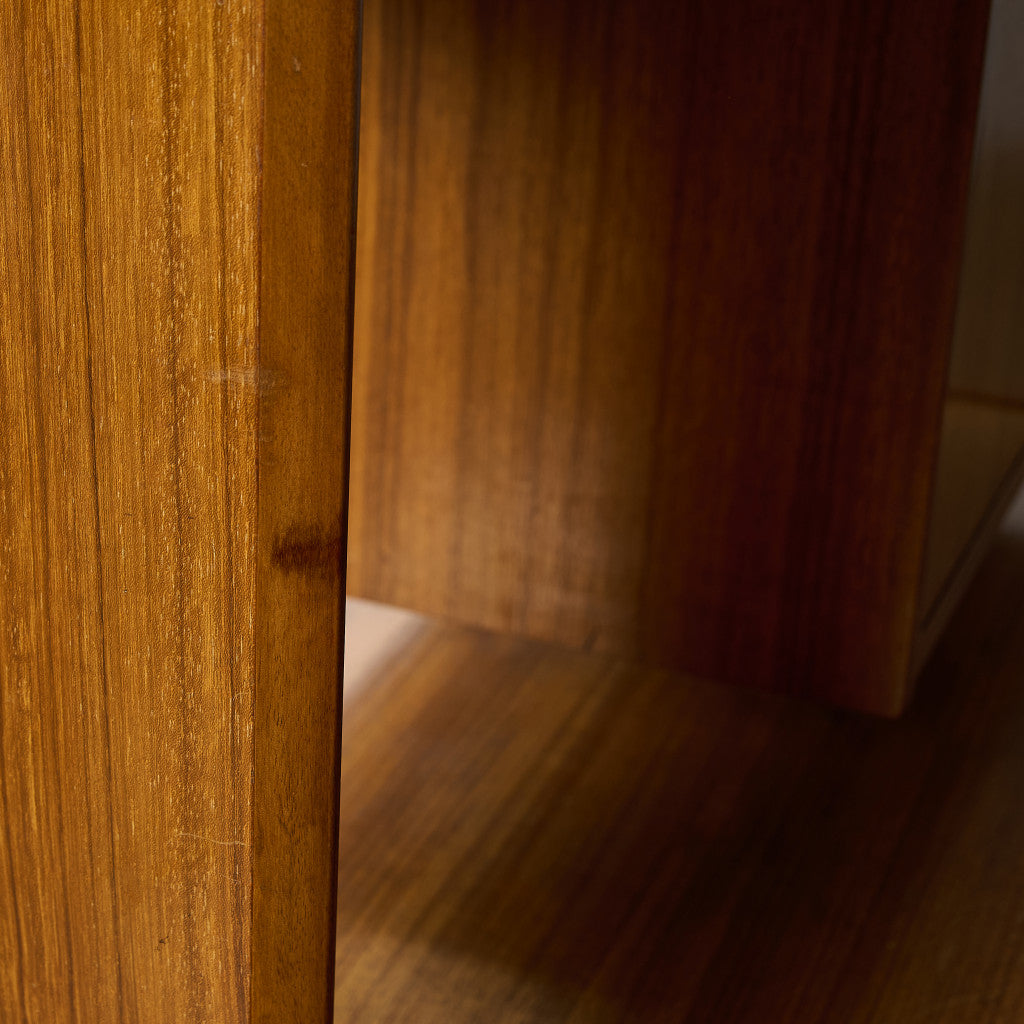 一体となった広い空間をリビング、ダイニングとして使用することが多かった当時のロンドン都心部の間取りに向けて設計された間仕切り収納家具。両面からの見栄えに配慮した美しい背面仕上げは間仕切り家具ならではのもの。大容量収納とオープンラックによる適度に抜け感のあるデザインは現代の間取りにおいても食器棚、リビングボード、TV台、本棚等様々な用途でお使いいただけます。間仕切り用の家具ではありますが壁付けの収納としても問題なく使用可能です。