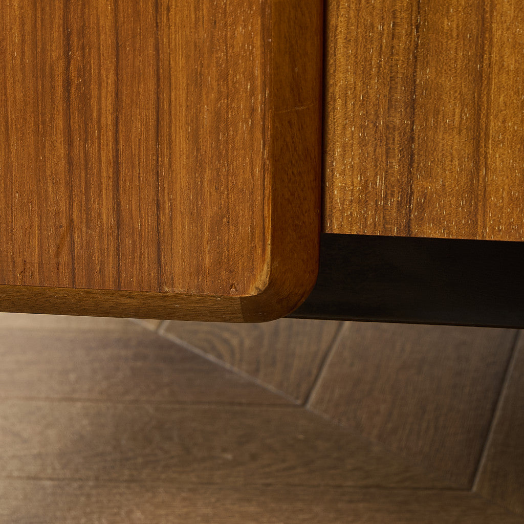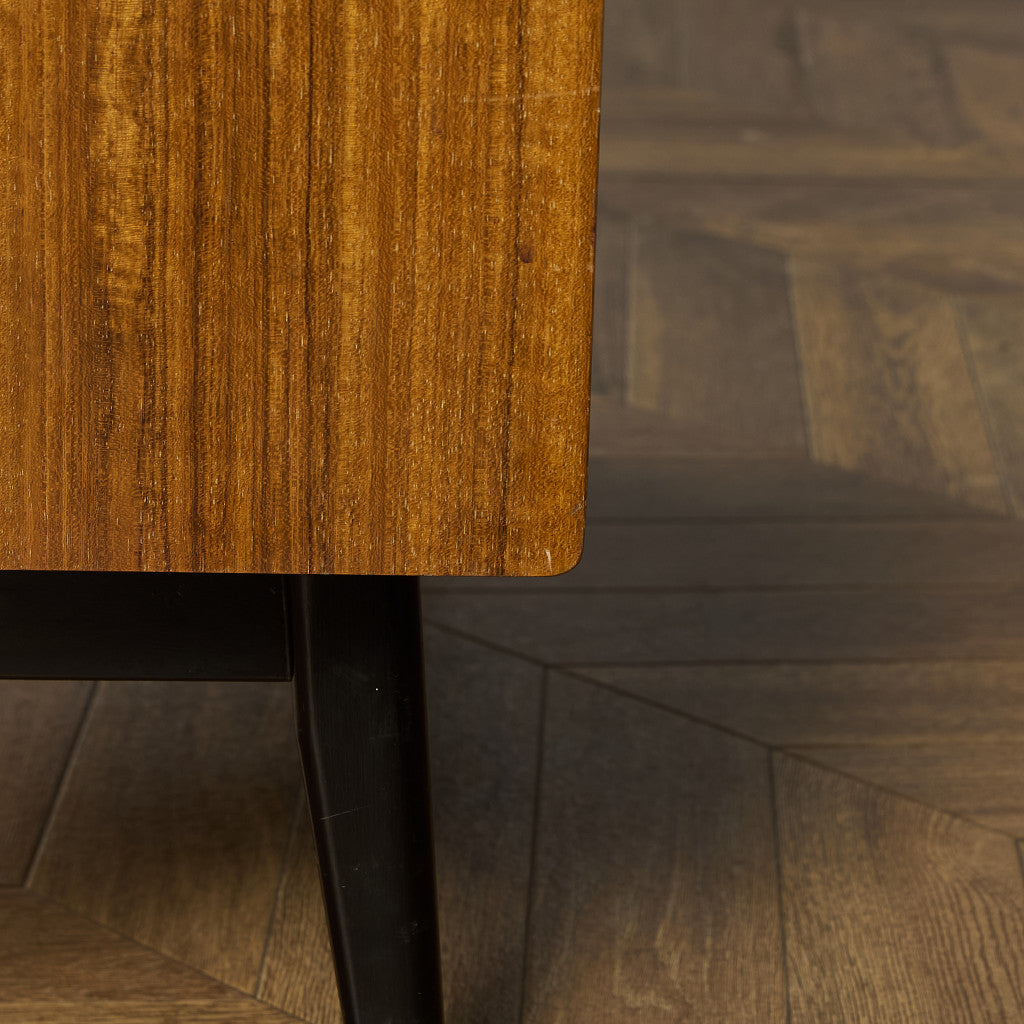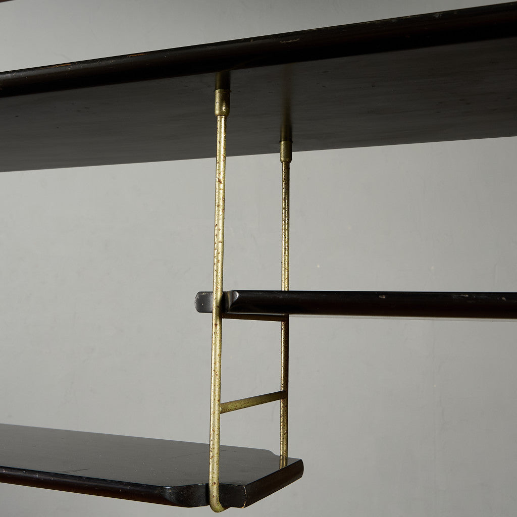 1958年に発売されたTola&Black(トーラ&ブラック)。日本の漆塗りに着想を得てヨーロッパで黒塗りの家具が流行した1950年代に展開されたシリーズです。スタイリッシュで洗練された雰囲気が印象的で、トーラ材の美しい色調とブラックペイントや、真鍮メッキのゴールドのコントラストが目を惹きます。別名BB(Black&Brass)シリーズとも呼ばれ、現在でも人気の高いTola&BlackはG-PLANの中でも流通量が少なく、なかなか手に入りにくい希少価値の高いシリーズです。