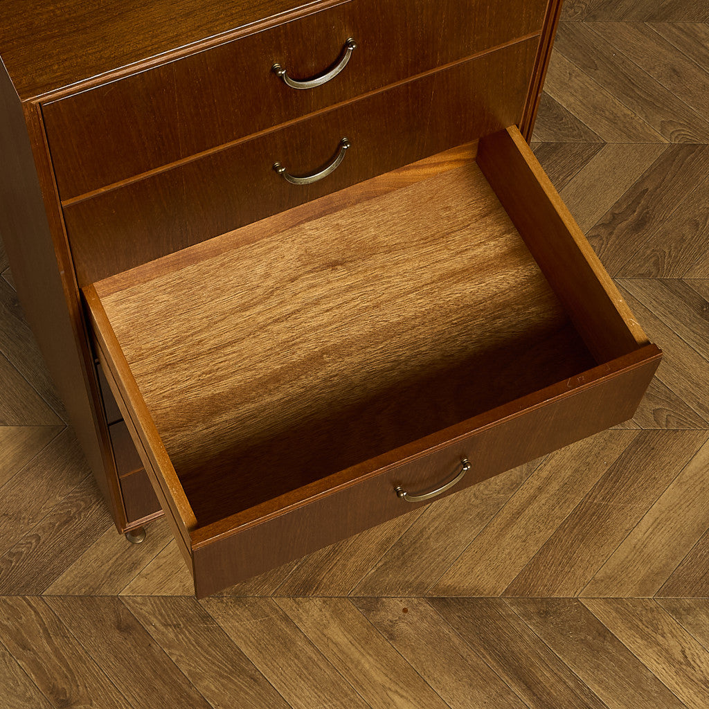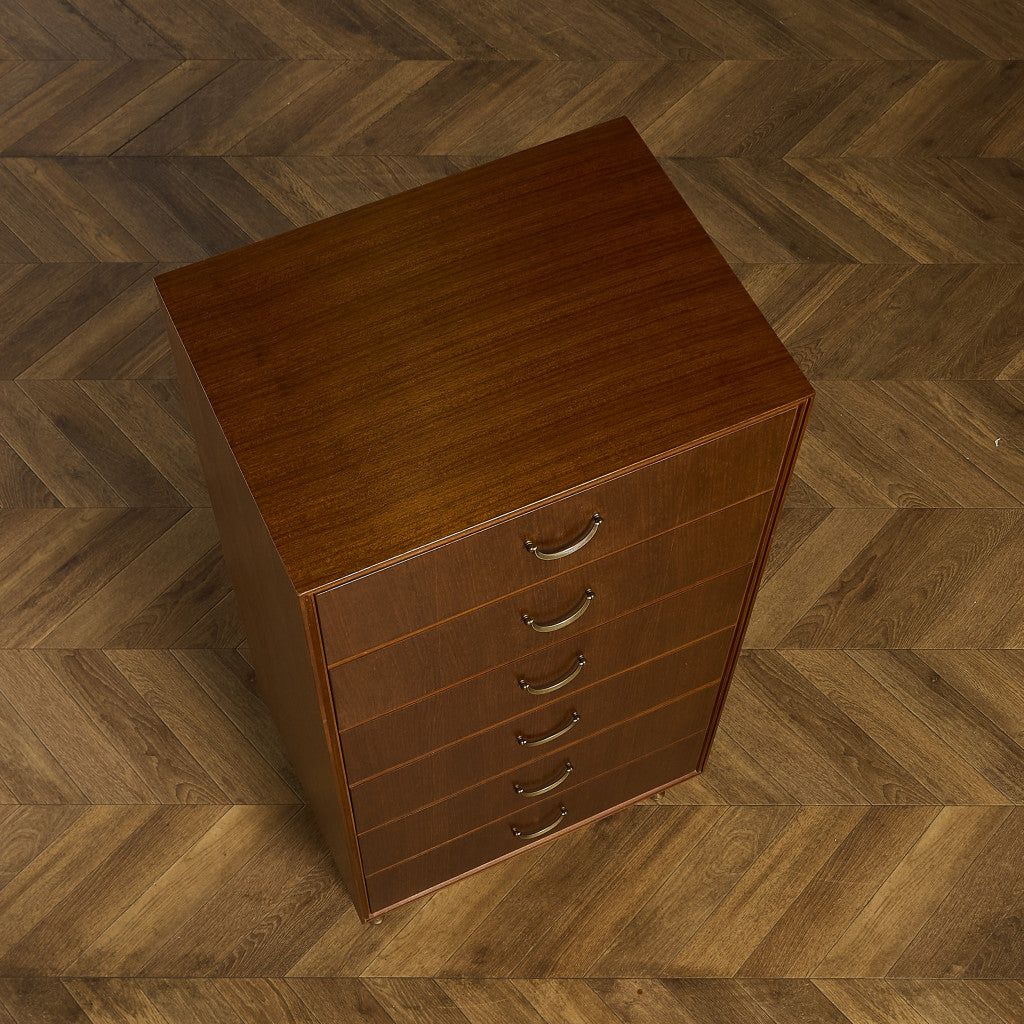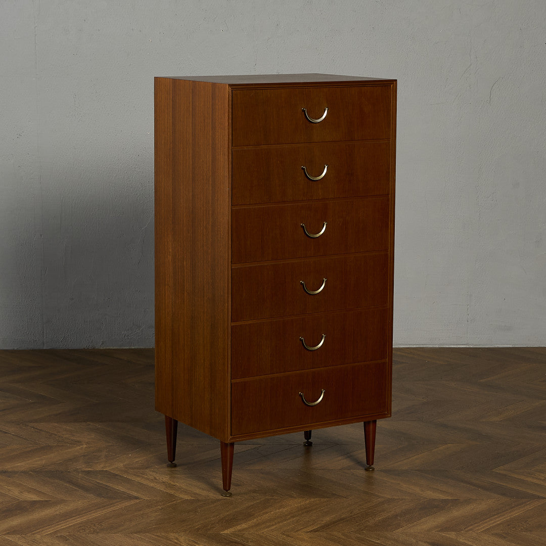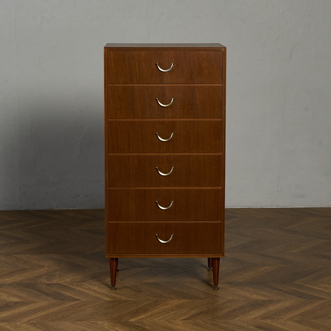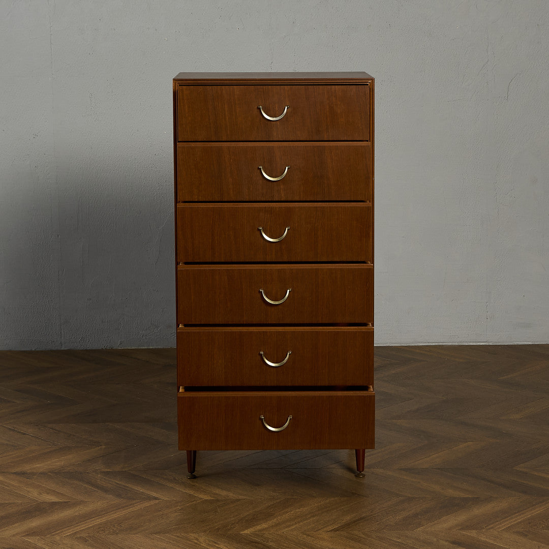 英国ミッドセンチュリー期を代表するインテリアメーカーのひとつ Meredew(メレデュー) による、ヴィンテージ 6段チェストです。