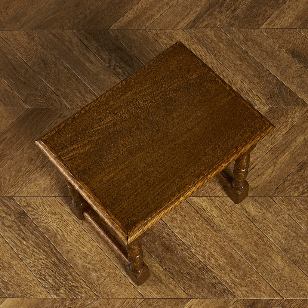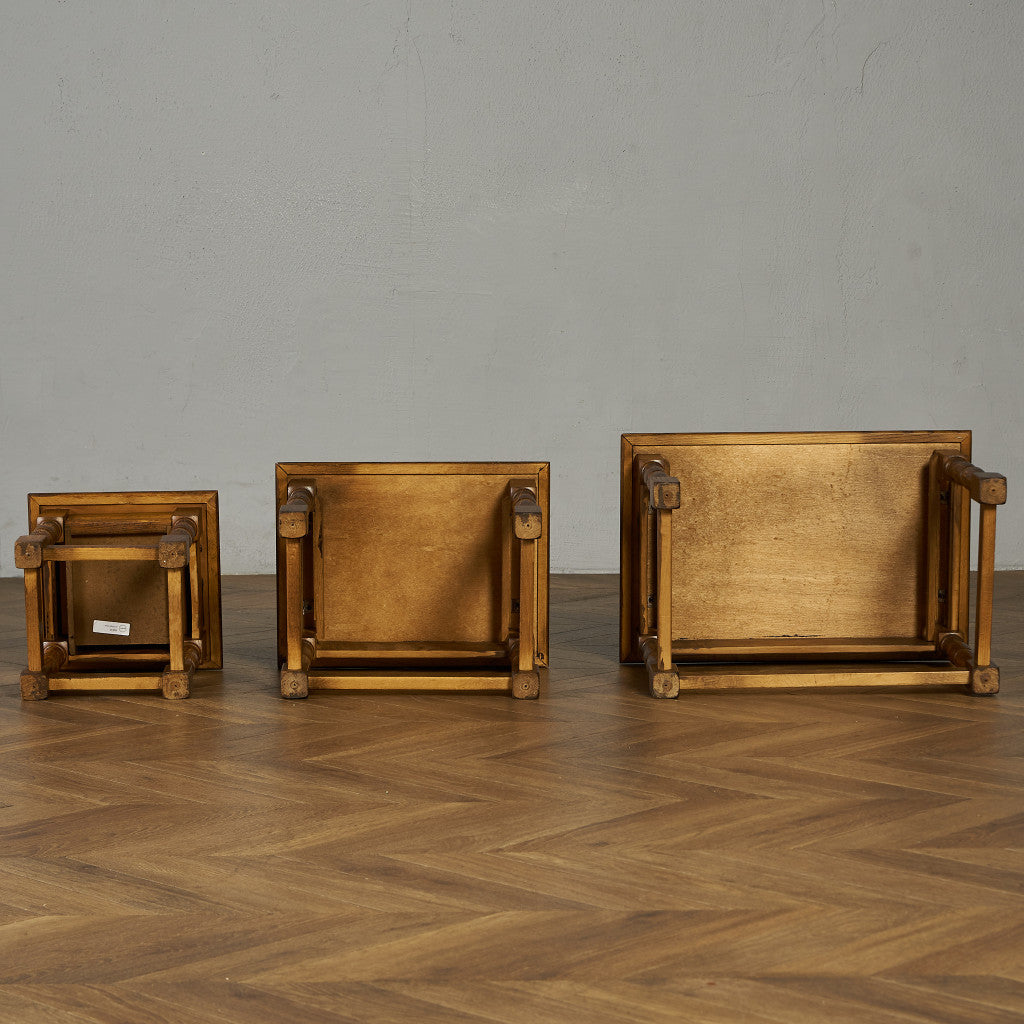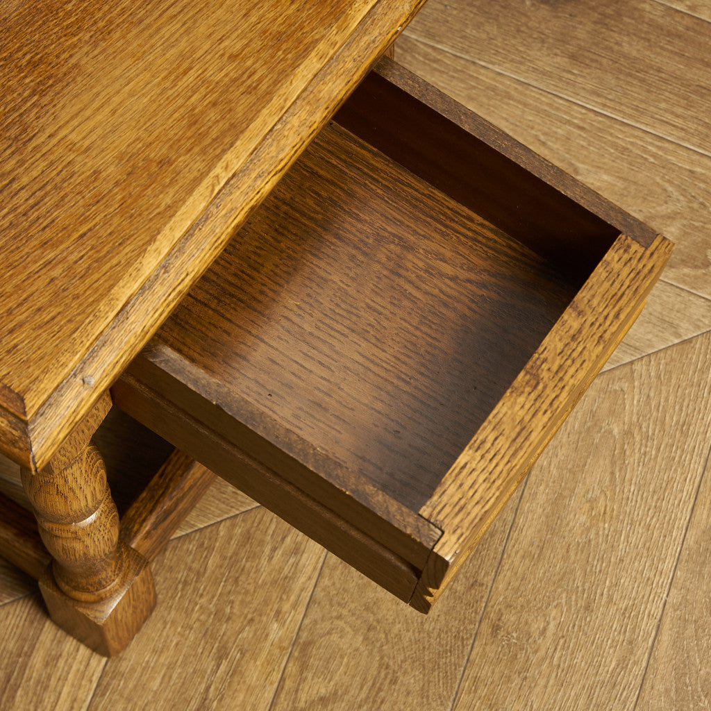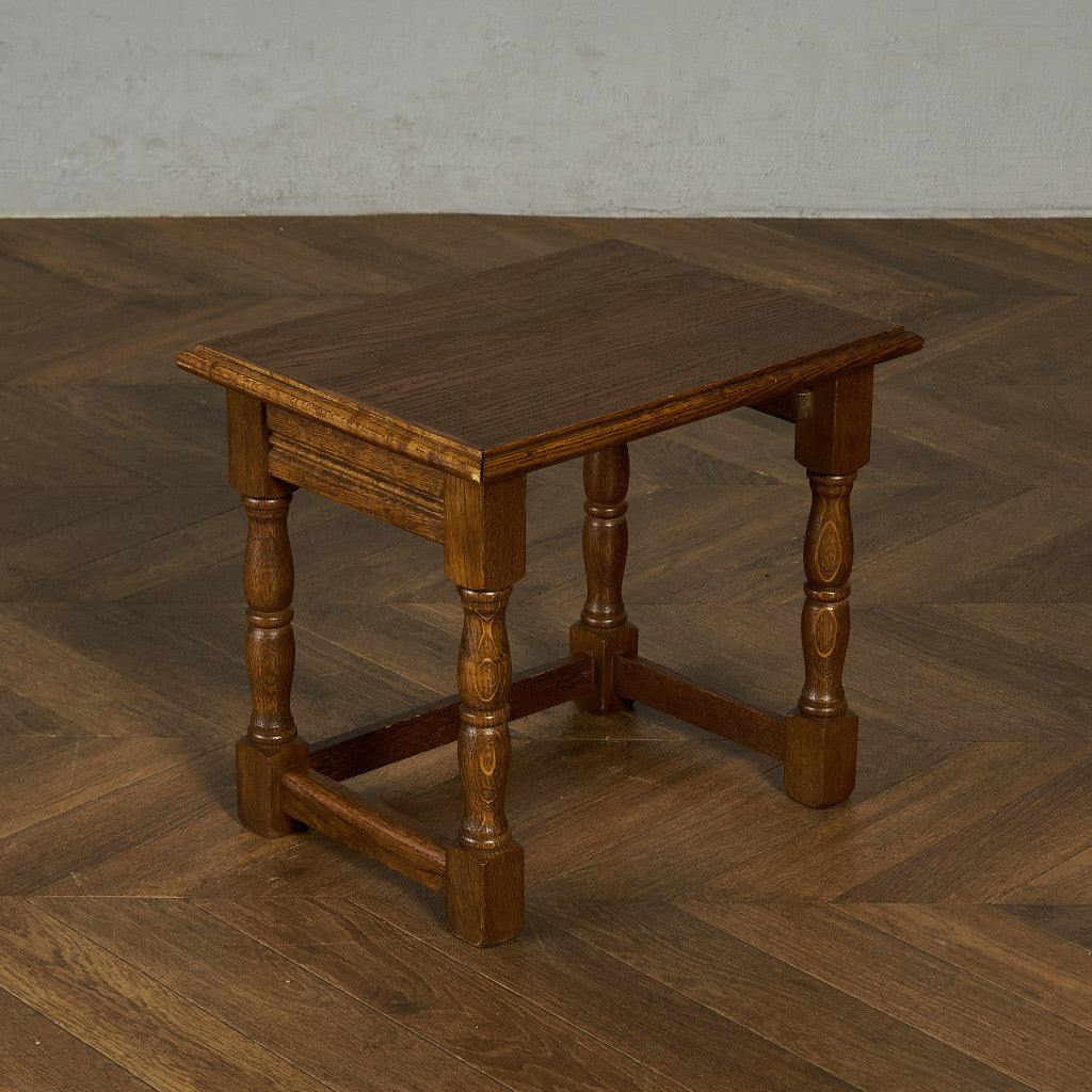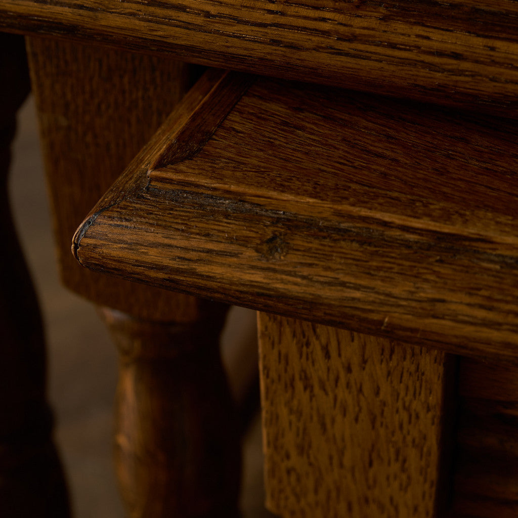 良質なオーク材を使用し、随所に美しいディテールを備えたネストテーブル。脚部に施された挽物細工が目を惹く、上質なお品です。