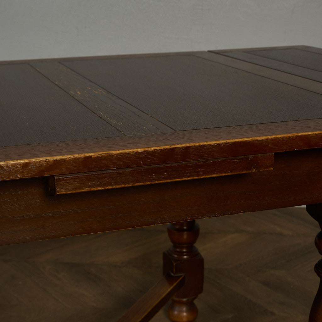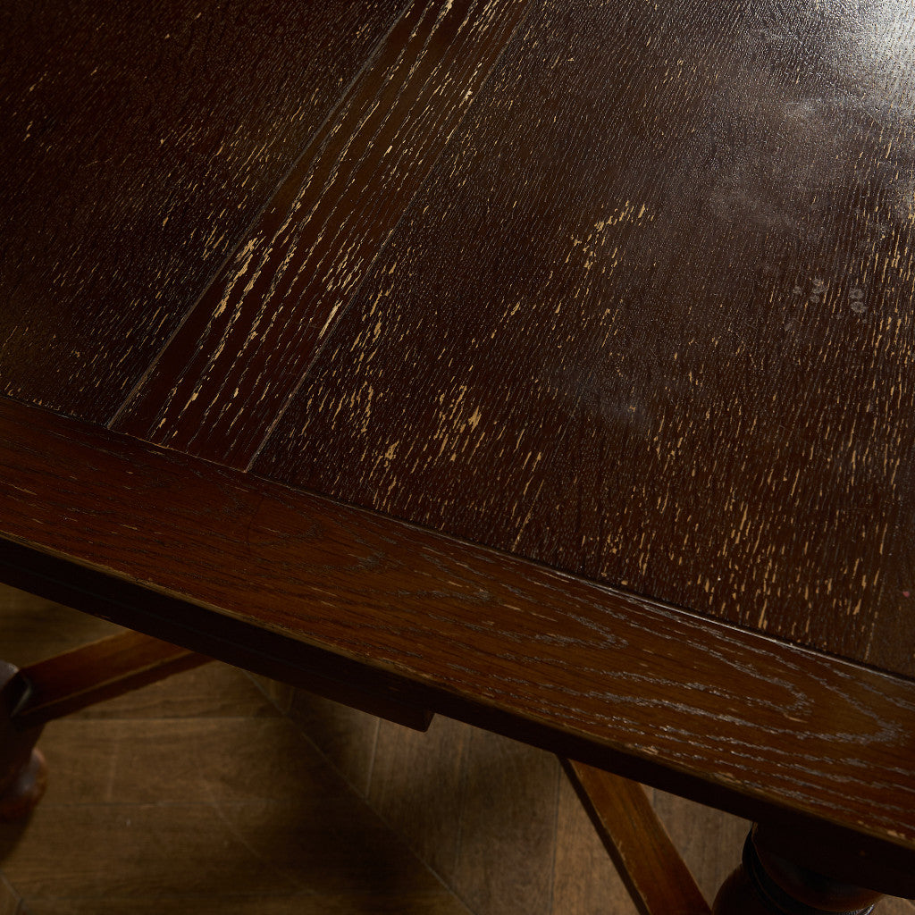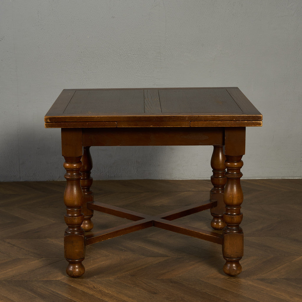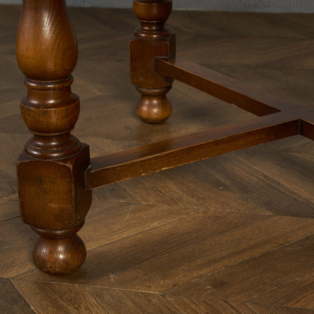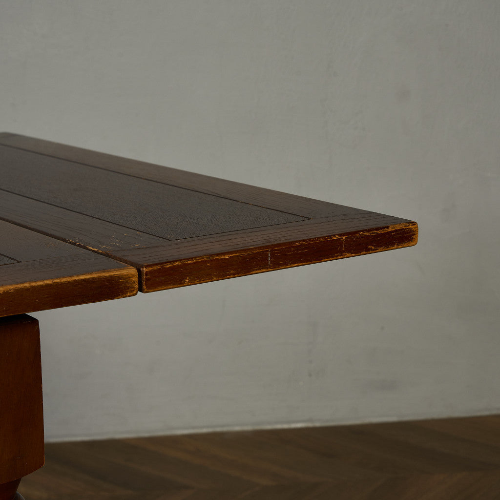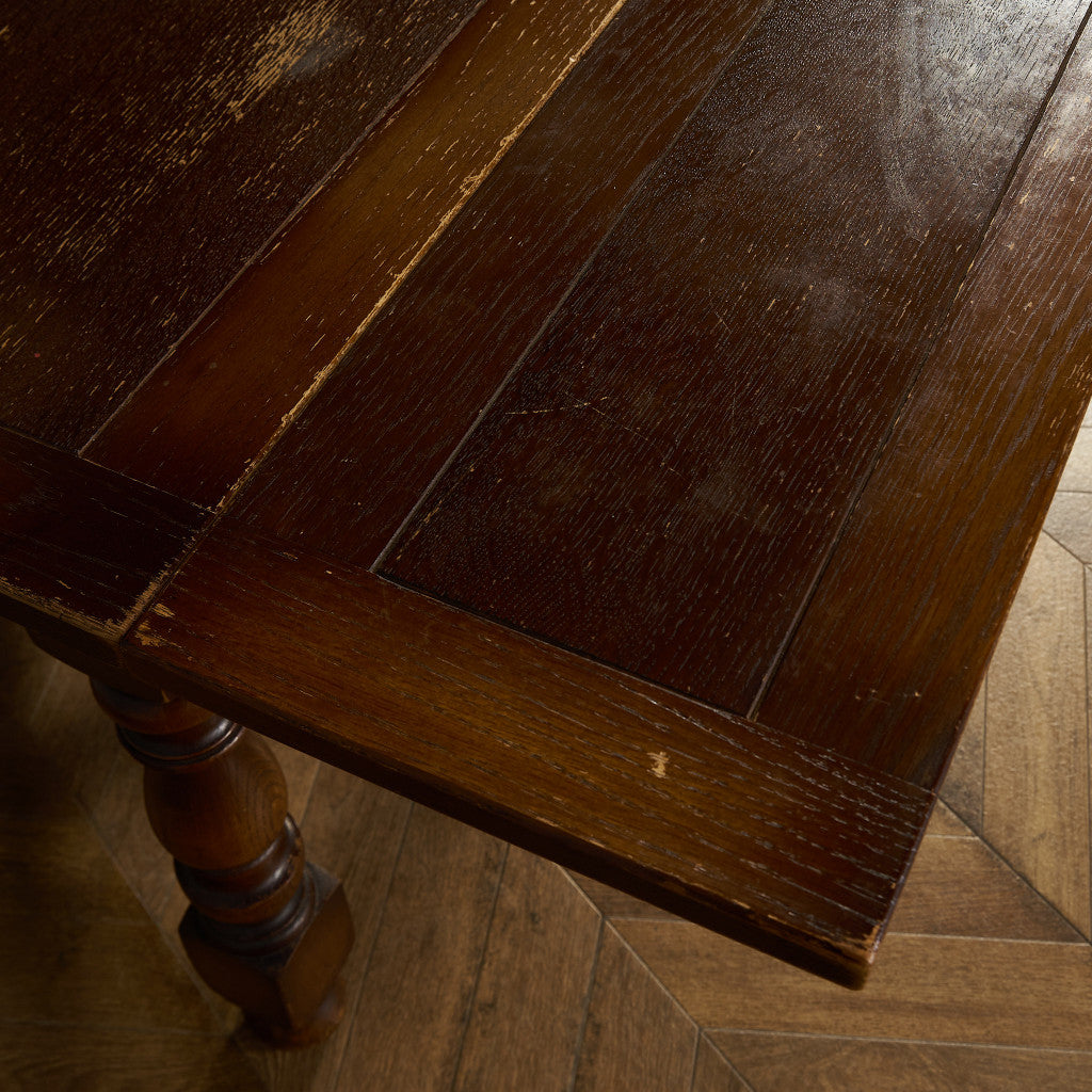 良質なオーク材を使用し、随所に美しいディテールを備えたドローリーフテーブル。趣ある挽物細工の脚や使い込まれた柔らかな木肌、飴色の落ち着いた色合いなど、ディテールの良さが際立つエレガントな佇まいが魅力です。