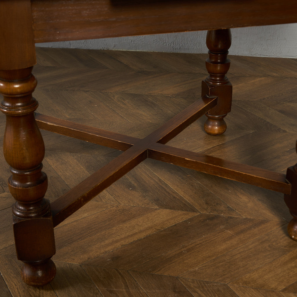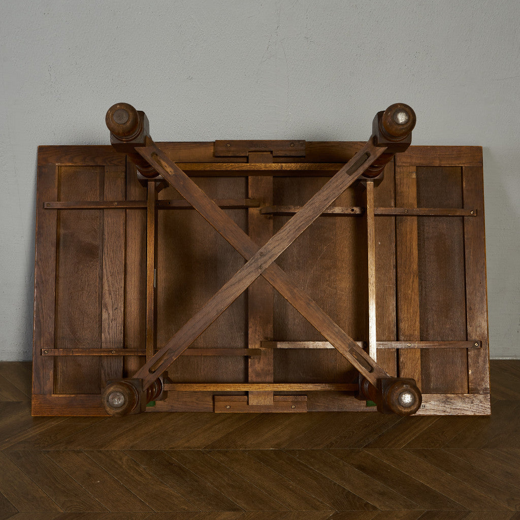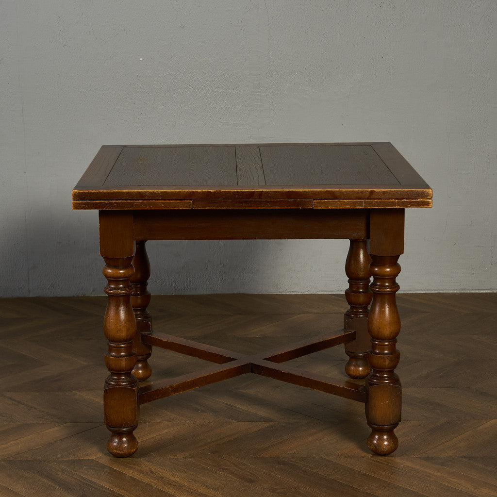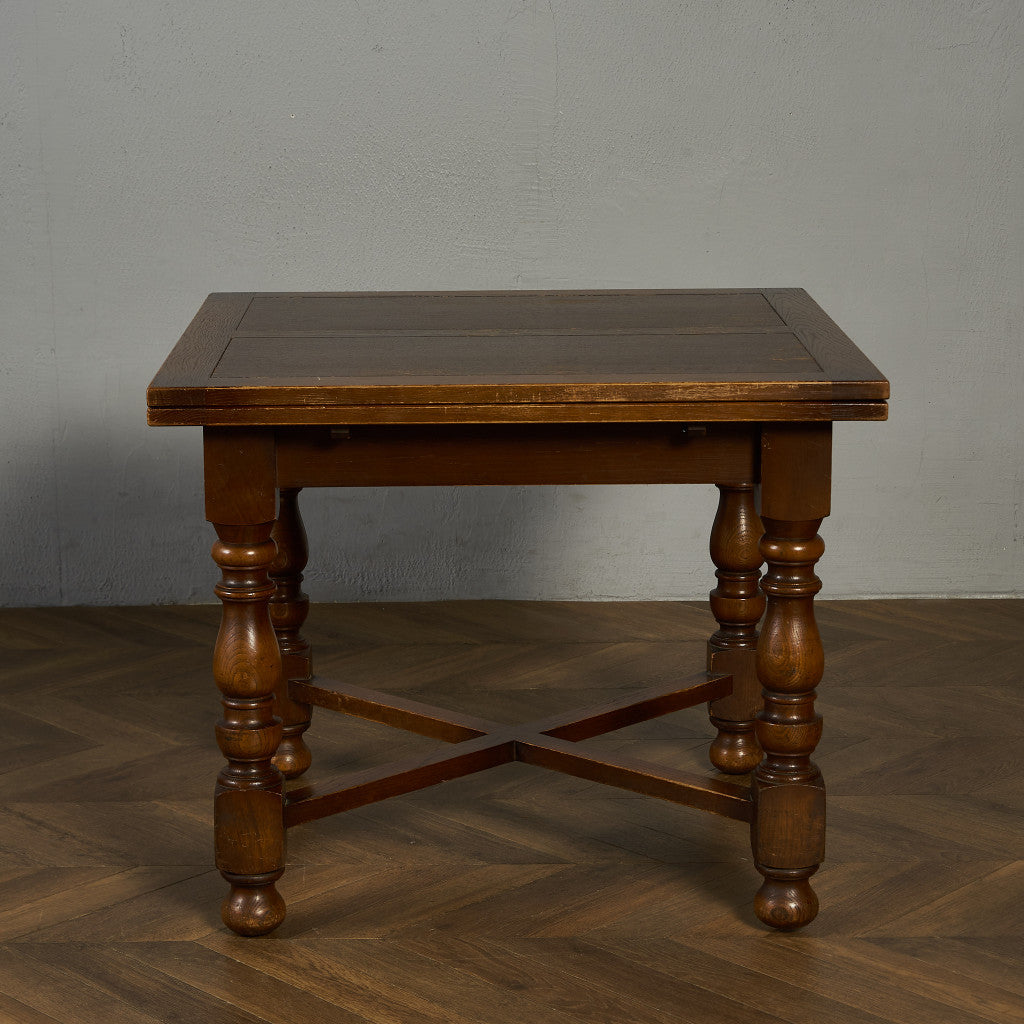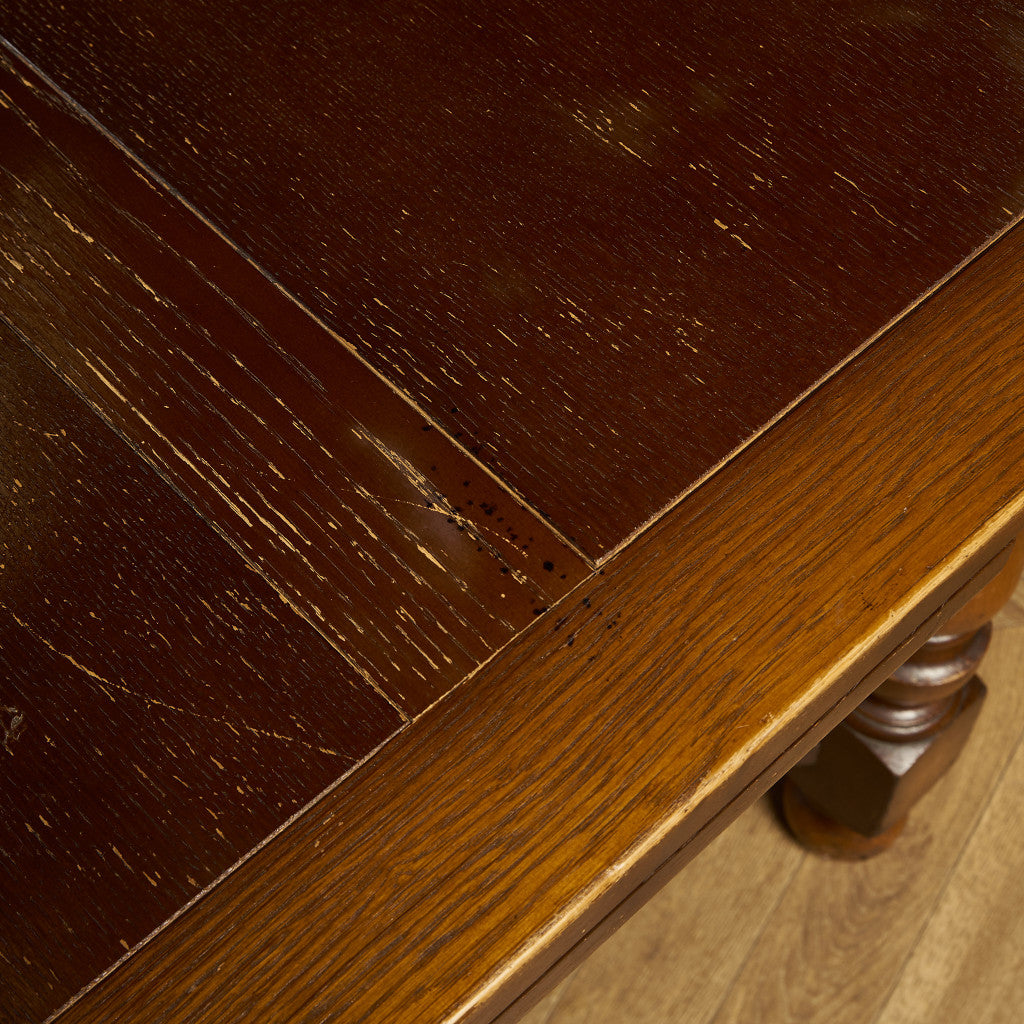 良質なオーク材を使用し、随所に美しいディテールを備えたドローリーフテーブル。趣ある挽物細工の脚や使い込まれた柔らかな木肌、飴色の落ち着いた色合いなど、ディテールの良さが際立つエレガントな佇まいが魅力です。
