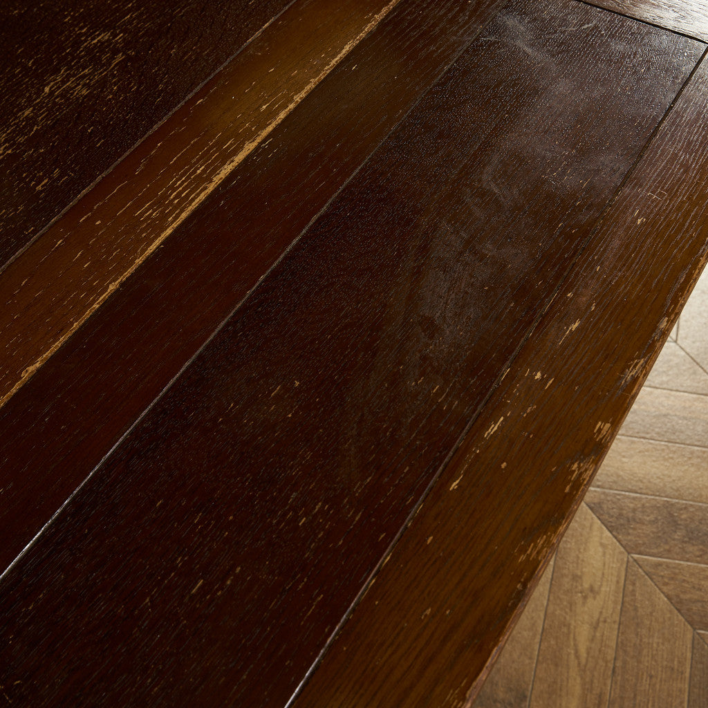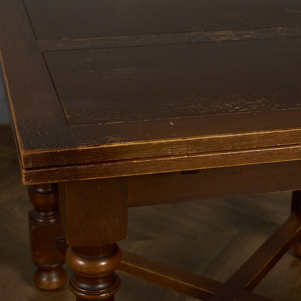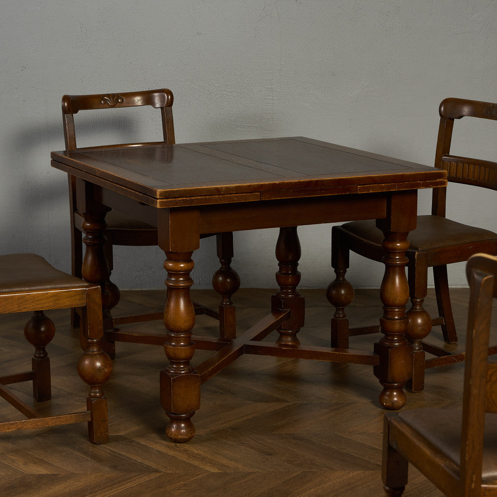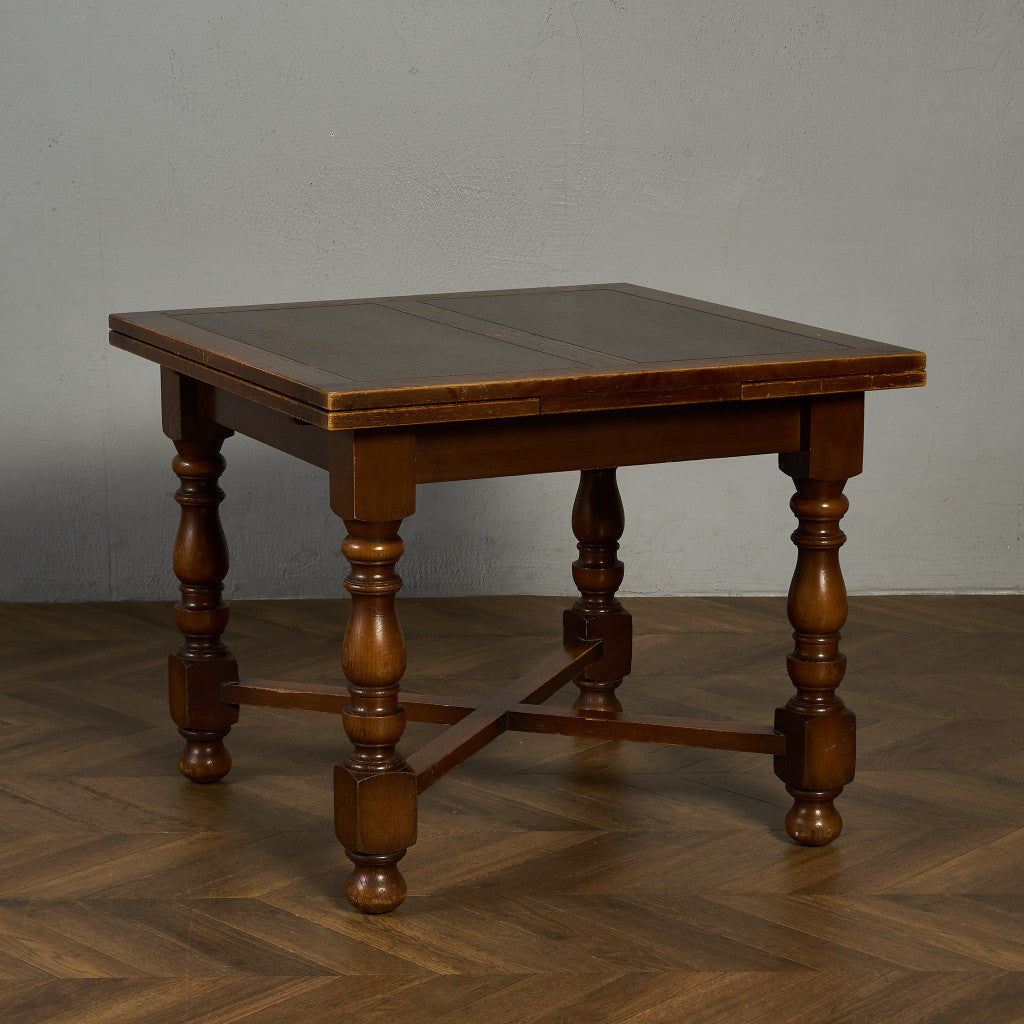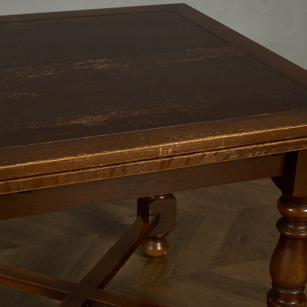 良質なオーク材を使用し、随所に美しいディテールを備えたドローリーフテーブル。趣ある挽物細工の脚や使い込まれた柔らかな木肌、飴色の落ち着いた色合いなど、ディテールの良さが際立つエレガントな佇まいが魅力です。