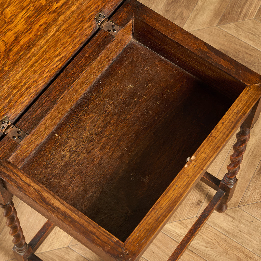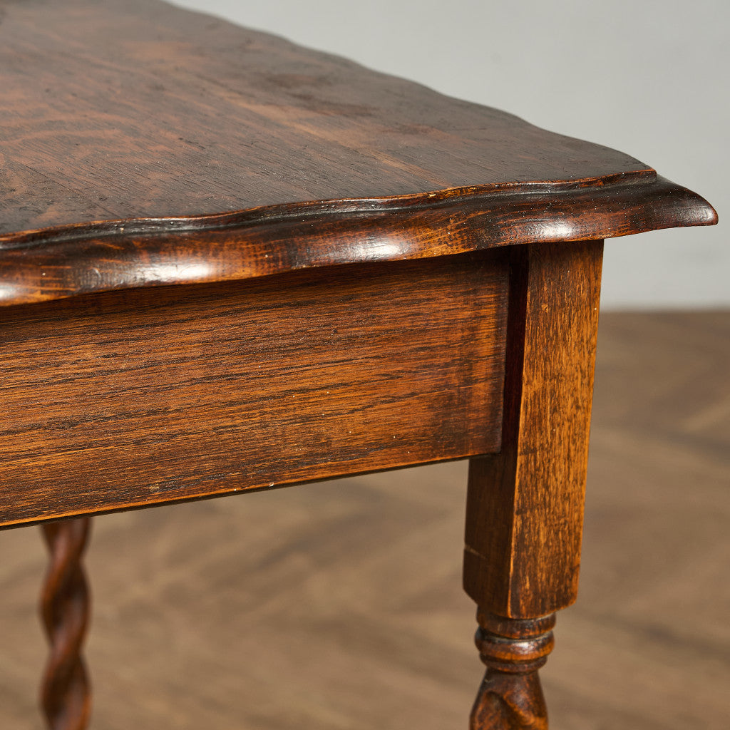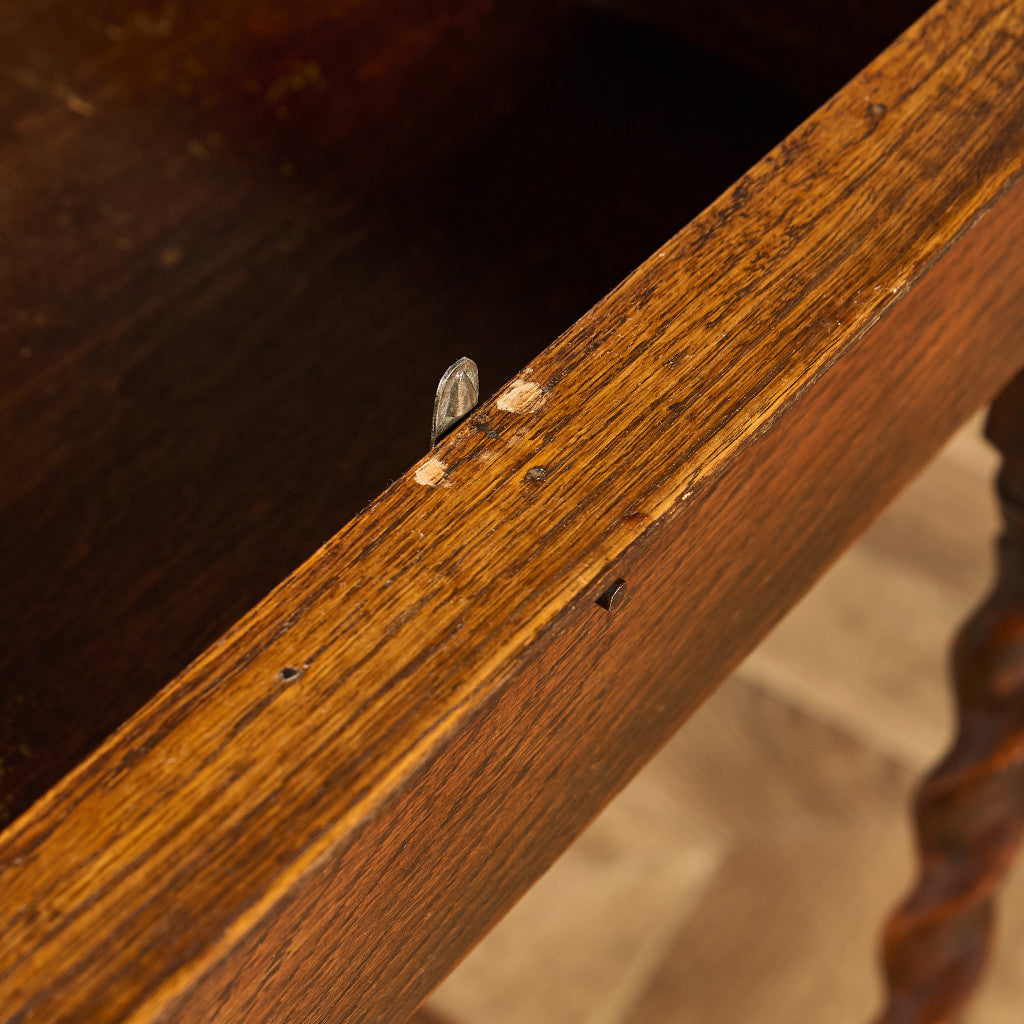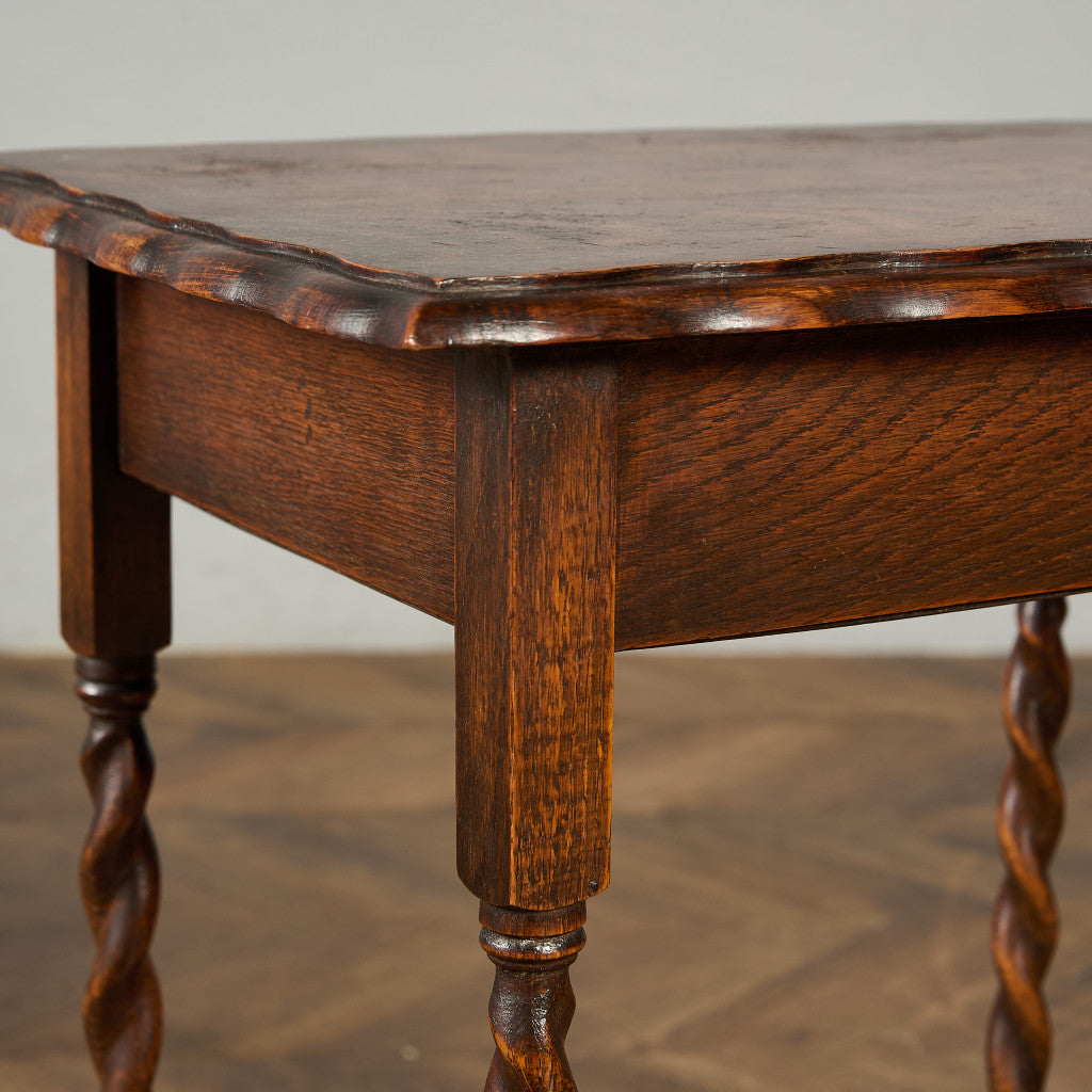 バーリーシュガーツイストの美しいディテールが目を引く上質なサイドテーブル。天板下に収納を備え、多様なシーンで活躍してくれる一品。ほどよく古びた風合いが素朴で優しい雰囲気を演出します。