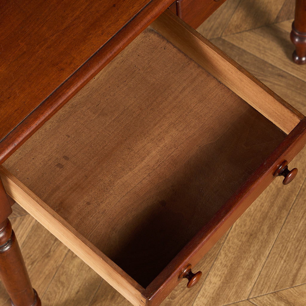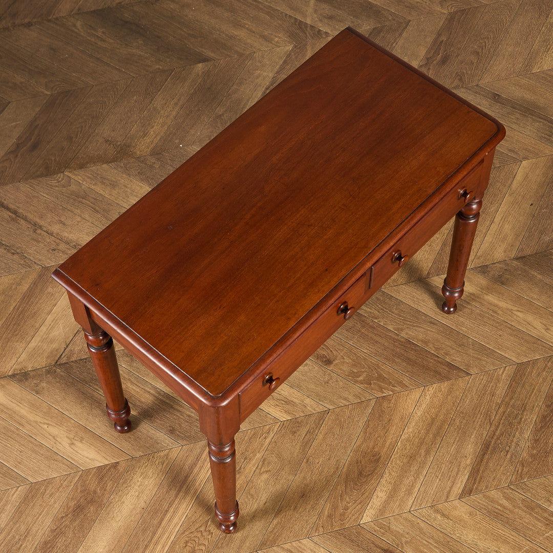 濃淡の美しいウォールナット材を使用した、優雅な佇まいのデスク。繊細な木彫り装飾など、細部まで手の込んだ美しいディテールが魅力です。古き良き西欧の伝統を感じさせるクラシカルなデザイン、程よく古びた風合いが素朴で優しい雰囲気を演出します。