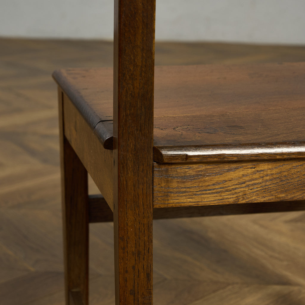 使い込まれた木肌の質感や手仕事と経年変化による歪み、無垢材を用いたアンティーク家具ならではの存在感のあるお品です。ダイニングチェアとしてはもちろん、ディスプレイとしてお楽しみいただけます。