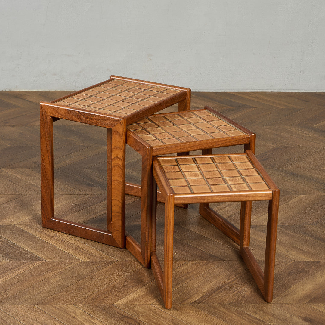 英国 ヴィンテージ タイルトップ ネストテーブル #91883
