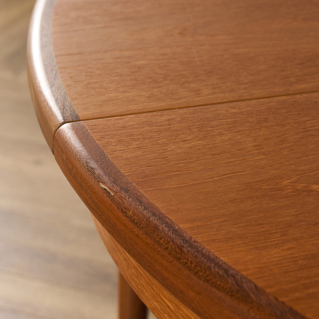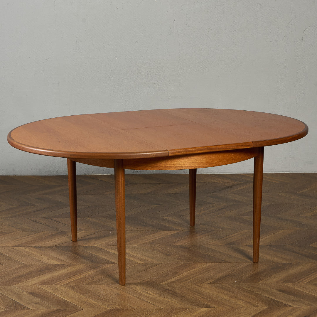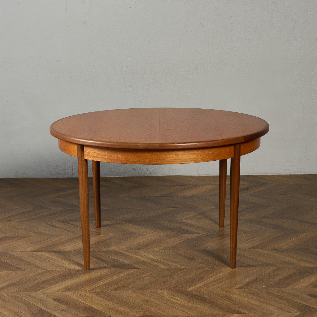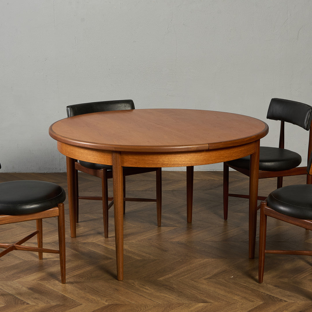 イギリスにおいてミッドセンチュリーを代表する G-PLAN(ジープラン) による、Victor Bramwell Wilkins(ビクター・ブラムウェル・ウィルキンス)デザイン、Fresco(フレスコ) エクステンション ラウンド ダイニングテーブルです。