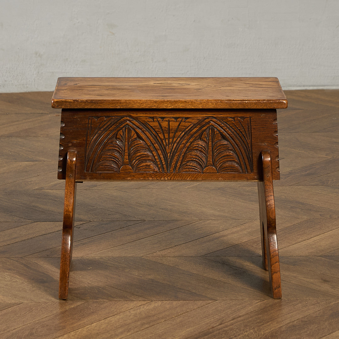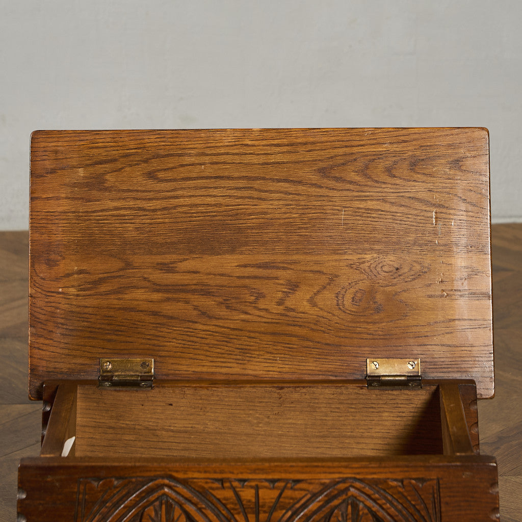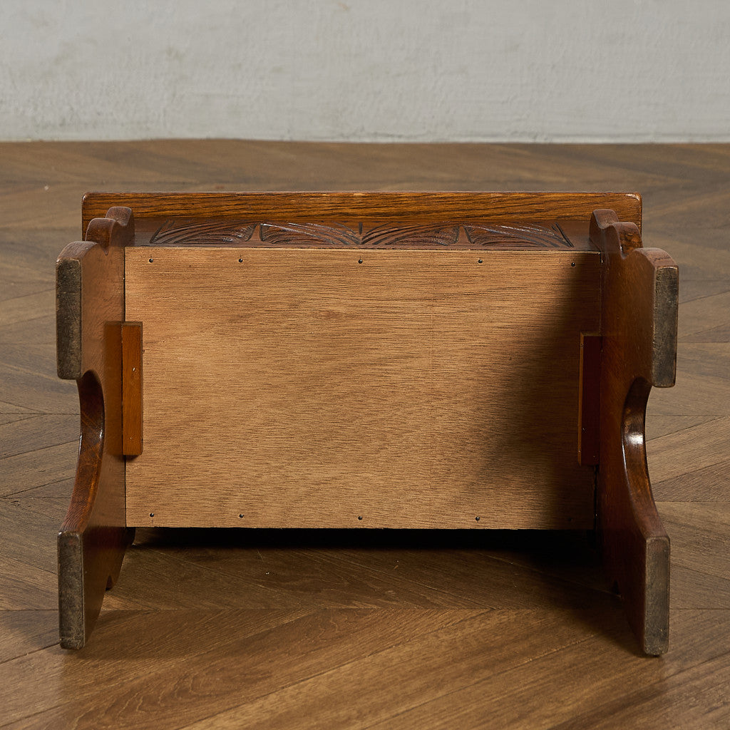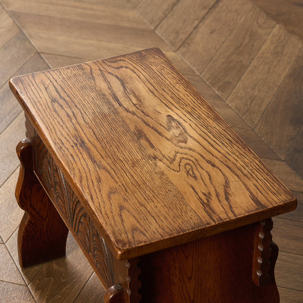 木彫刻装飾が美しいサイドテーブル。天板を開けると収納スペースがあり、実用性も兼ね備えています。ディスプレイテーブルとしてもお使いいただけます。