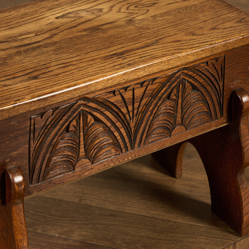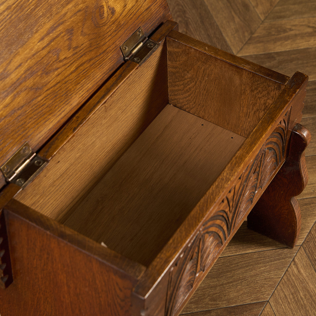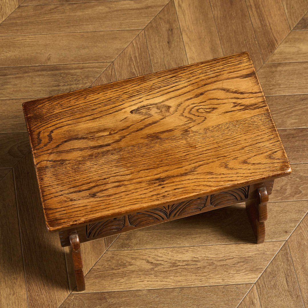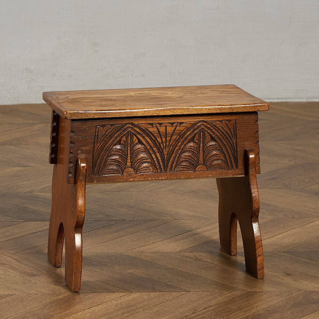 木彫刻装飾が美しいサイドテーブル。天板を開けると収納スペースがあり、実用性も兼ね備えています。ディスプレイテーブルとしてもお使いいただけます。