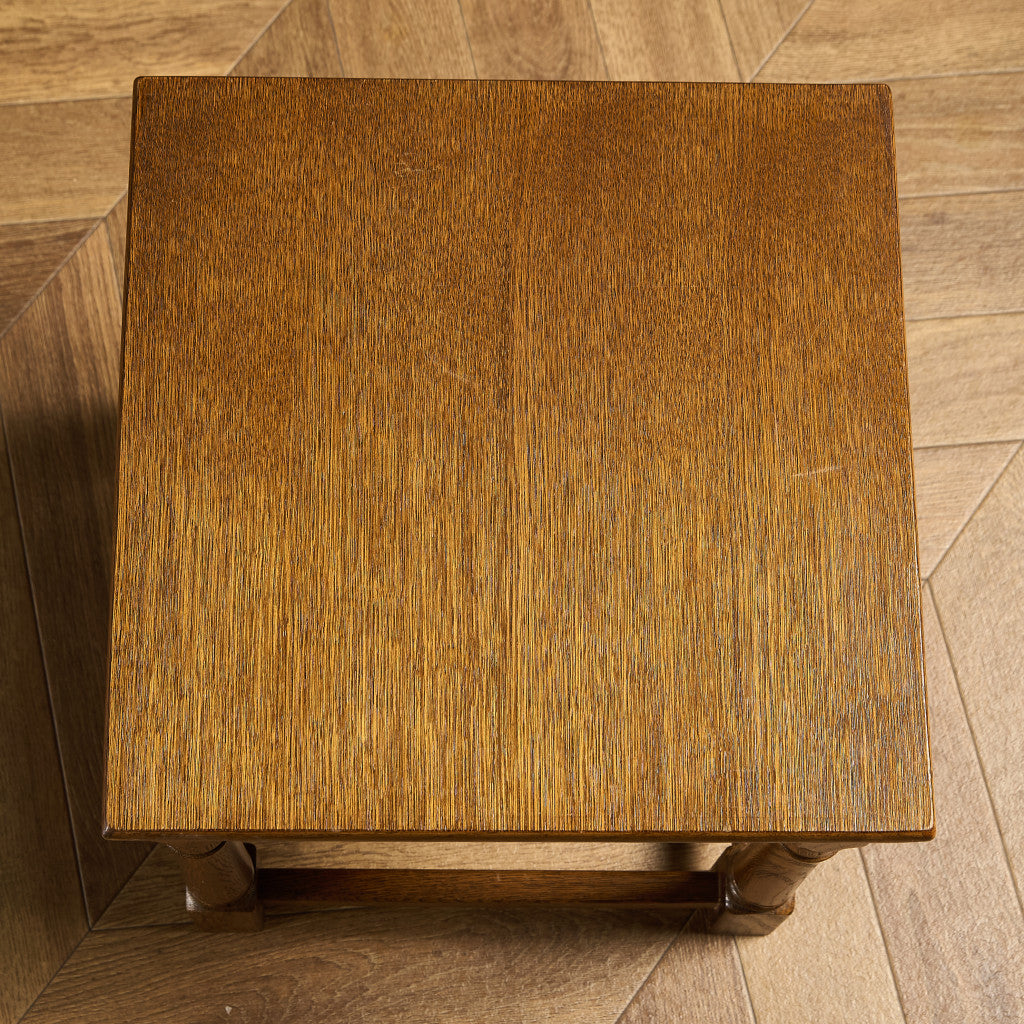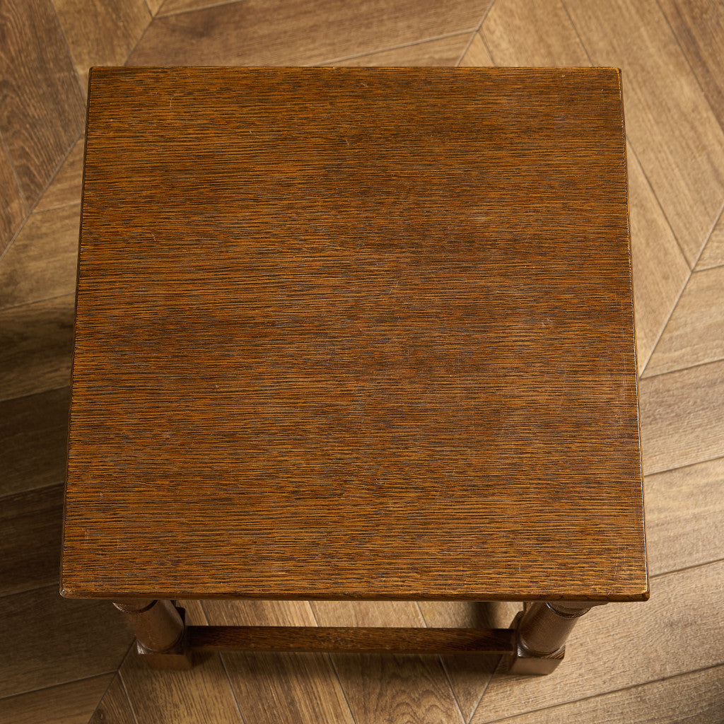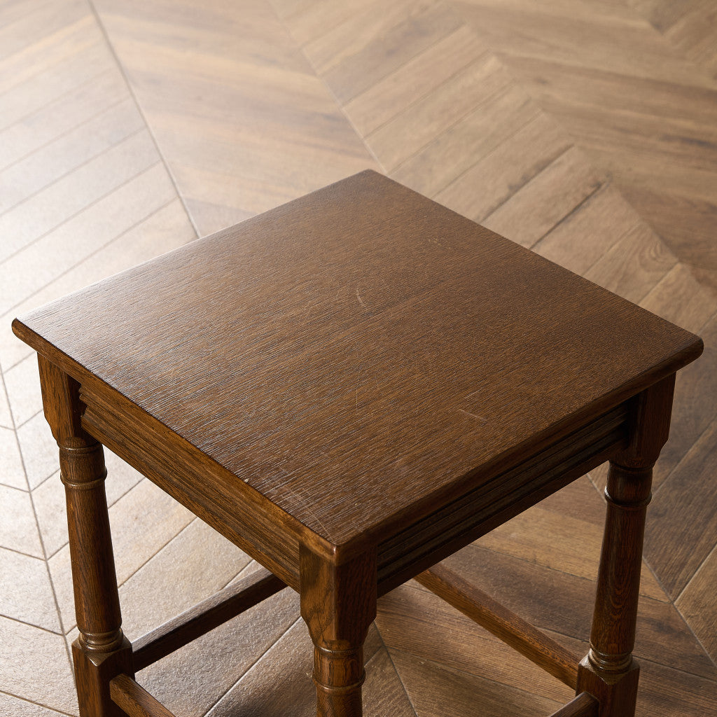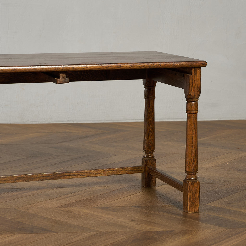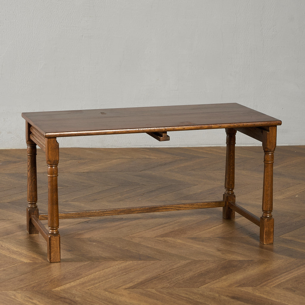 センターテーブルに対し、小テーブルを2点備えた珍しい仕様のコーヒーテーブル。随所に美しいディテールを備えた上質なお品です。オーク材の心地よい温もり、程よく古びた風合いが素朴で優しい雰囲気を演出します。ヨーロピアンアンティークの空間づくりやショップのディスプレイにもおすすめです。