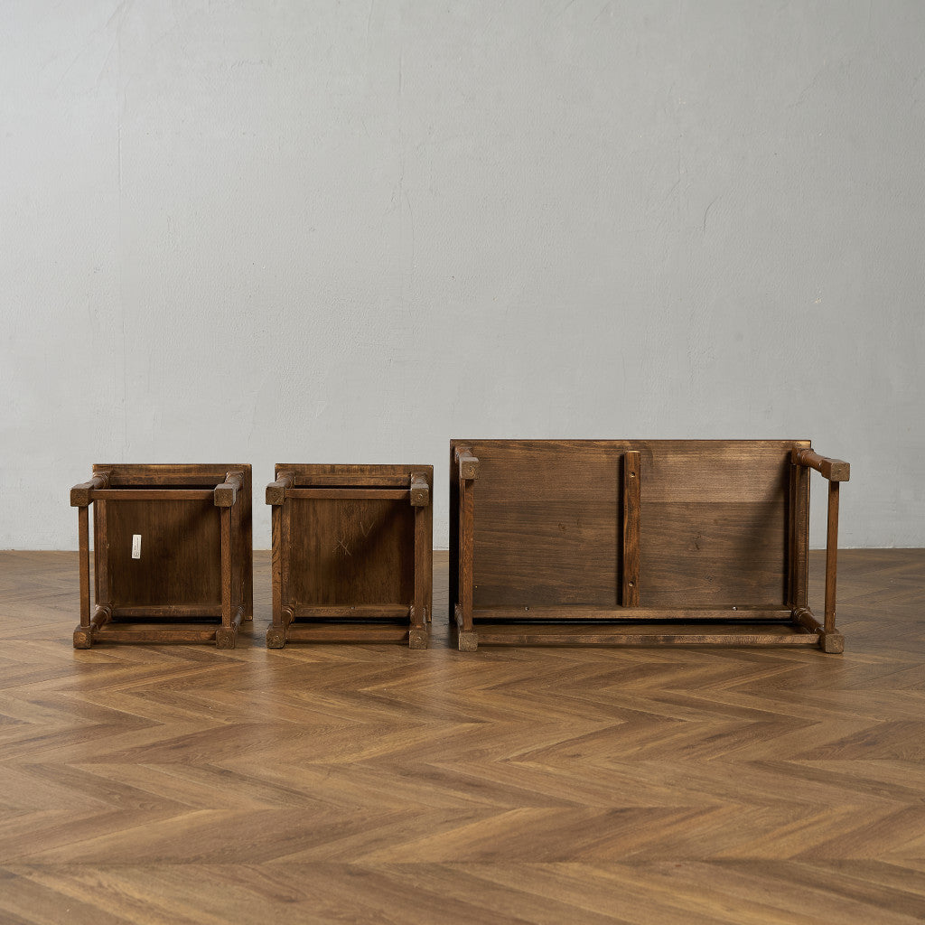 用途に合わせて引き出したり、纏めたりできるとても便利な入子構造のネストテーブル。リビングのサイドテーブルや寝室に置くナイトテーブルとして、フレキシブルにお使い頂けます。
