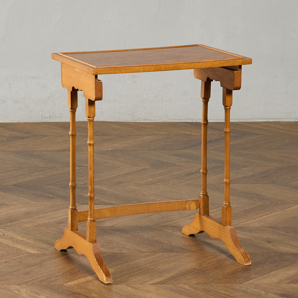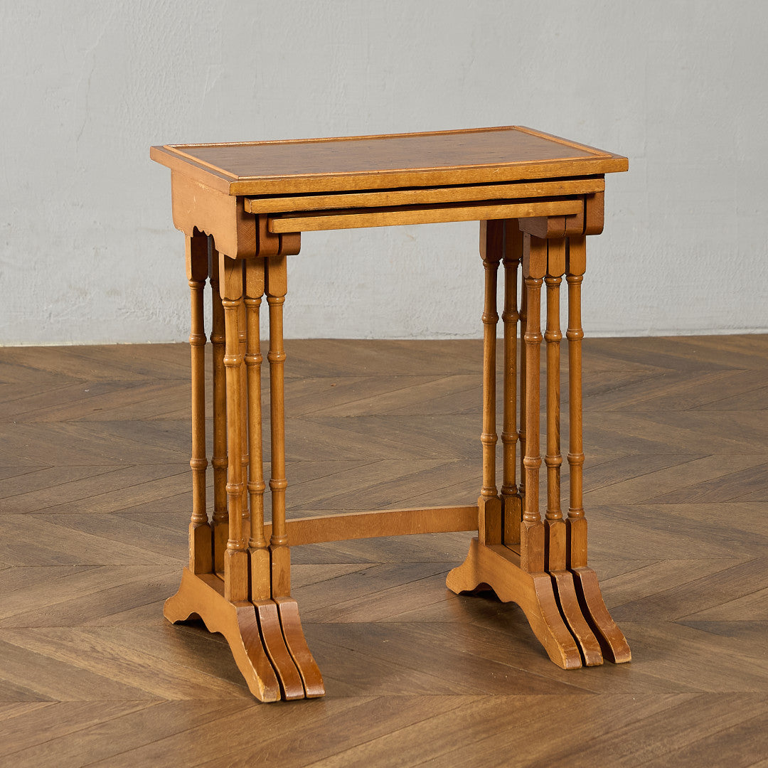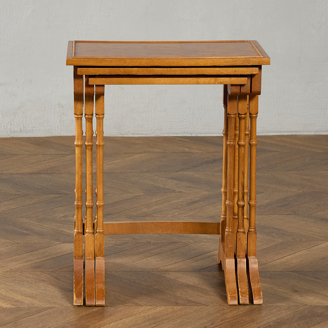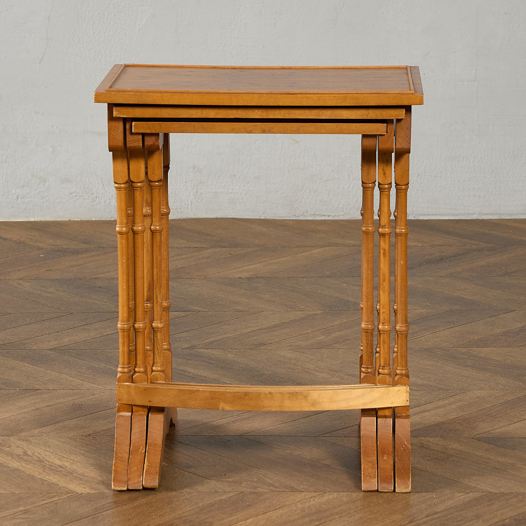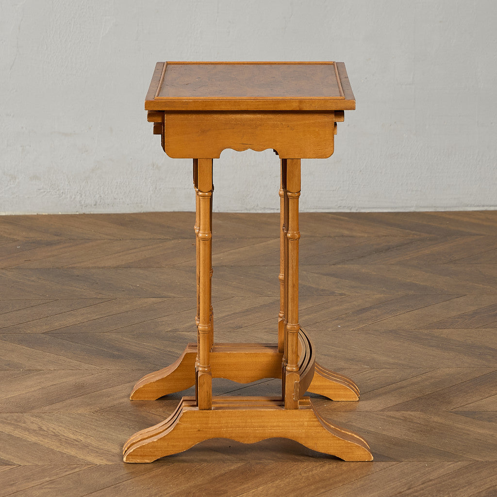 木目の美しい希少なイチイ材を用いた、挽物細工など美しいディテールを備えた上質なネストテーブルです。
