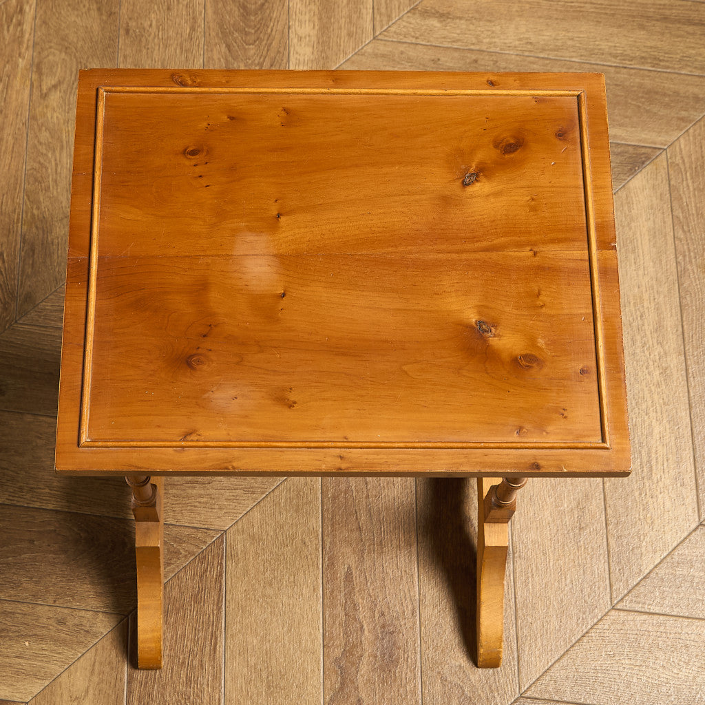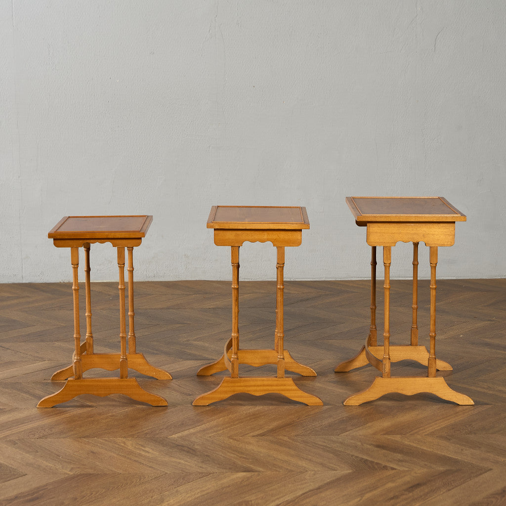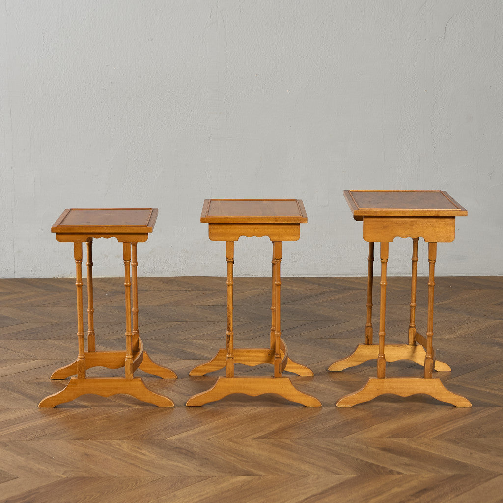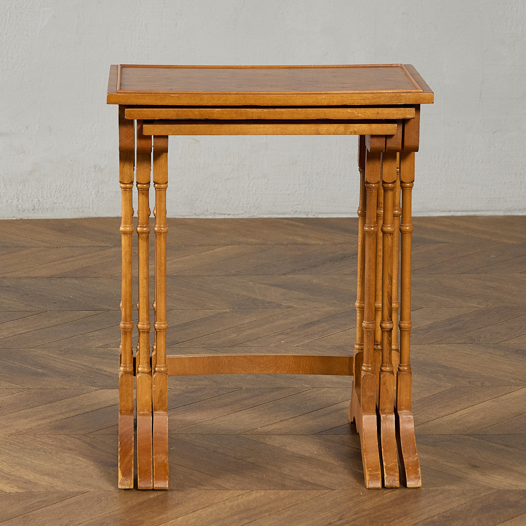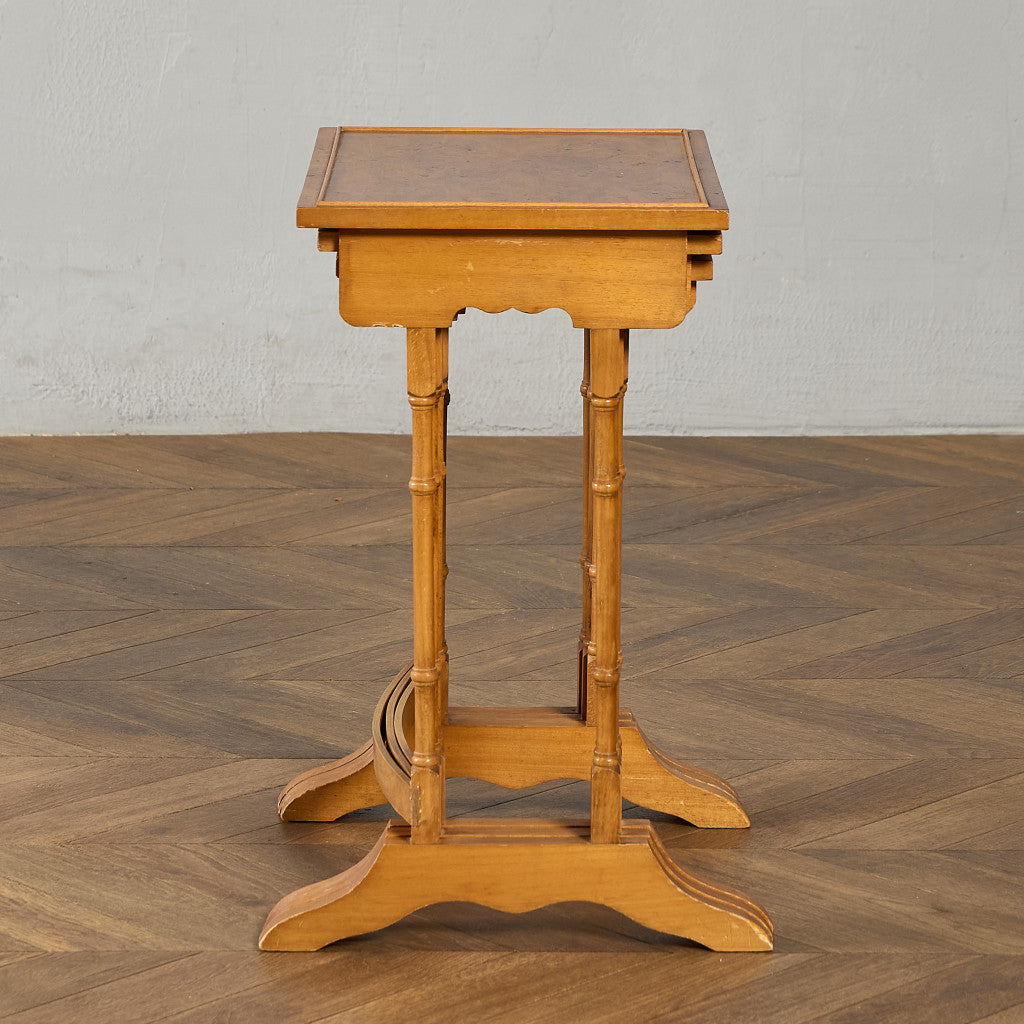 木目の美しい希少なイチイ材を用いた、挽物細工など美しいディテールを備えた上質なネストテーブルです。