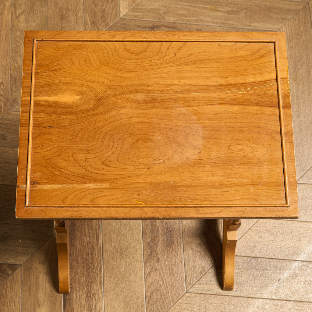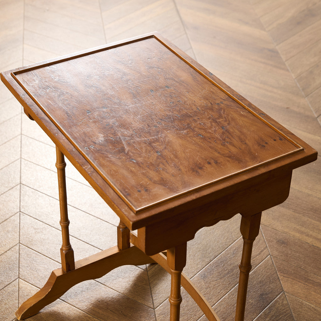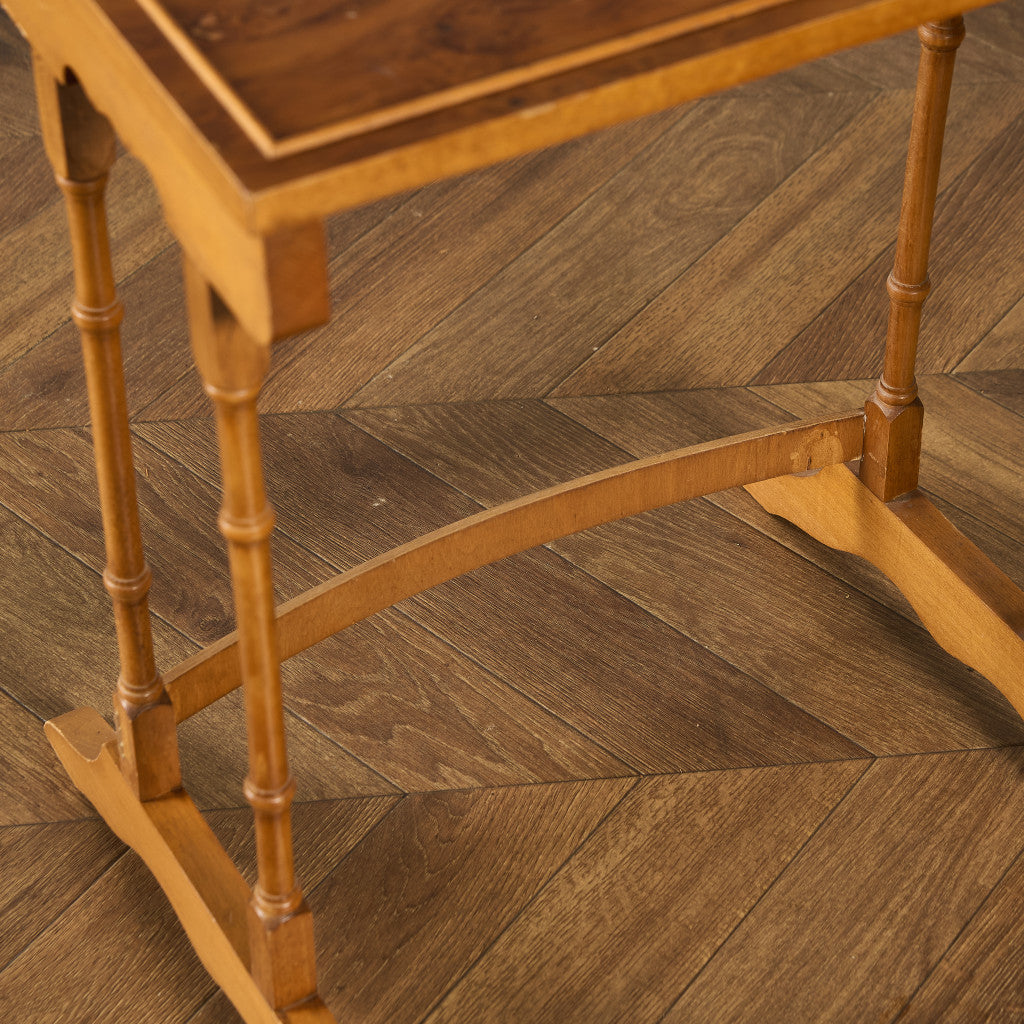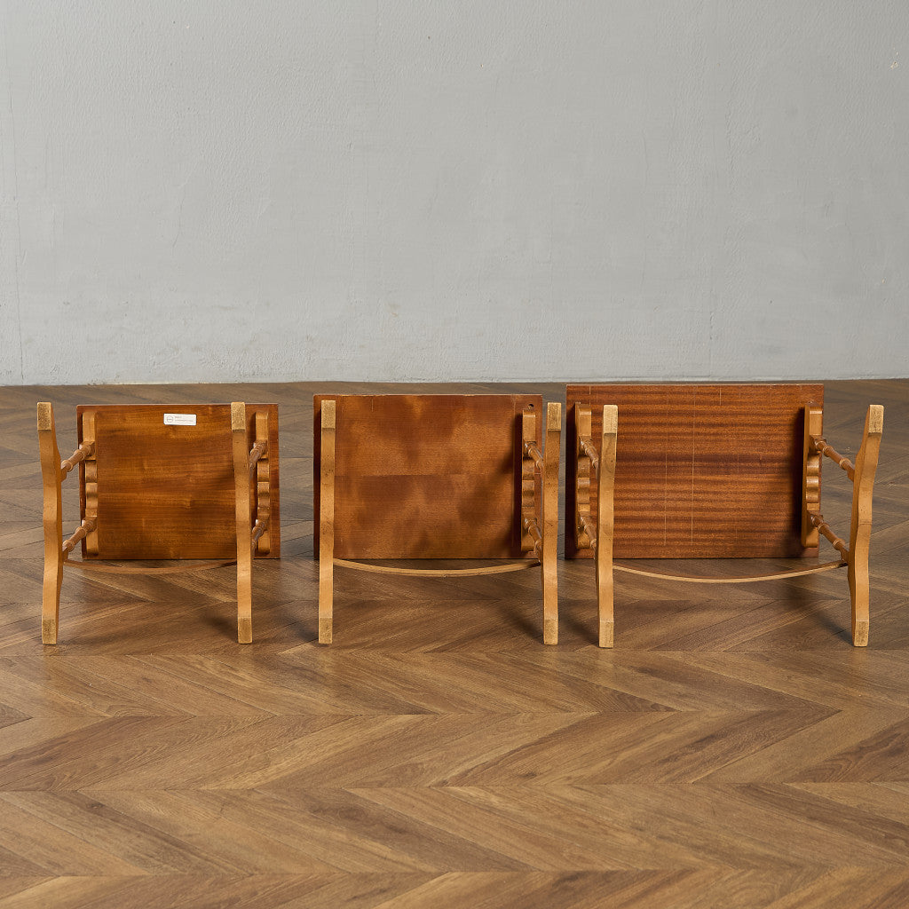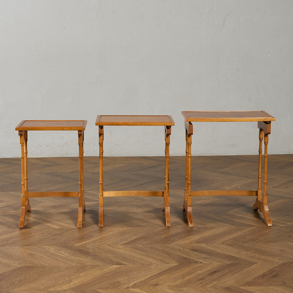 木目の美しい希少なイチイ材を用いた、挽物細工など美しいディテールを備えた上質なネストテーブルです。