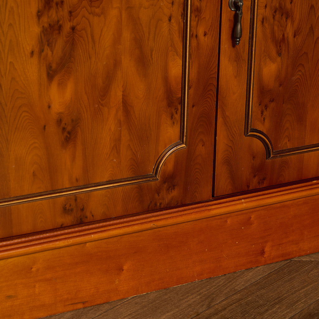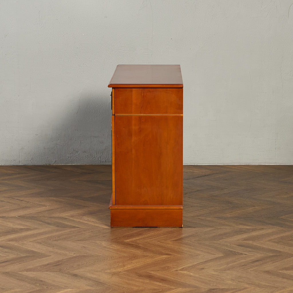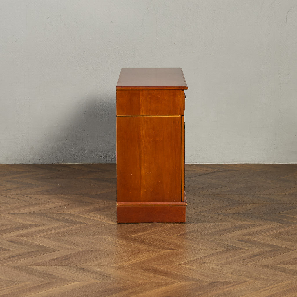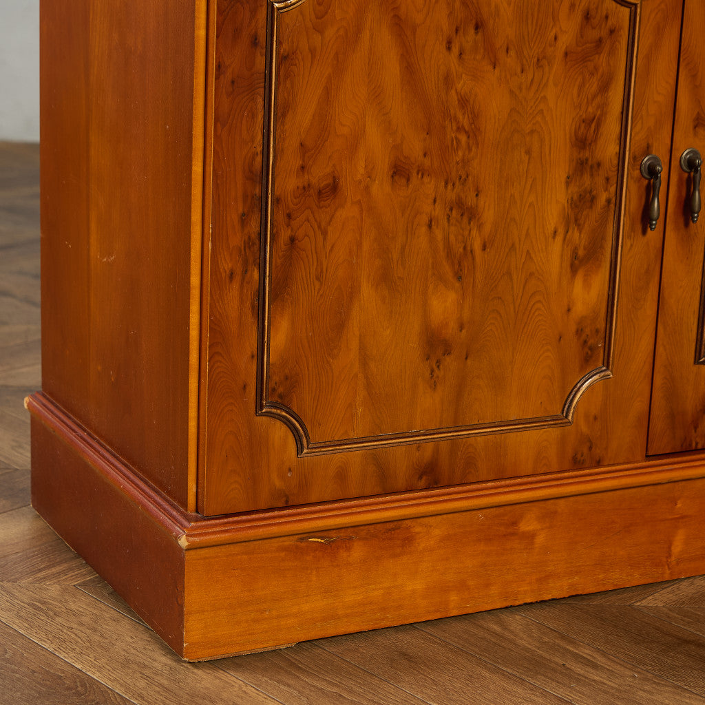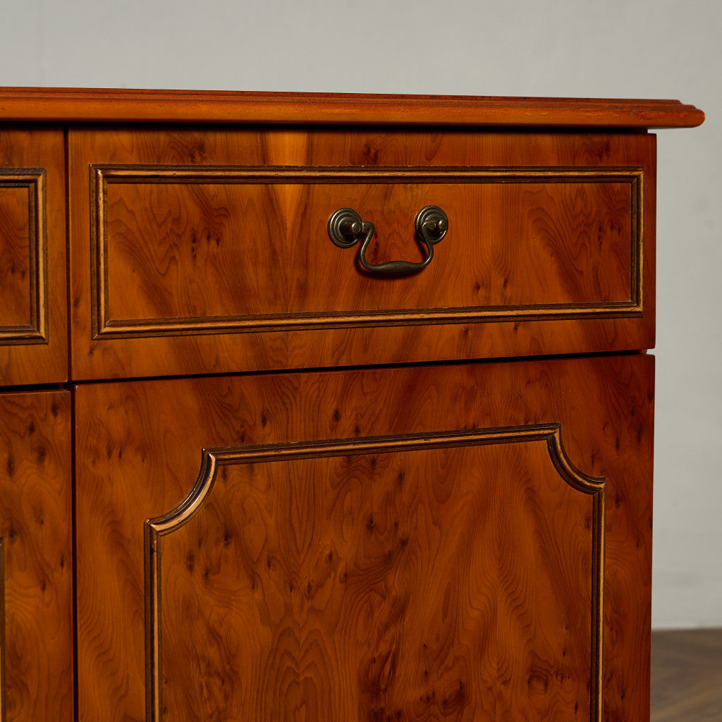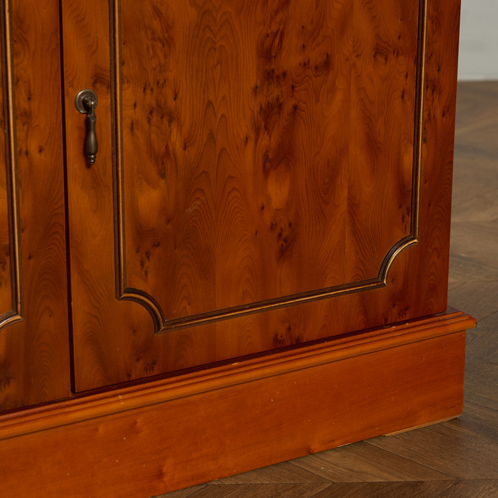 美しい木目のイチイ材を使用。実用性を重視したシンプルなデザインにクラシカルな金具がアクセントを添える、趣あるシックな佇まいが魅力です。ヨーロピアンアンティークの空間づくりやショップのディスプレイにもおすすめです。