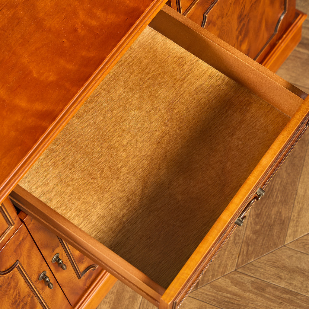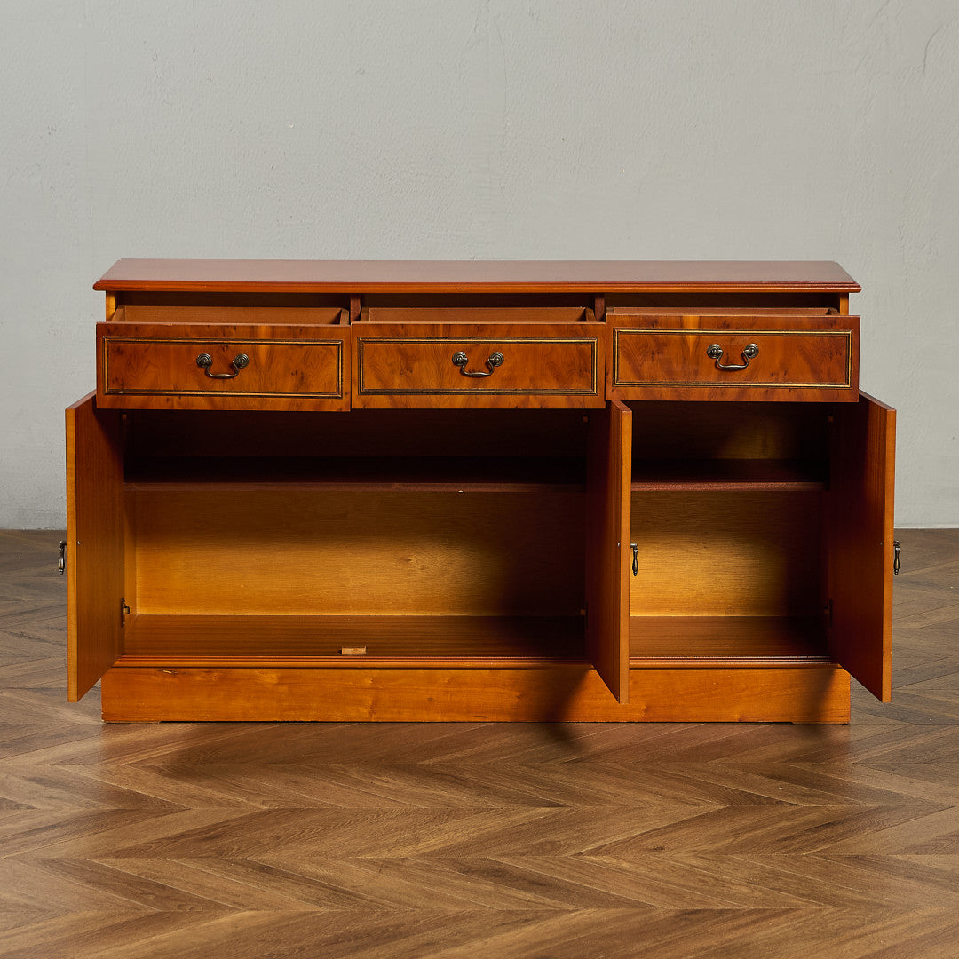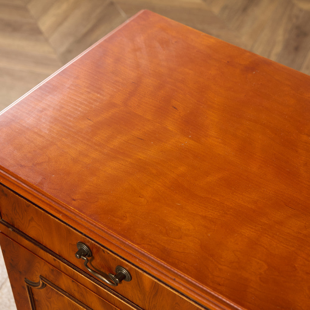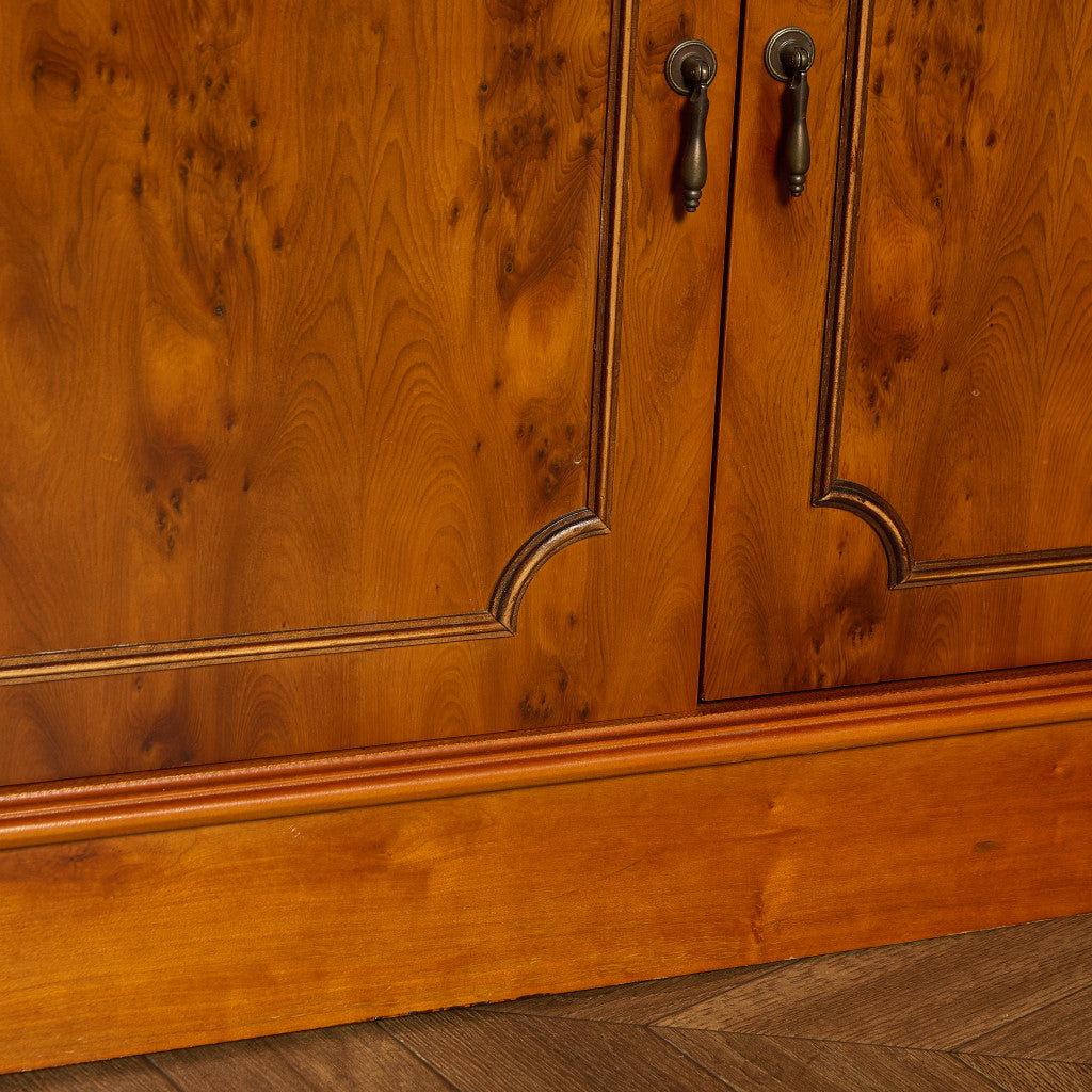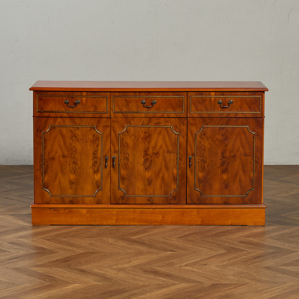 美しい木目のイチイ材を使用。実用性を重視したシンプルなデザインにクラシカルな金具がアクセントを添える、趣あるシックな佇まいが魅力です。ヨーロピアンアンティークの空間づくりやショップのディスプレイにもおすすめです。