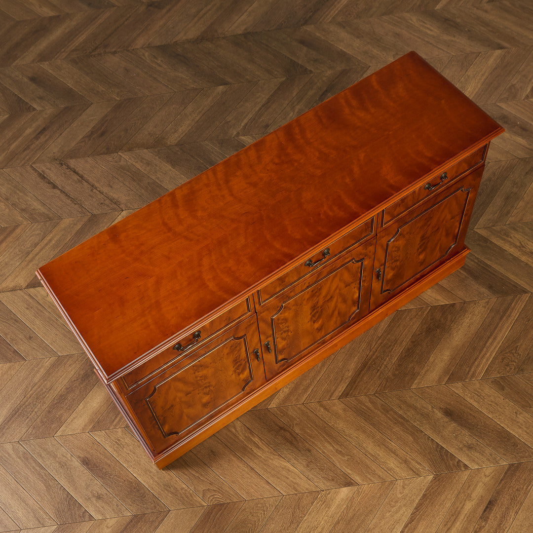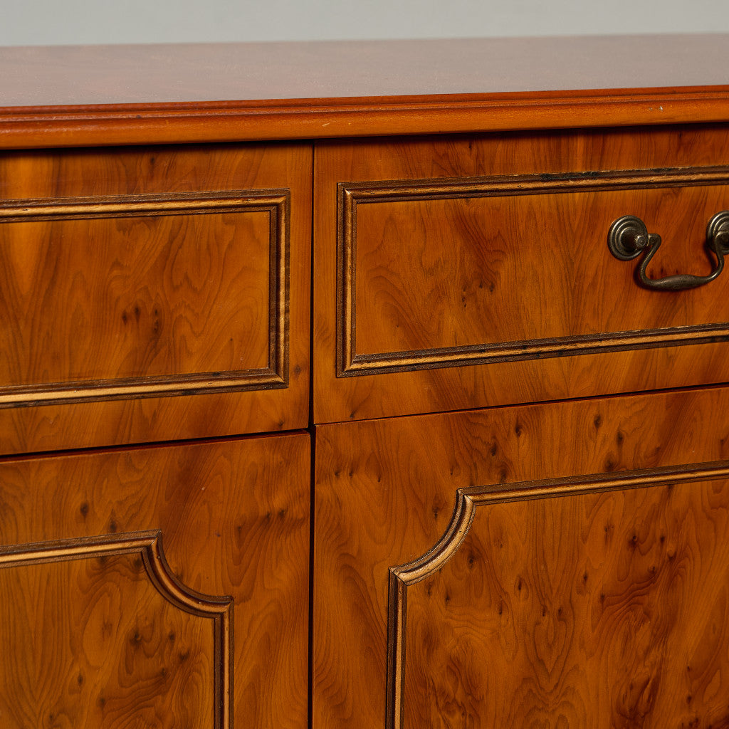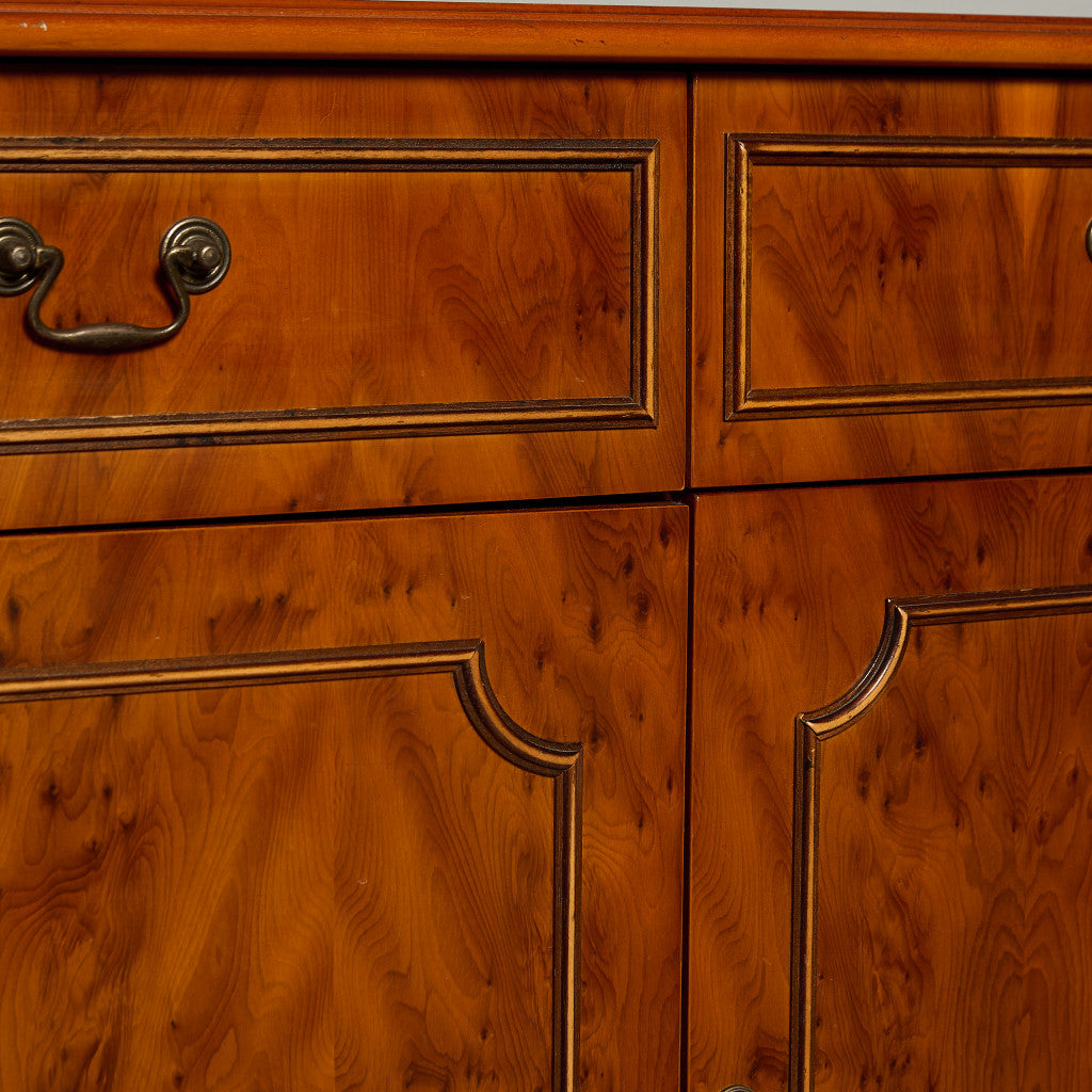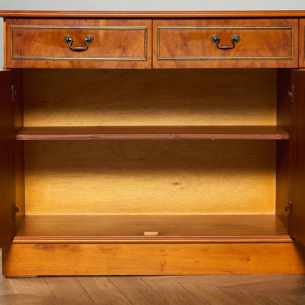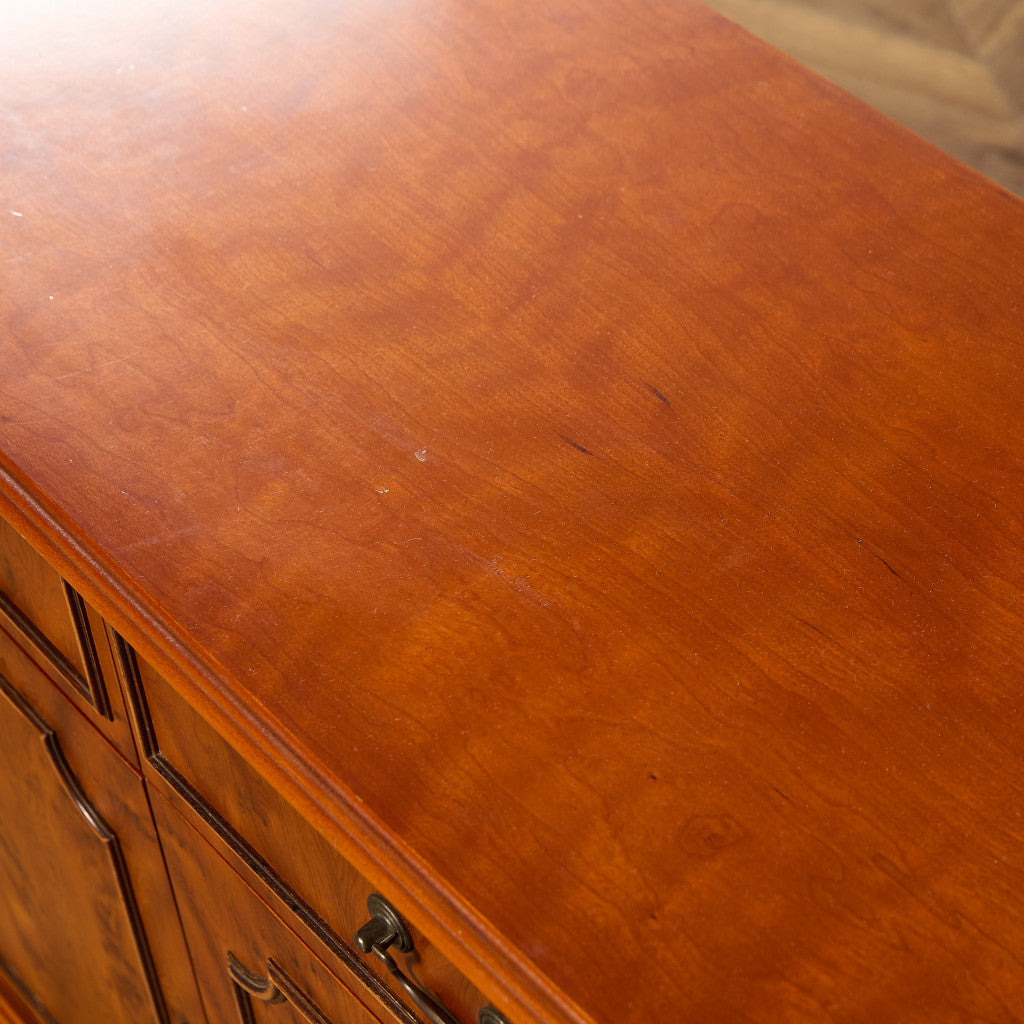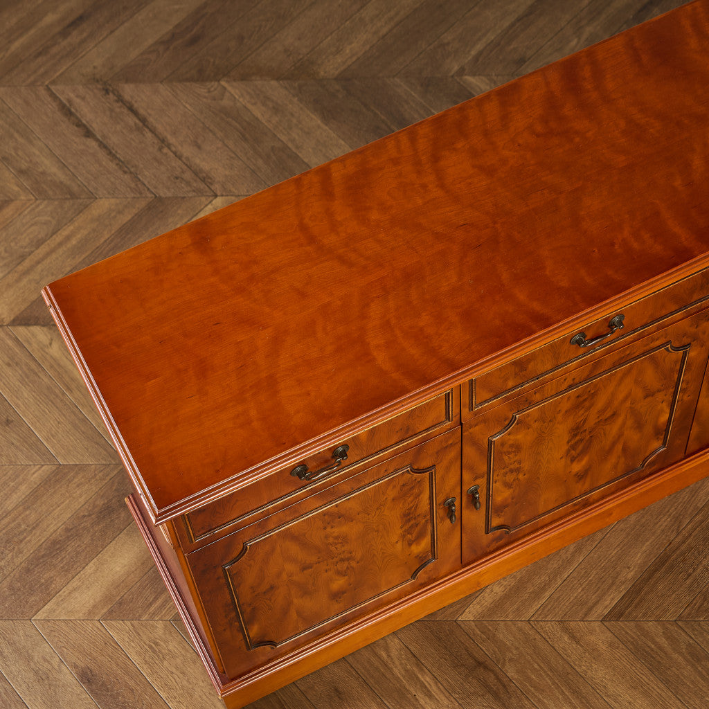 美しい木目のイチイ材を使用。実用性を重視したシンプルなデザインにクラシカルな金具がアクセントを添える、趣あるシックな佇まいが魅力です。ヨーロピアンアンティークの空間づくりやショップのディスプレイにもおすすめです。