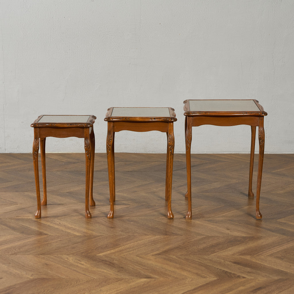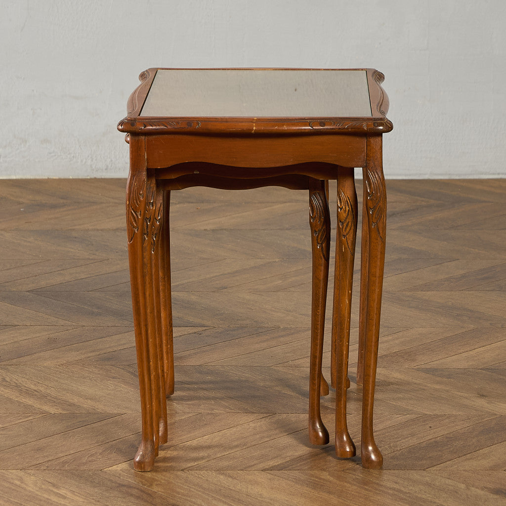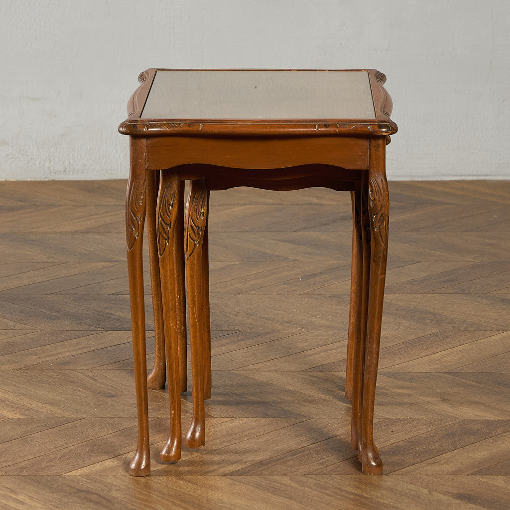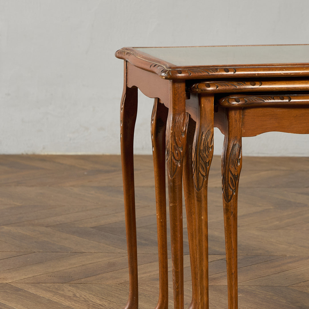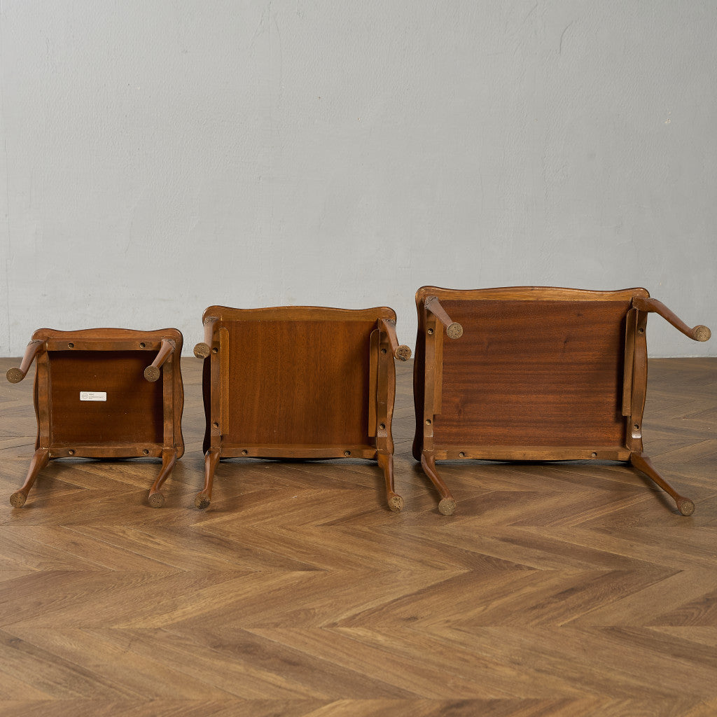 上品な印象のカブリオールレッグなど、繊細なディテールを備えた優雅なデザインが魅力のネストテーブル。リビングのサイドテーブルや寝室に置くナイトテーブルとしてはもちろん、必要に応じて引き出すことでフレキシブルにお使いいただけます。