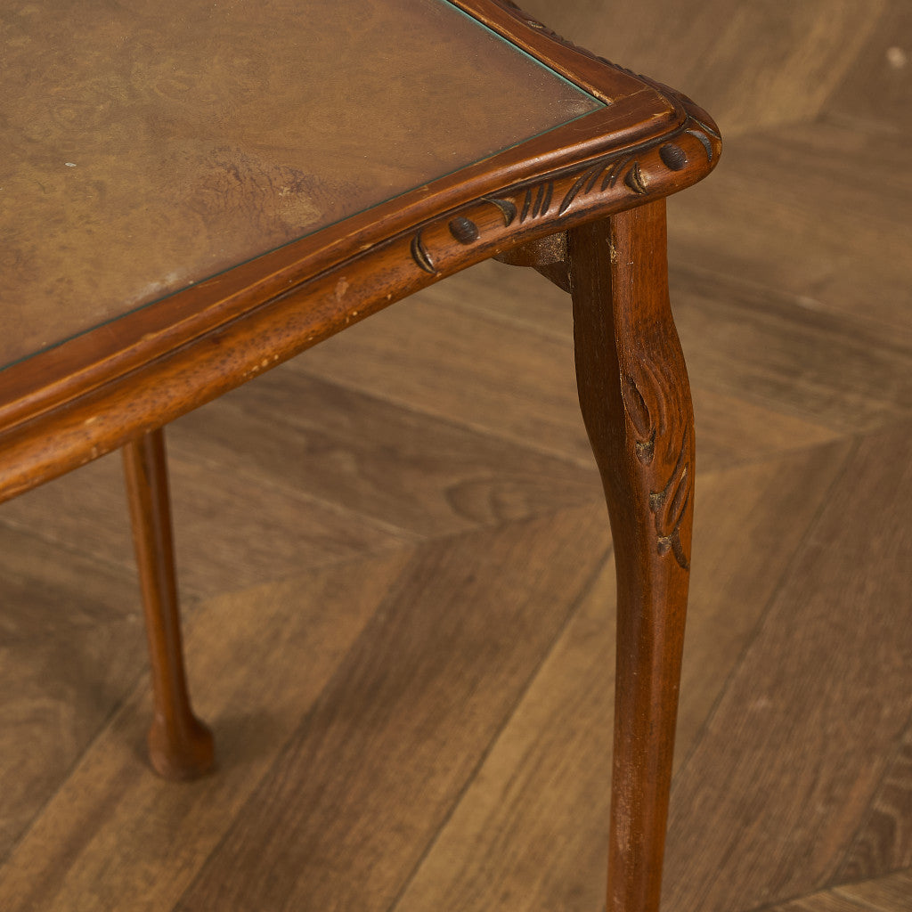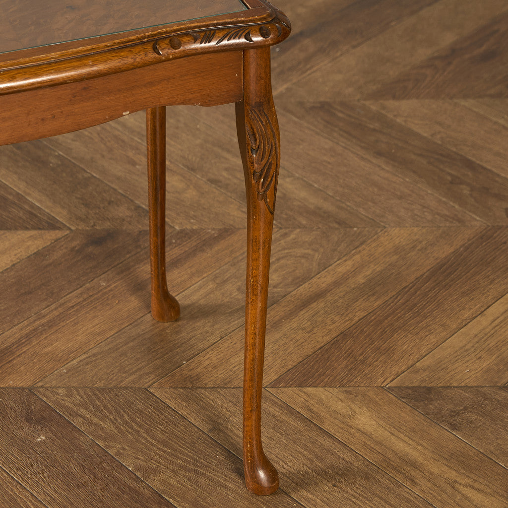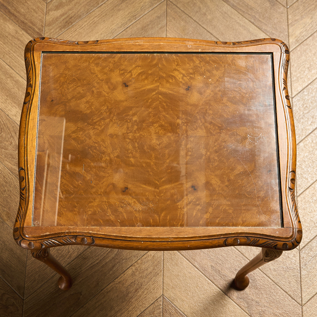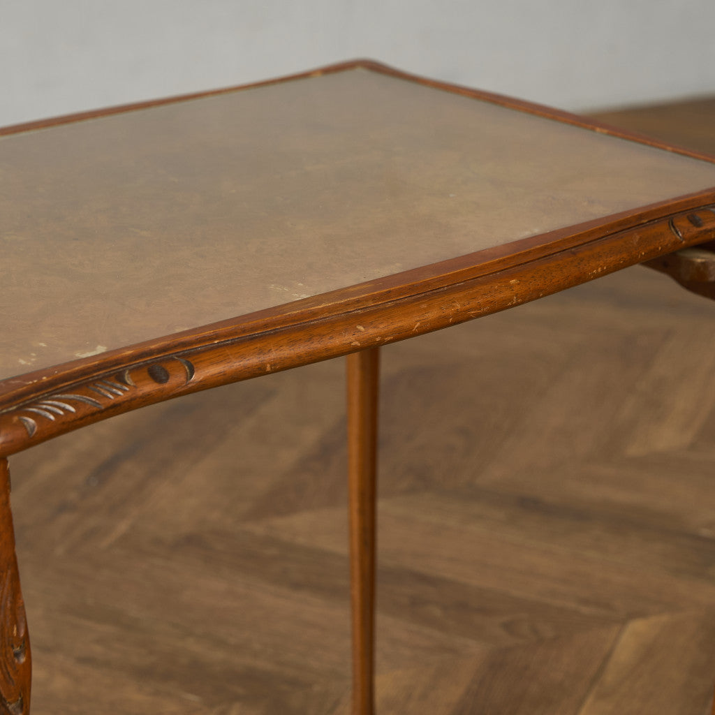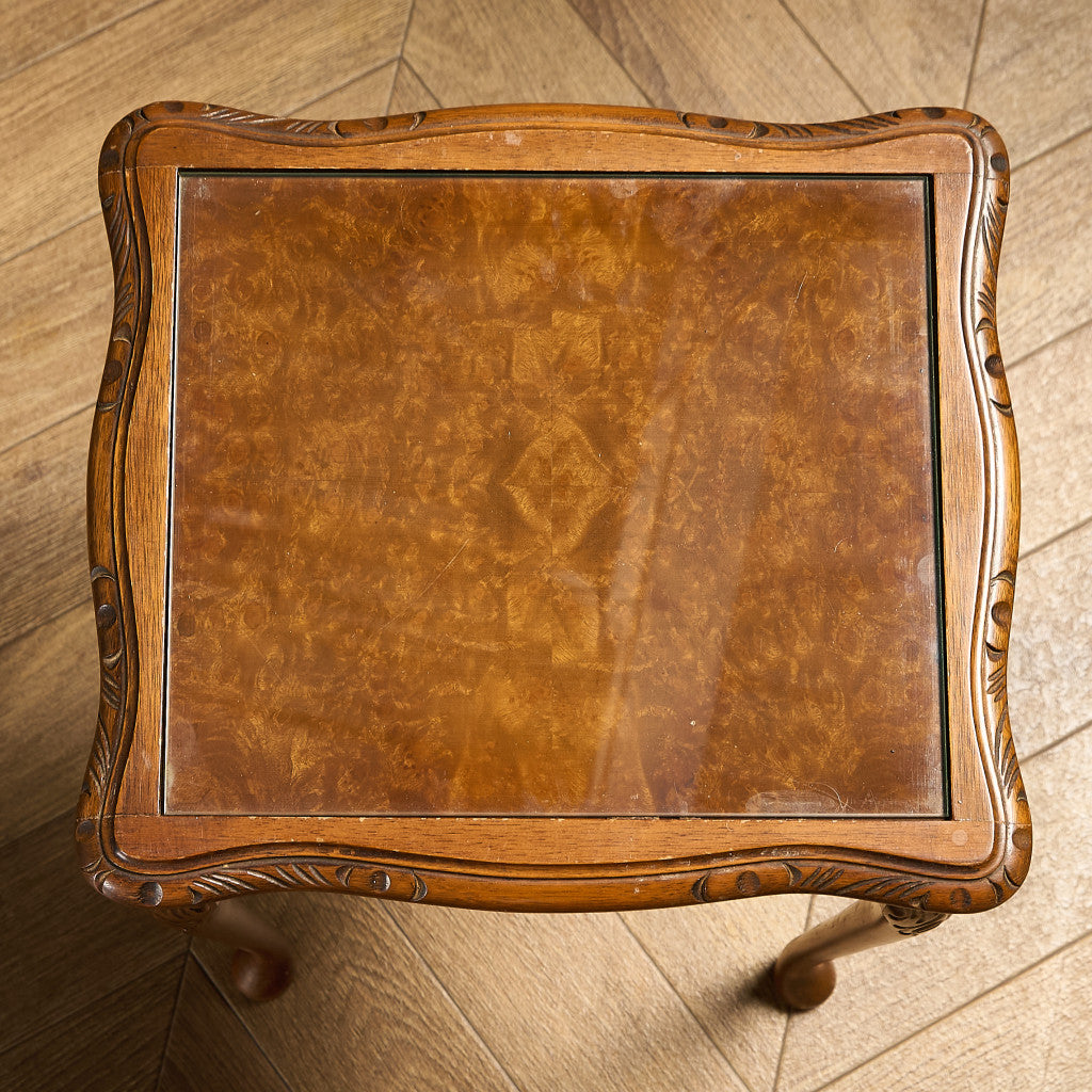 上品な印象のカブリオールレッグなど、繊細なディテールを備えた優雅なデザインが魅力のネストテーブル。リビングのサイドテーブルや寝室に置くナイトテーブルとしてはもちろん、必要に応じて引き出すことでフレキシブルにお使いいただけます。