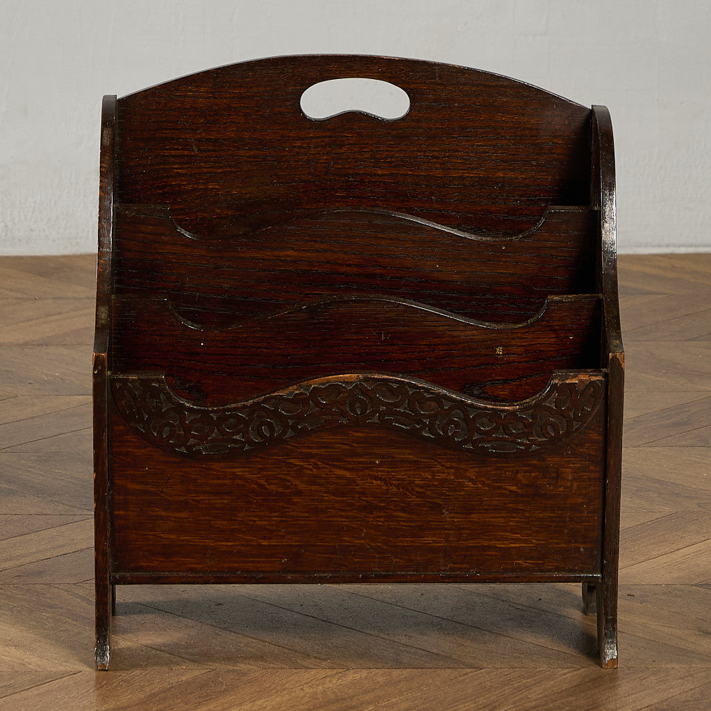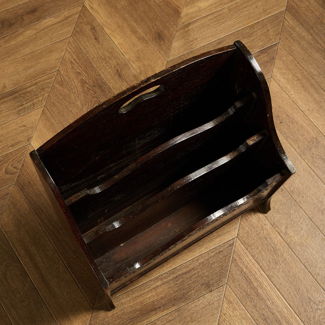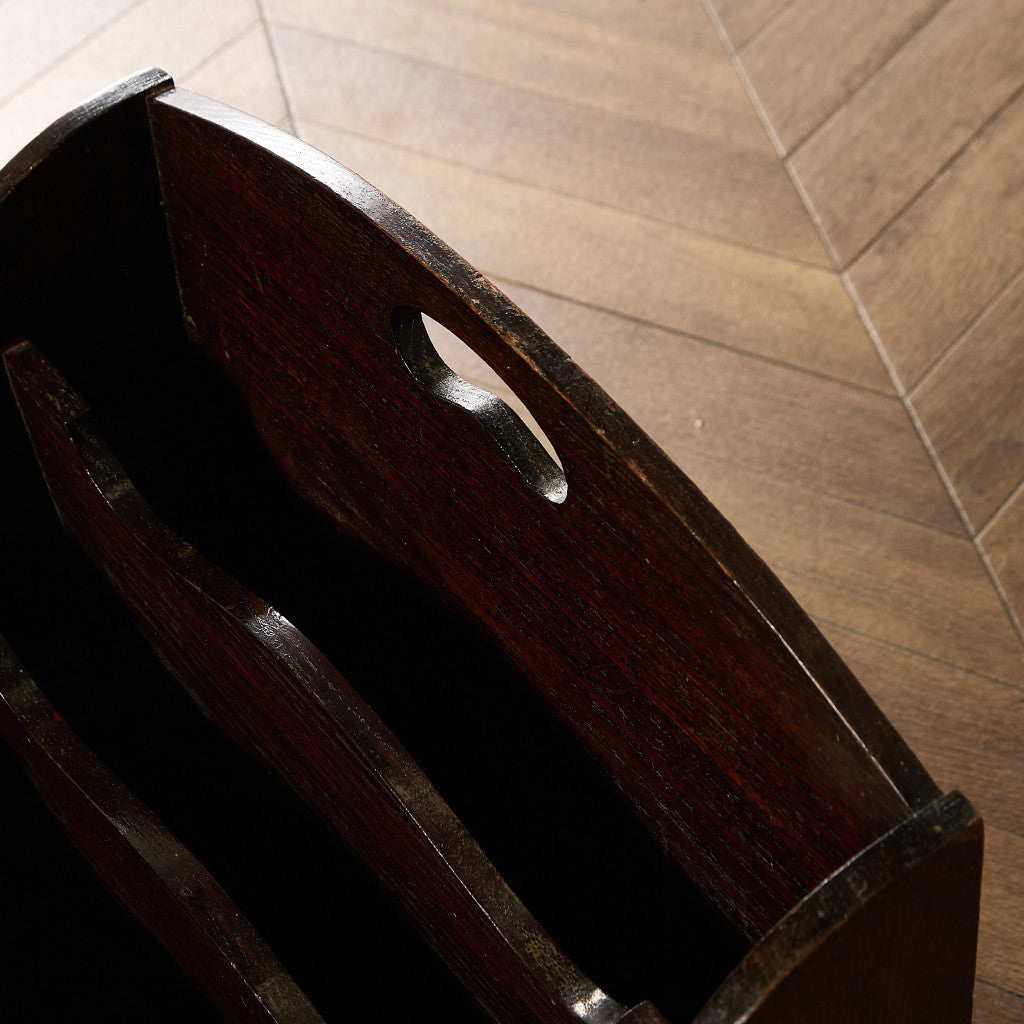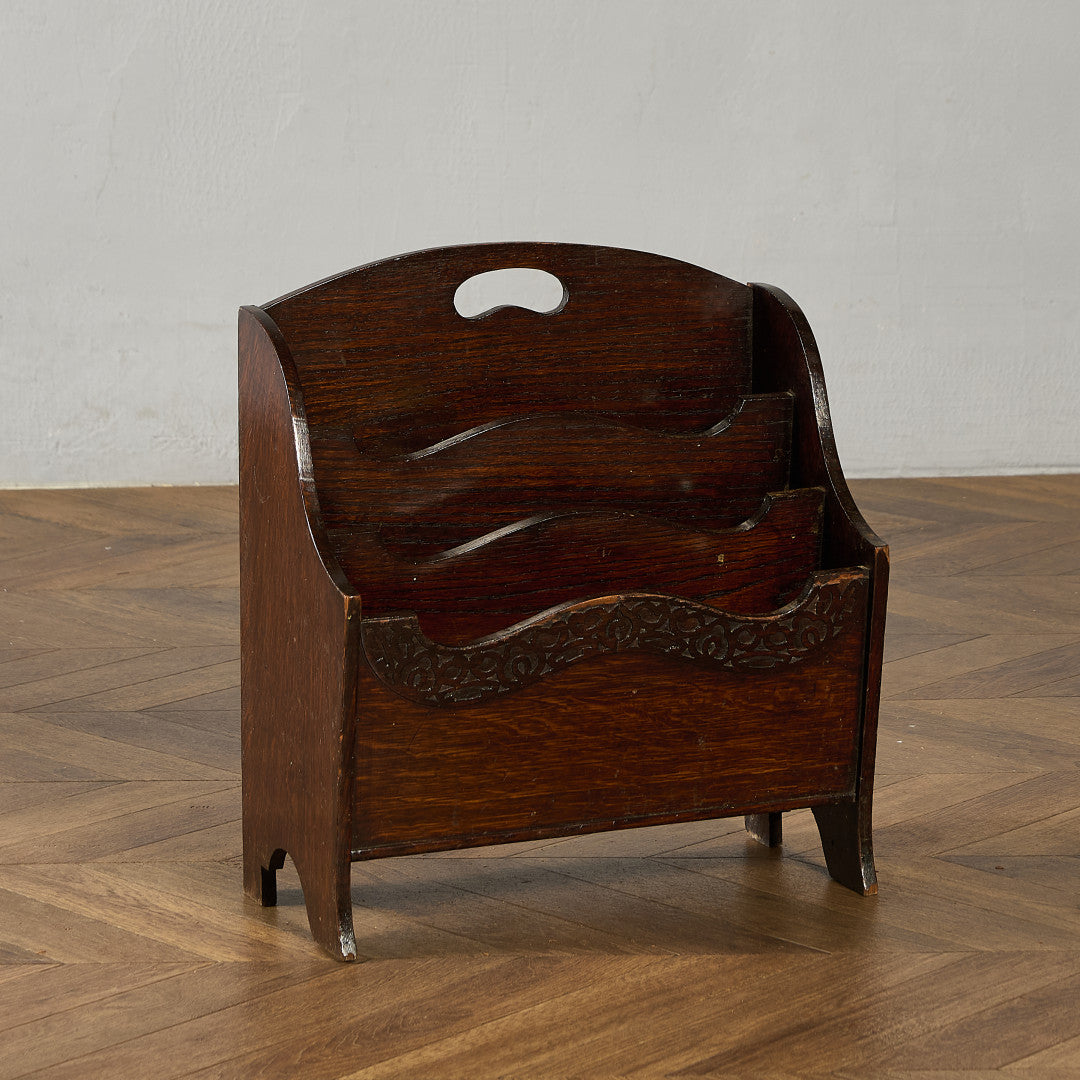 シンプルながらも上品な雰囲気が溢れるマガジンラック。並べて収納できる下部収納に加え、上部にラック棚を備えた機能性に優れた一品。アンティーク家具のインテリアにも相性の良いお品です。