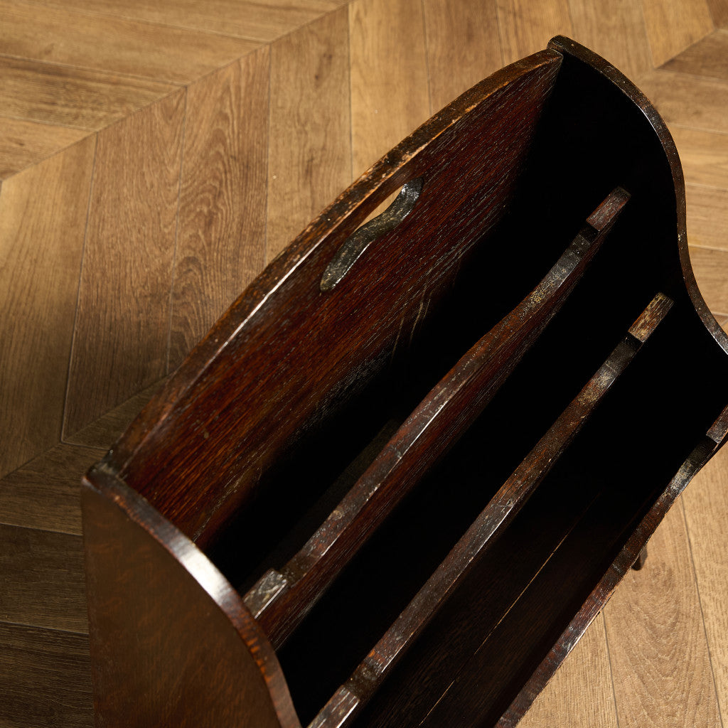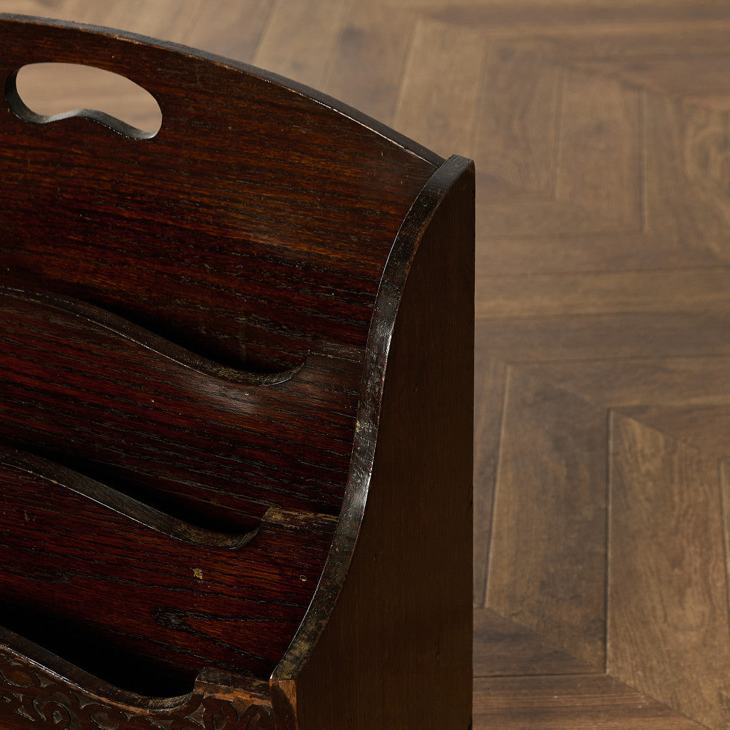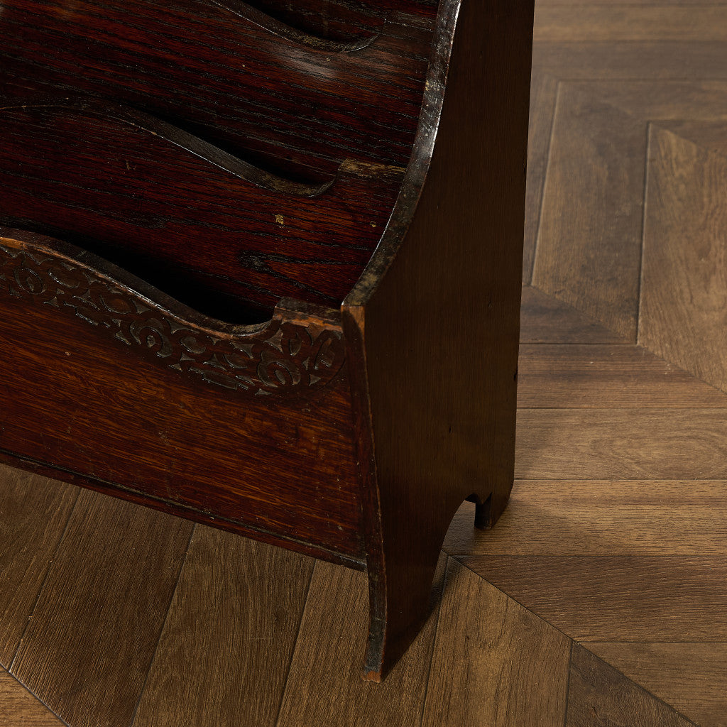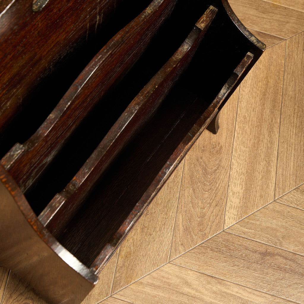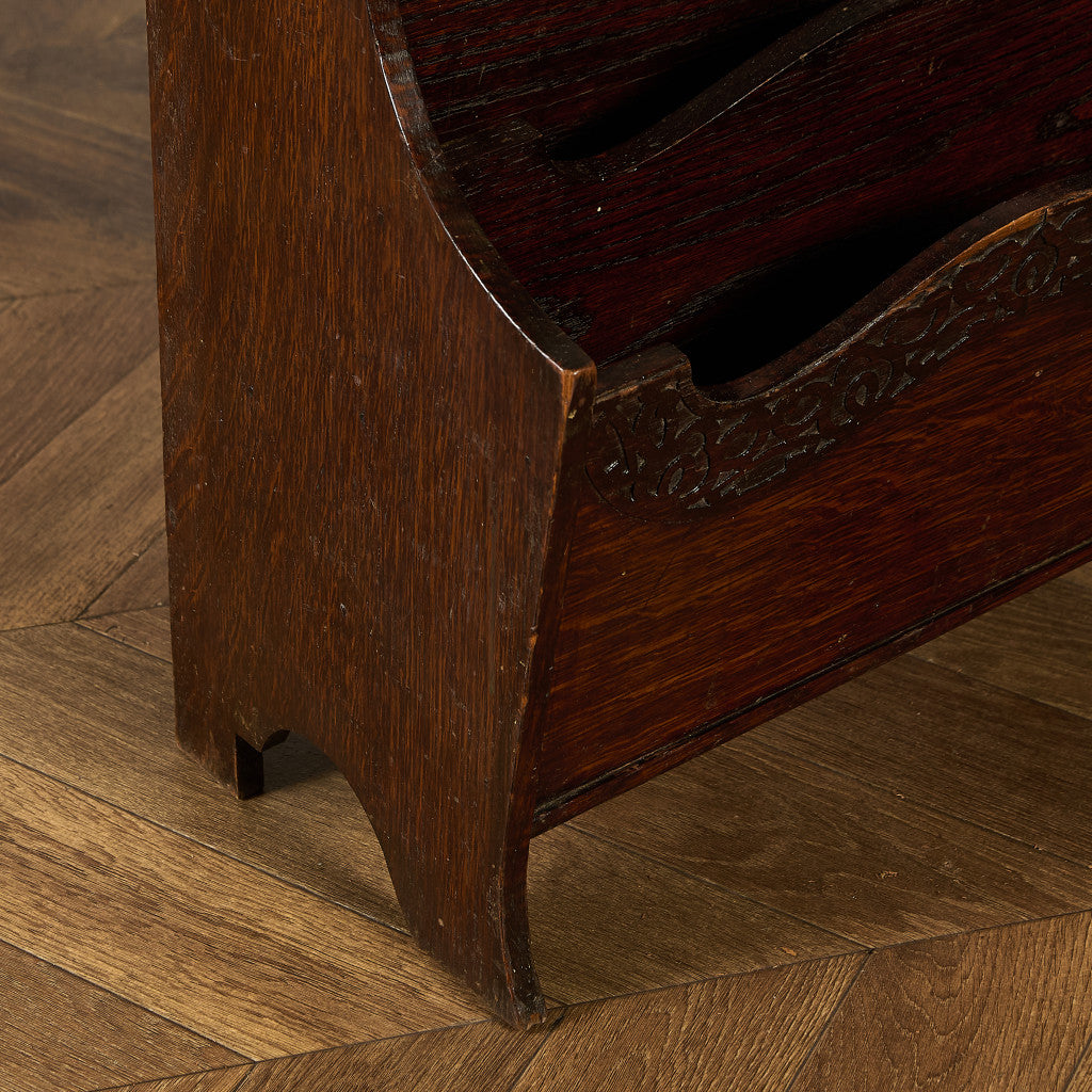 シンプルながらも上品な雰囲気が溢れるマガジンラック。並べて収納できる下部収納に加え、上部にラック棚を備えた機能性に優れた一品。アンティーク家具のインテリアにも相性の良いお品です。