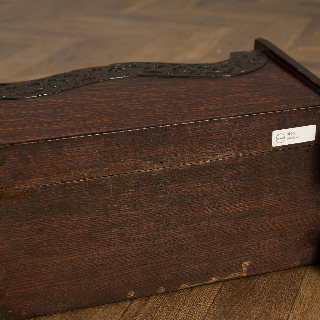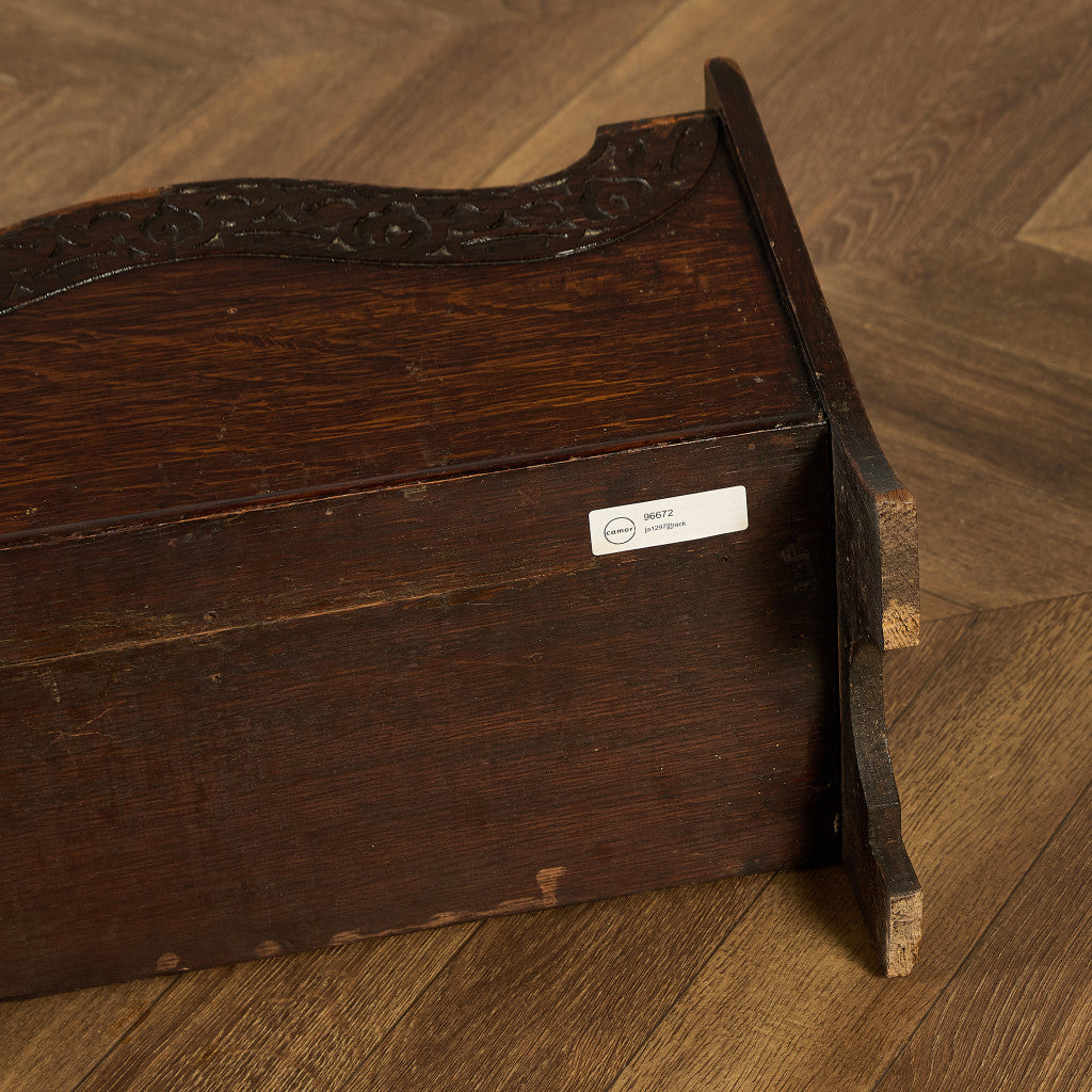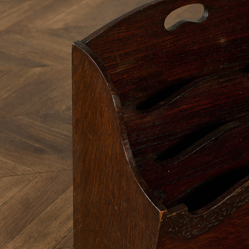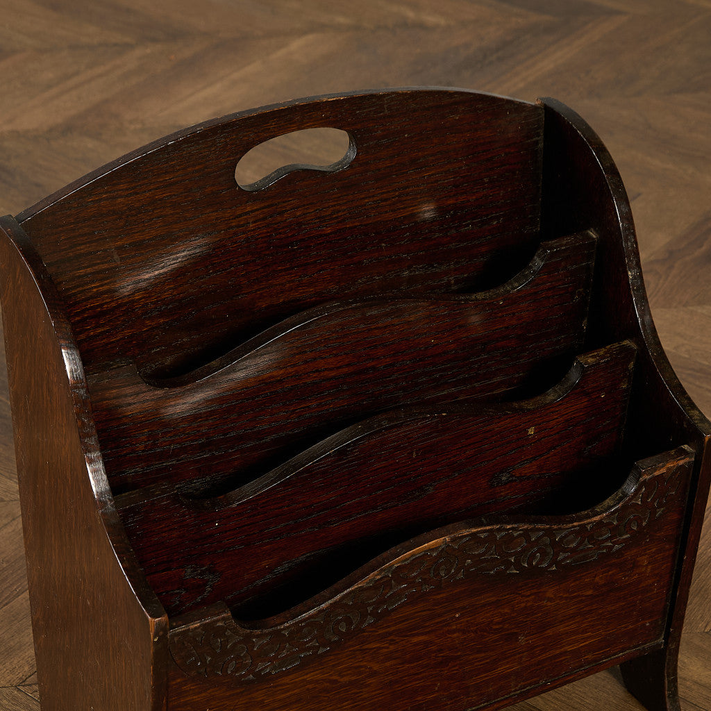 シンプルながらも上品な雰囲気が溢れるマガジンラック。並べて収納できる下部収納に加え、上部にラック棚を備えた機能性に優れた一品。アンティーク家具のインテリアにも相性の良いお品です。