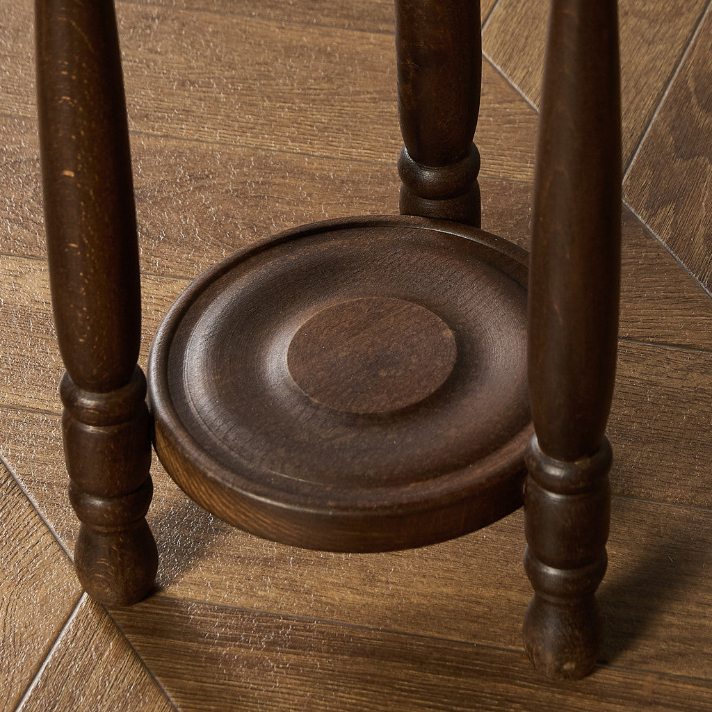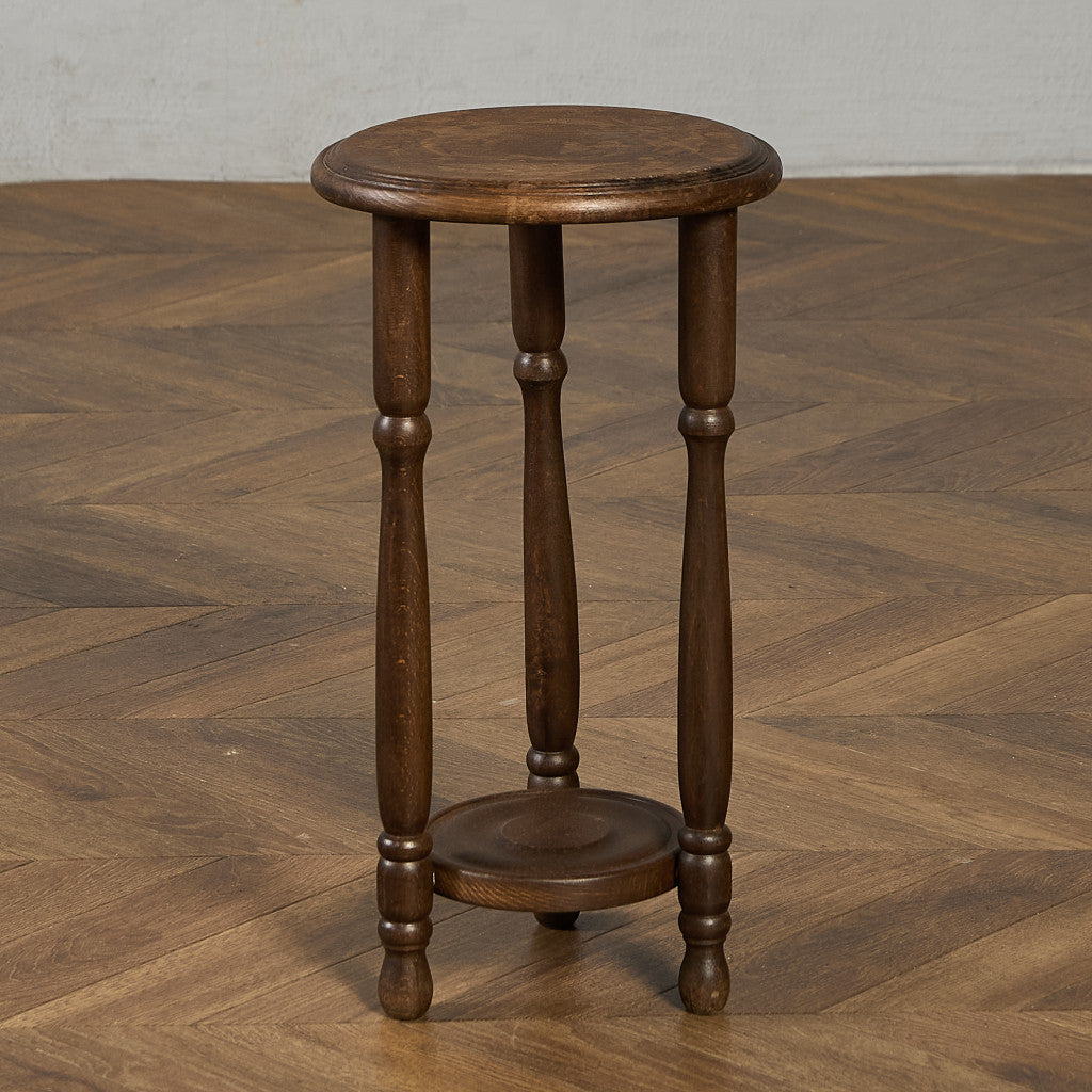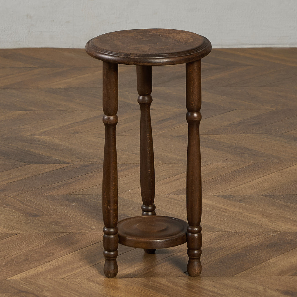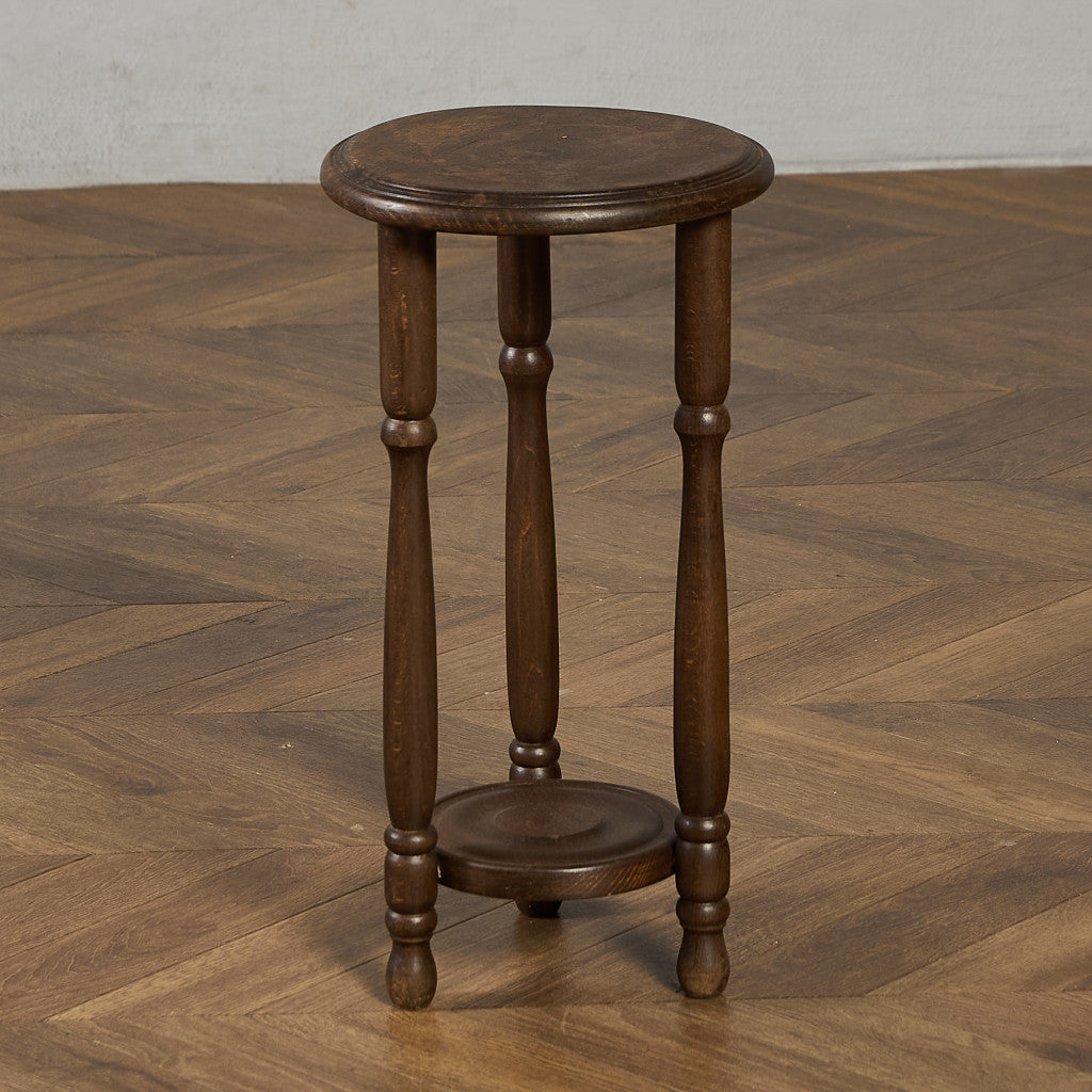 深い色合いのブナ材に木彫り装飾が美しいプランタースタンド。脚部には繊細な挽物細工が施され、クラシック家具らしい優雅なフォルムが、植物を上品に引き立てます。観葉植物や花鉢はもちろん、照明や小物を置くサイドテーブルなど、幅広い用途でお使いいただけます。